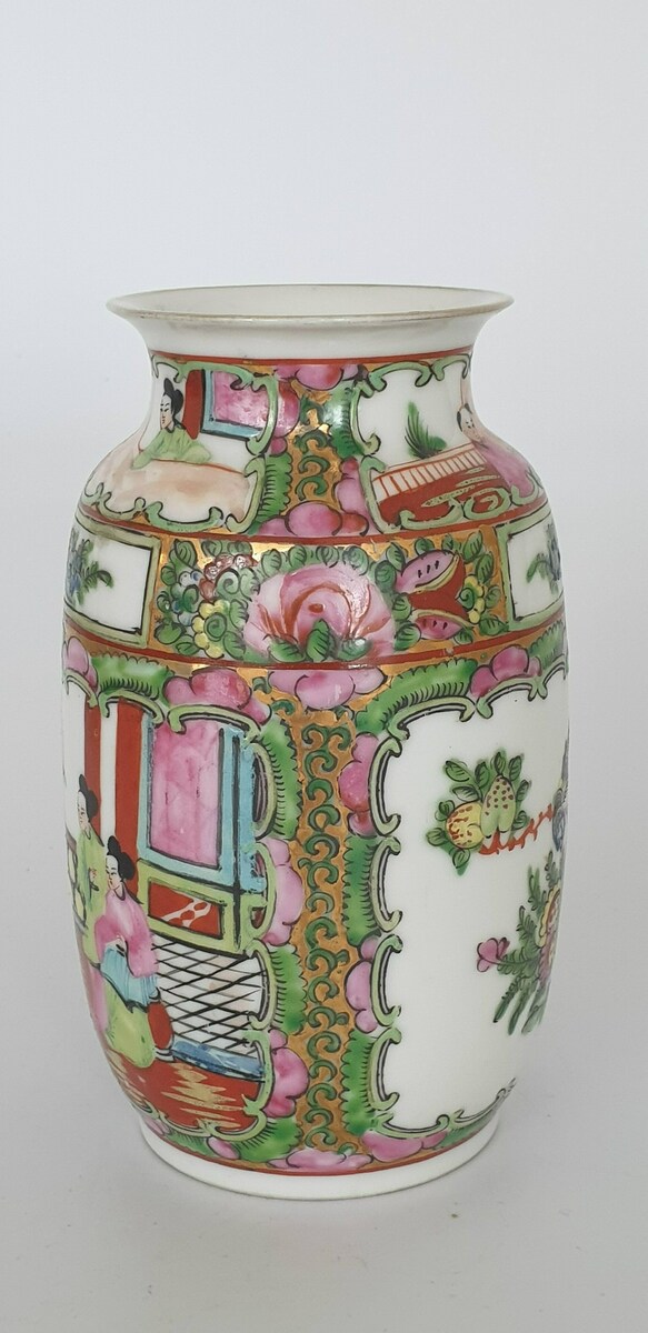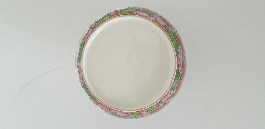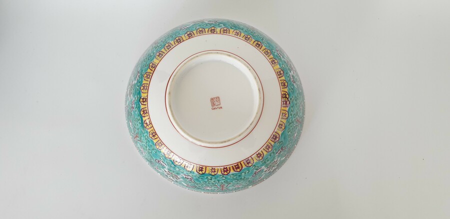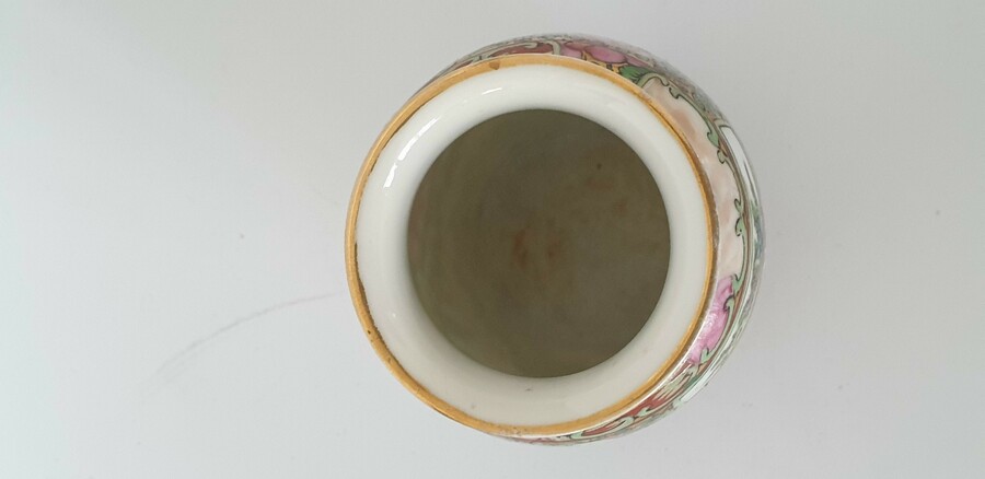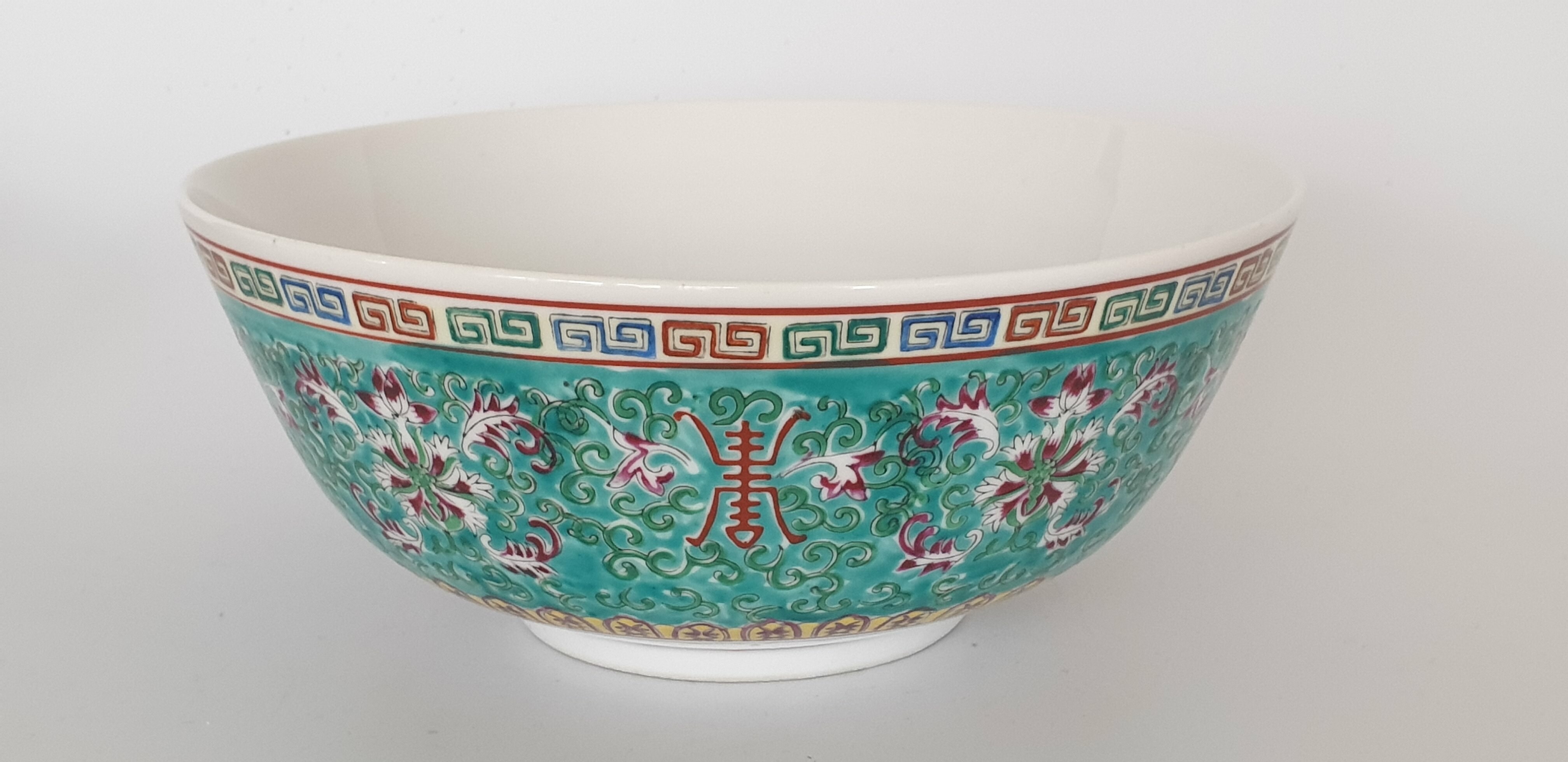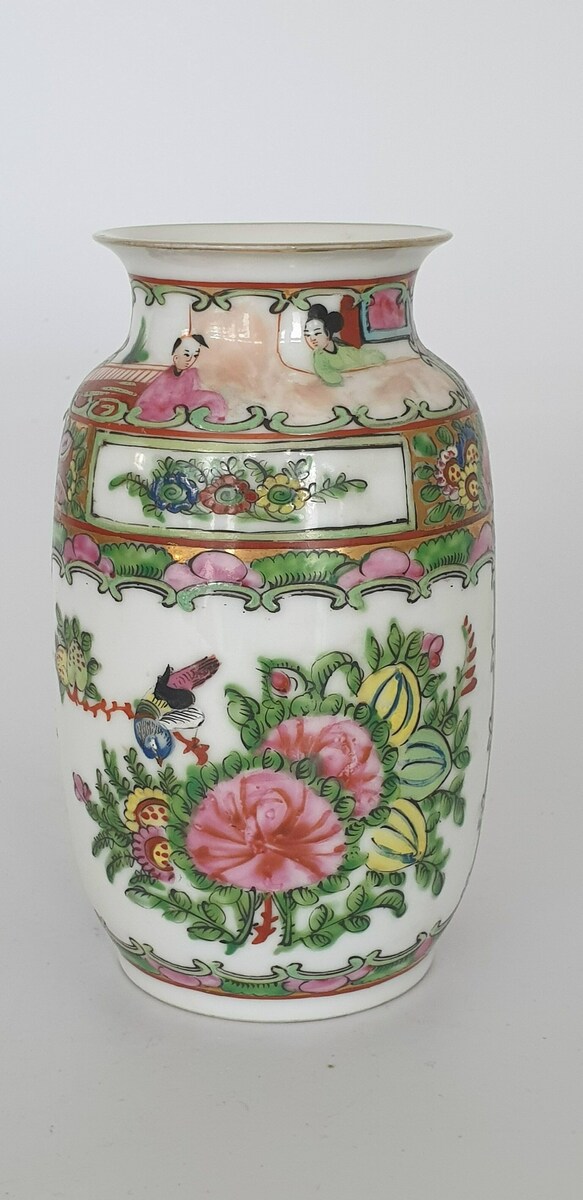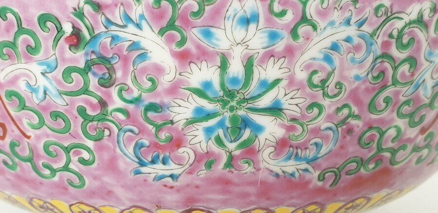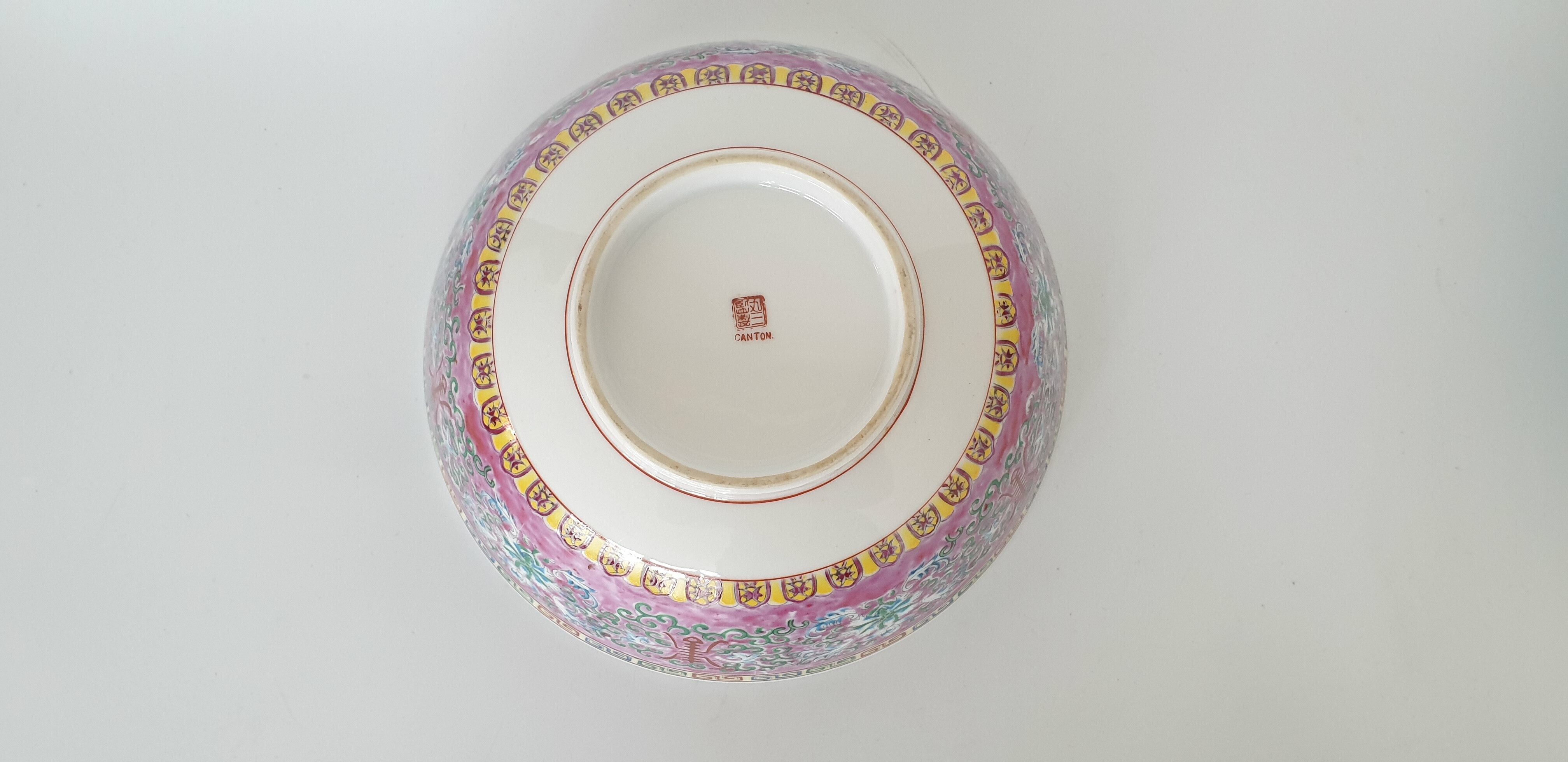 Twee grote porseleinen kommen en een eierschaal vaasje, famille rose. China, 20e eeuw. |