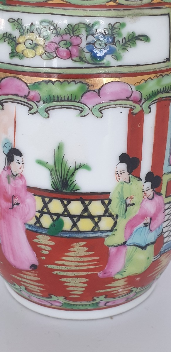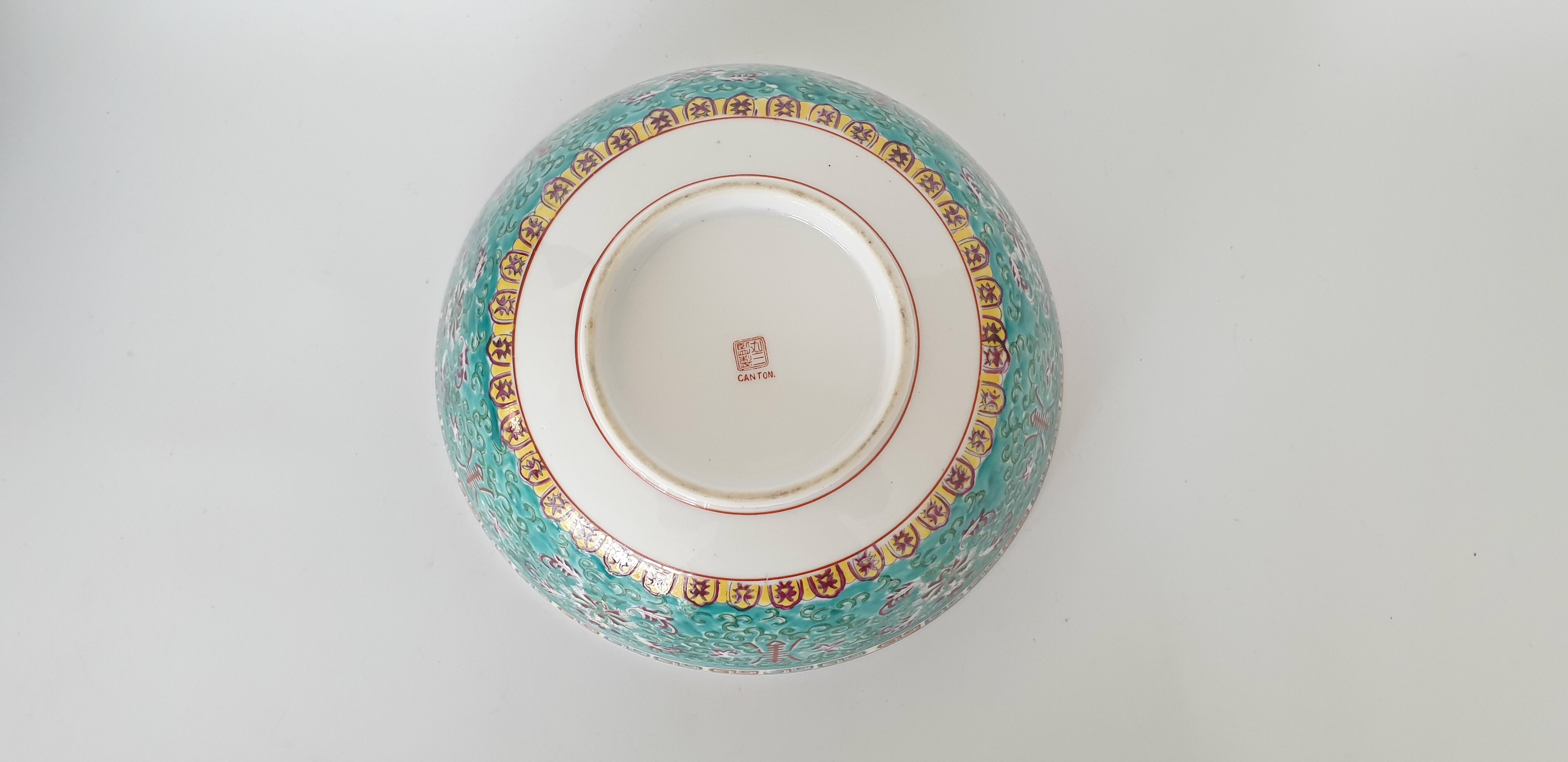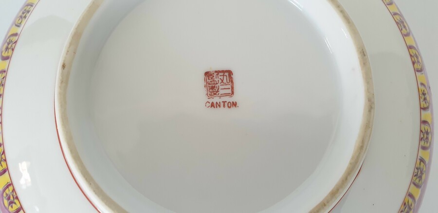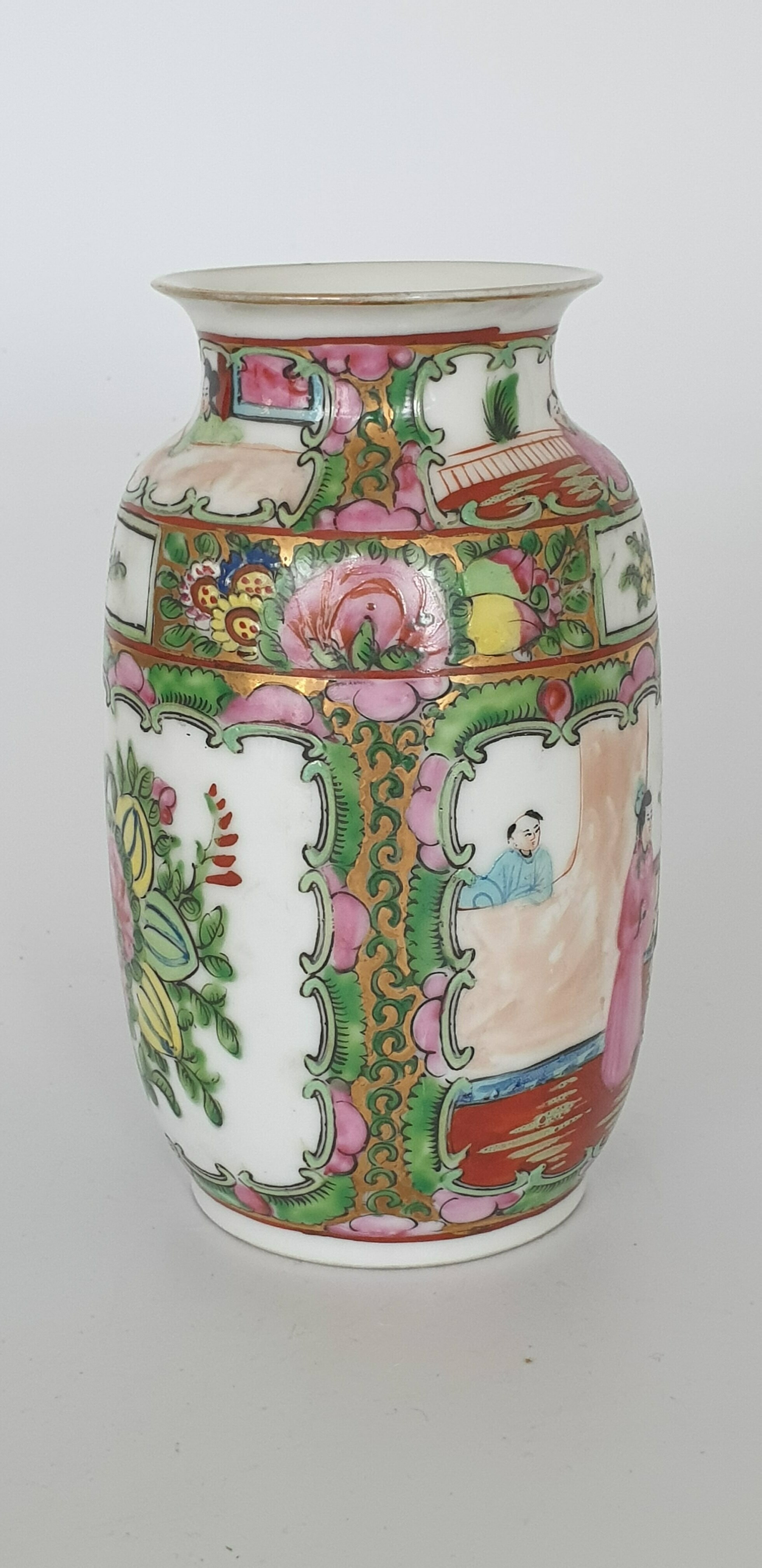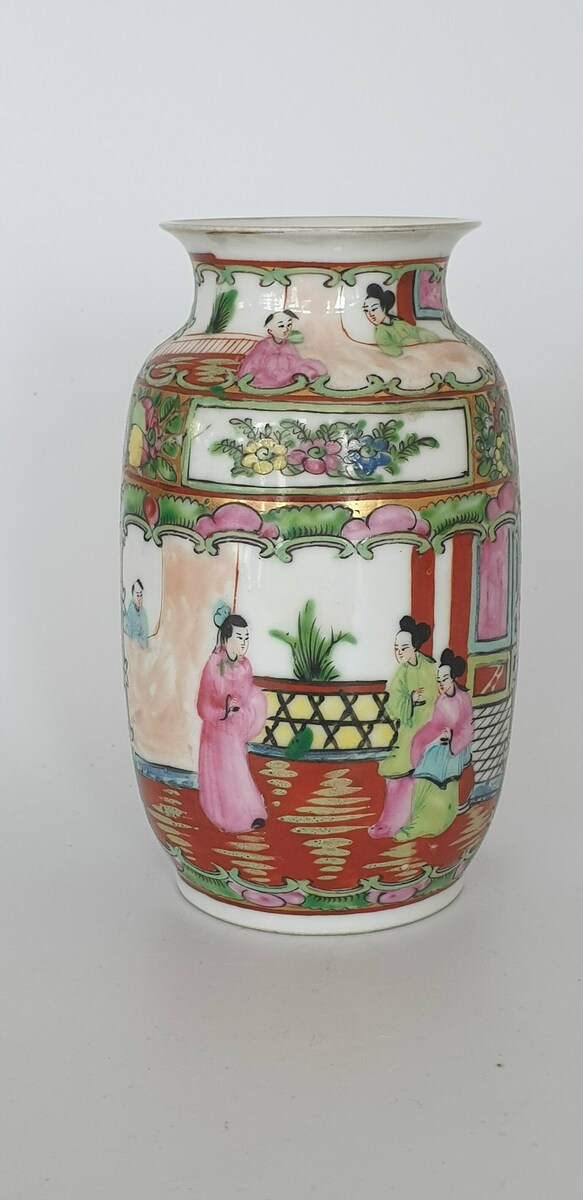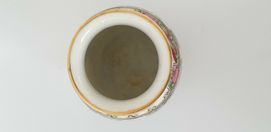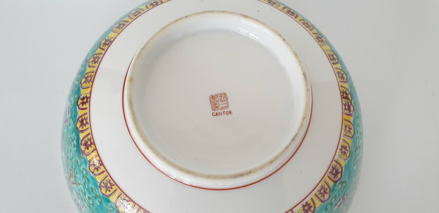 Twee grote porseleinen kommen en een eierschaal vaasje, famille rose. China, 20e eeuw. |