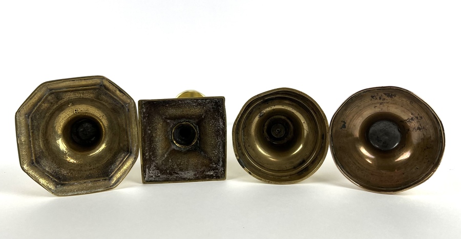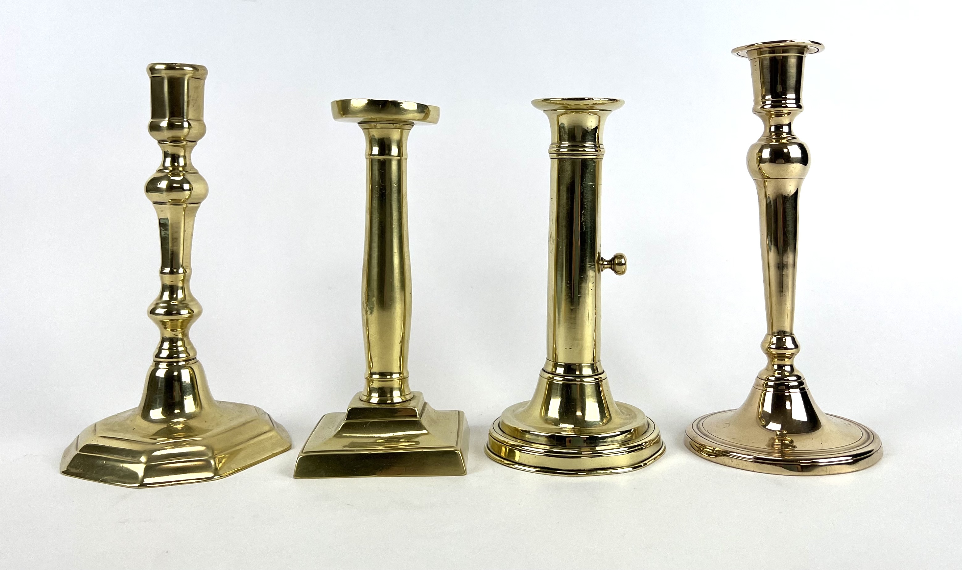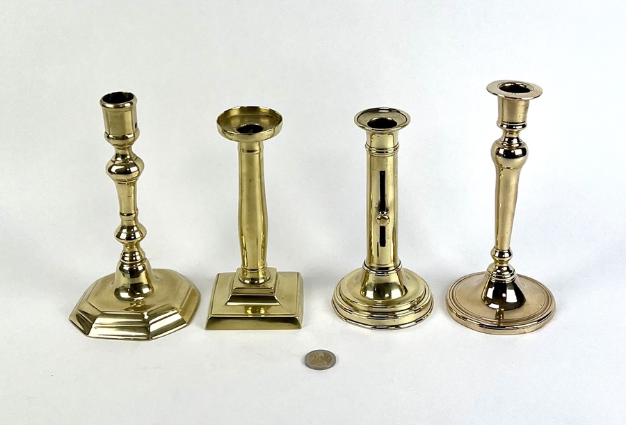 Lot van vier messing kaarsenstandaards, 19e en 20e eeuw. |
