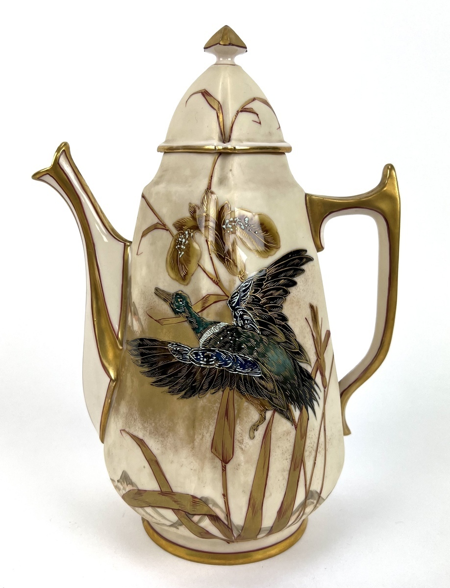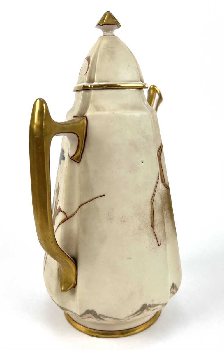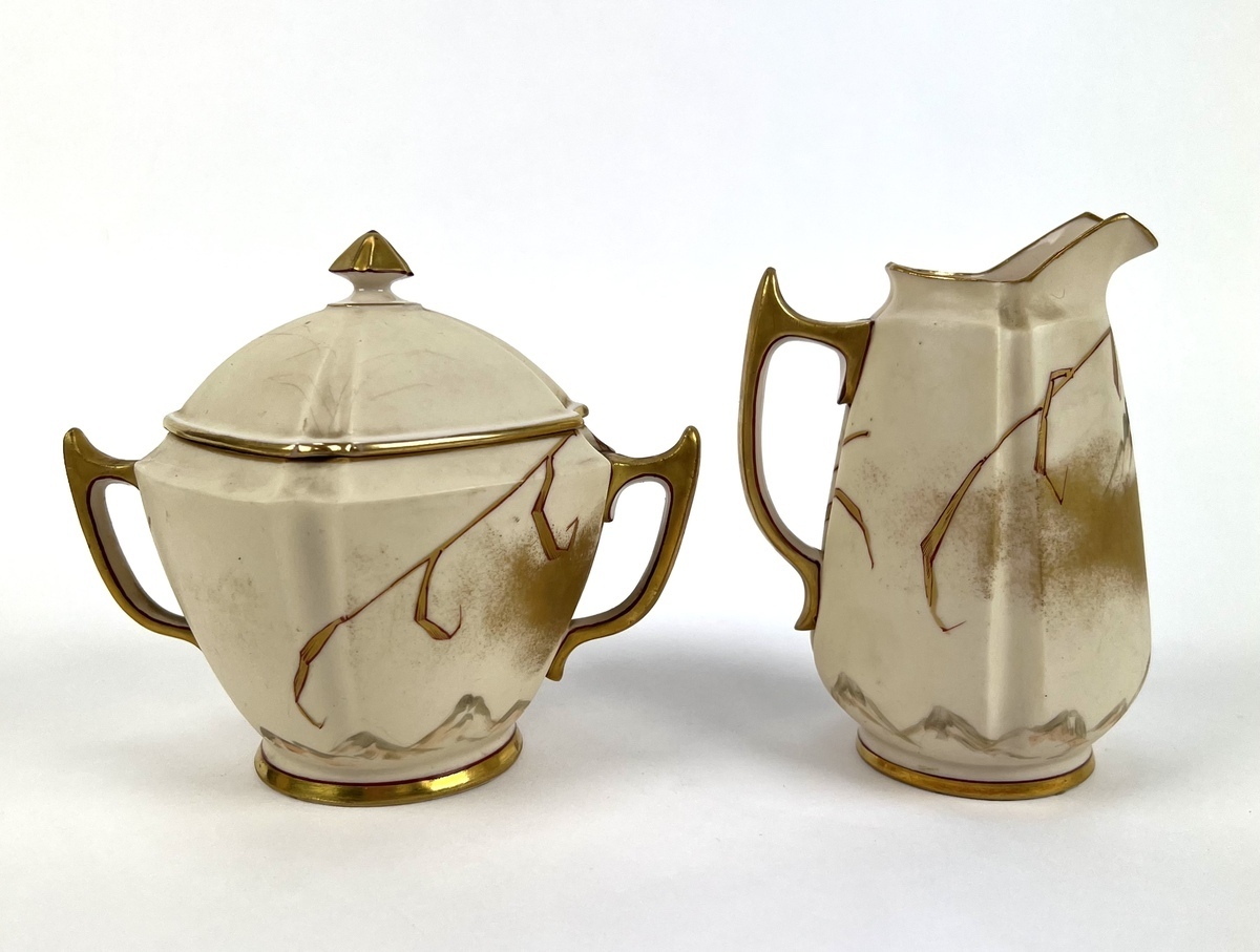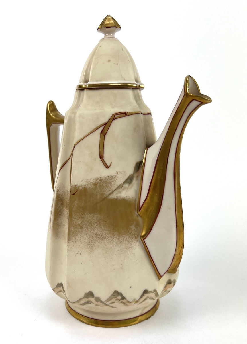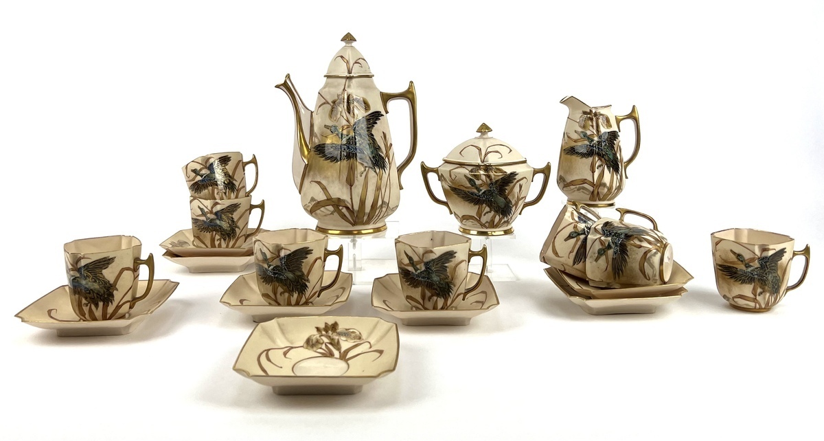 Porseleinen koffieservies bestaande uit een koffiepot, melkkan, suikerpot, acht kop-en-schotels, eerste helft 20e eeuw. |