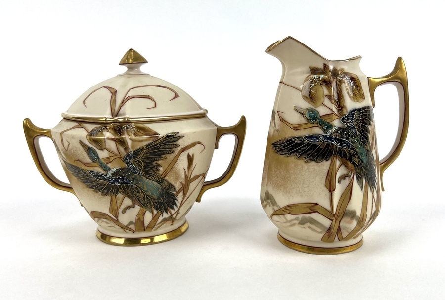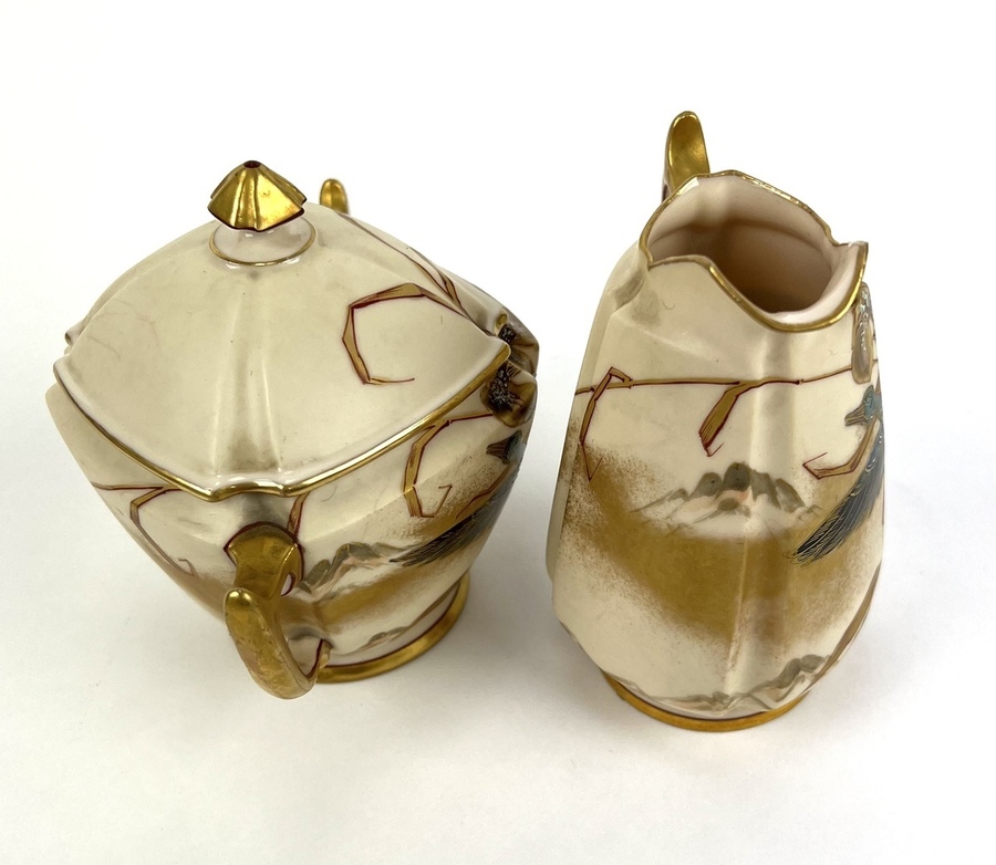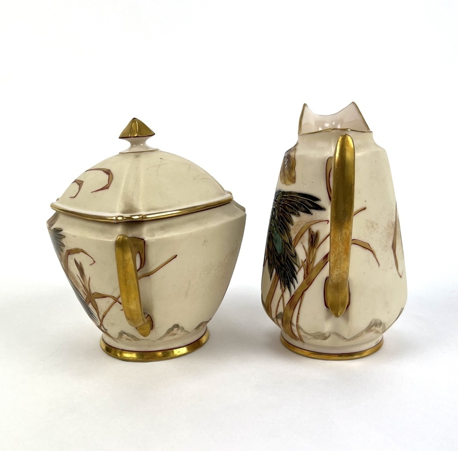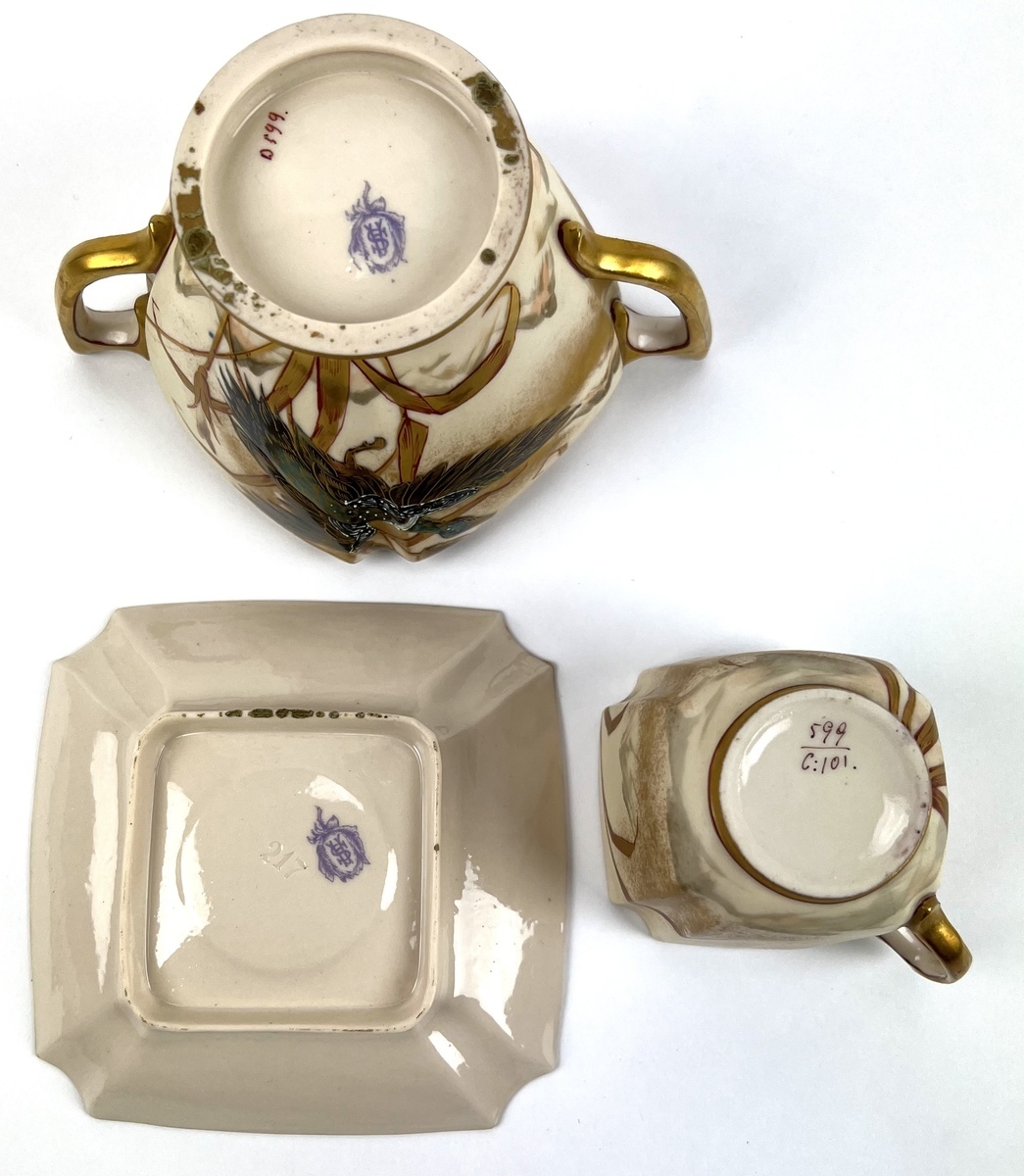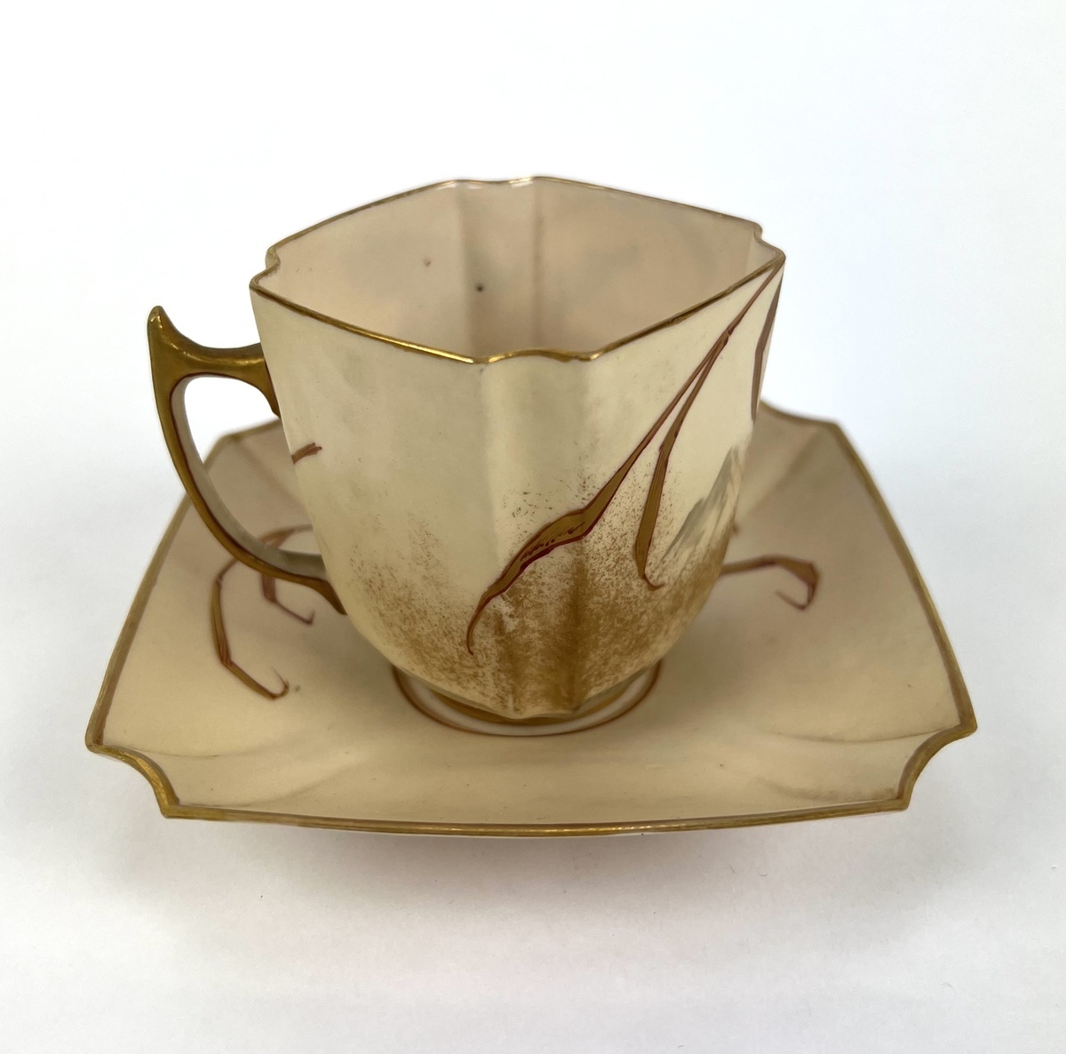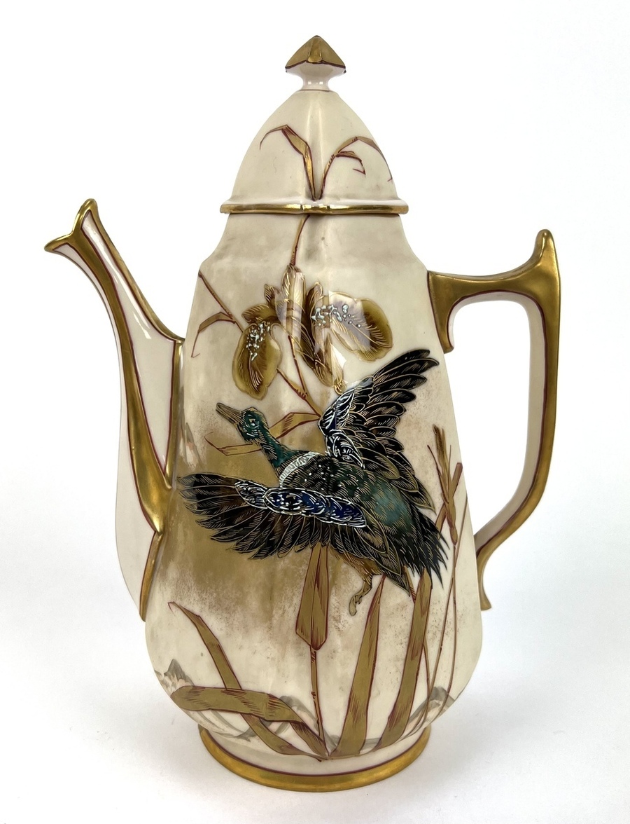 Porseleinen koffieservies bestaande uit een koffiepot, melkkan, suikerpot, acht kop-en-schotels, eerste helft 20e eeuw. |