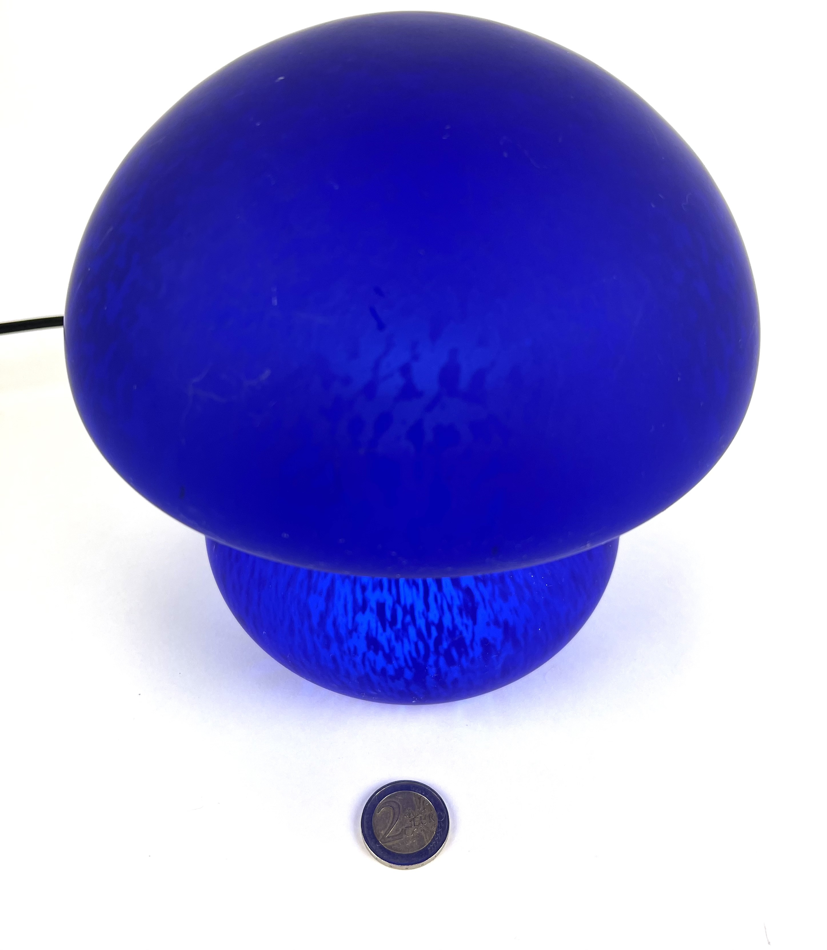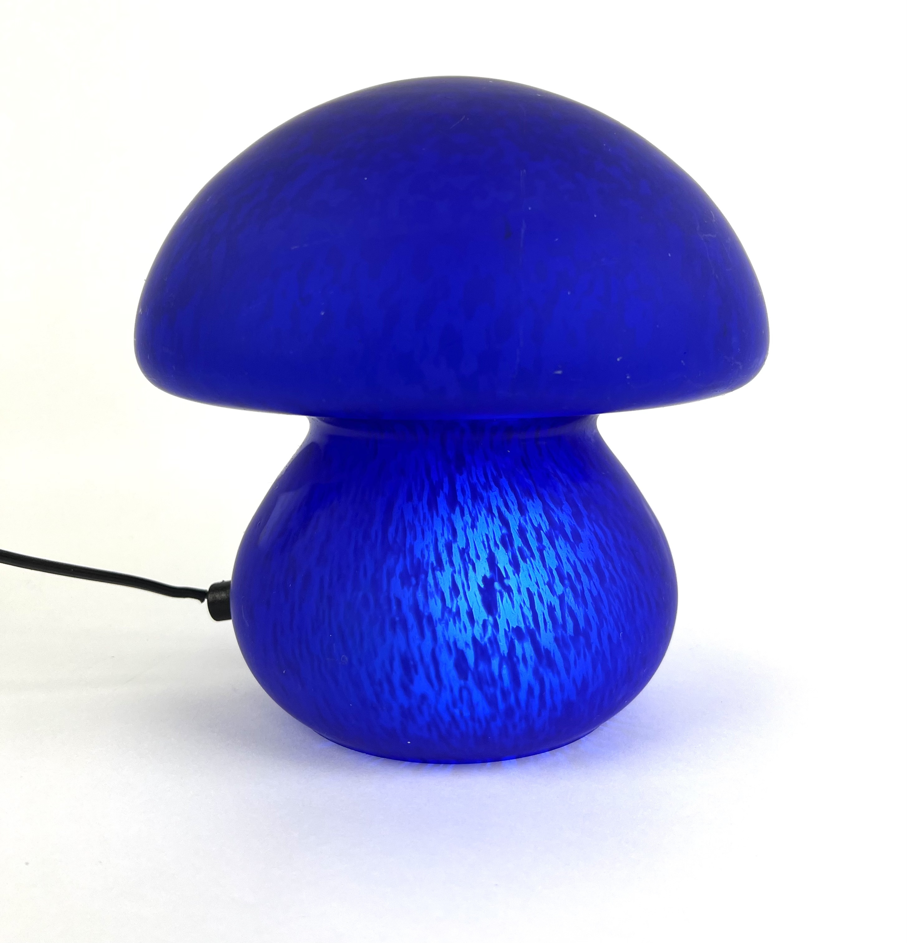 Blauwe glazen tafellamp in de vorm van een paddenstoel, 21e eeuw. |