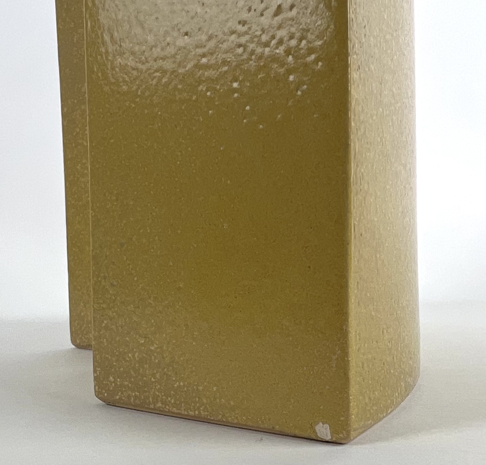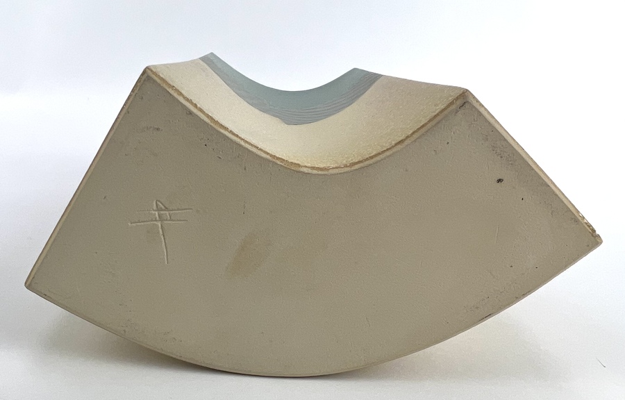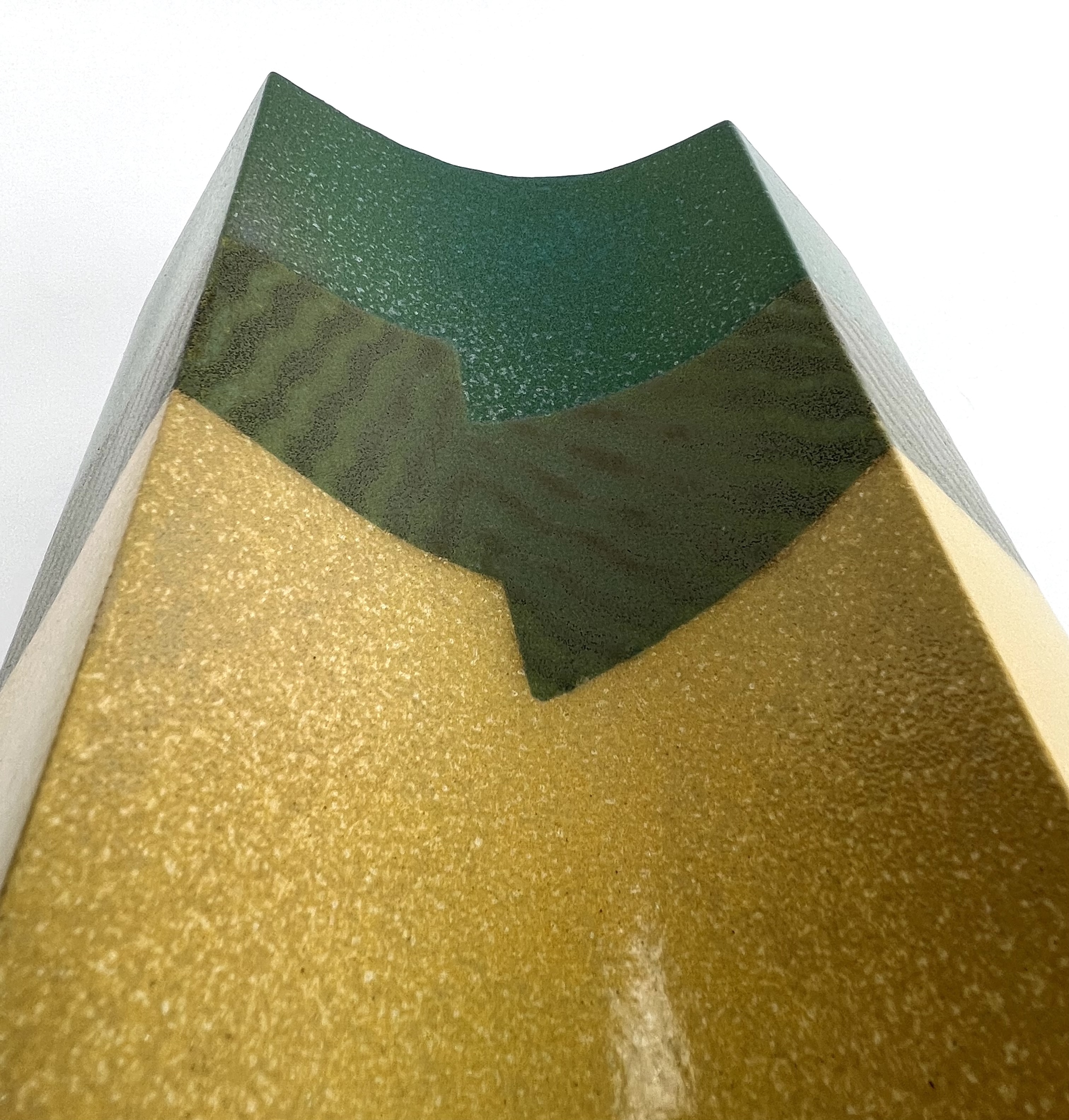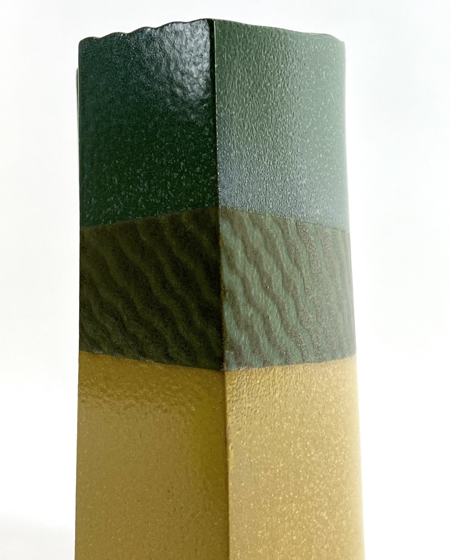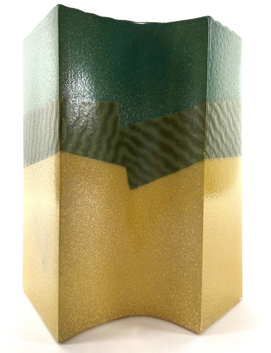Modern keramieken groen/geel plastiek door Henneke Chevalier. Aan de onderzijde gemerkt met monogram. |