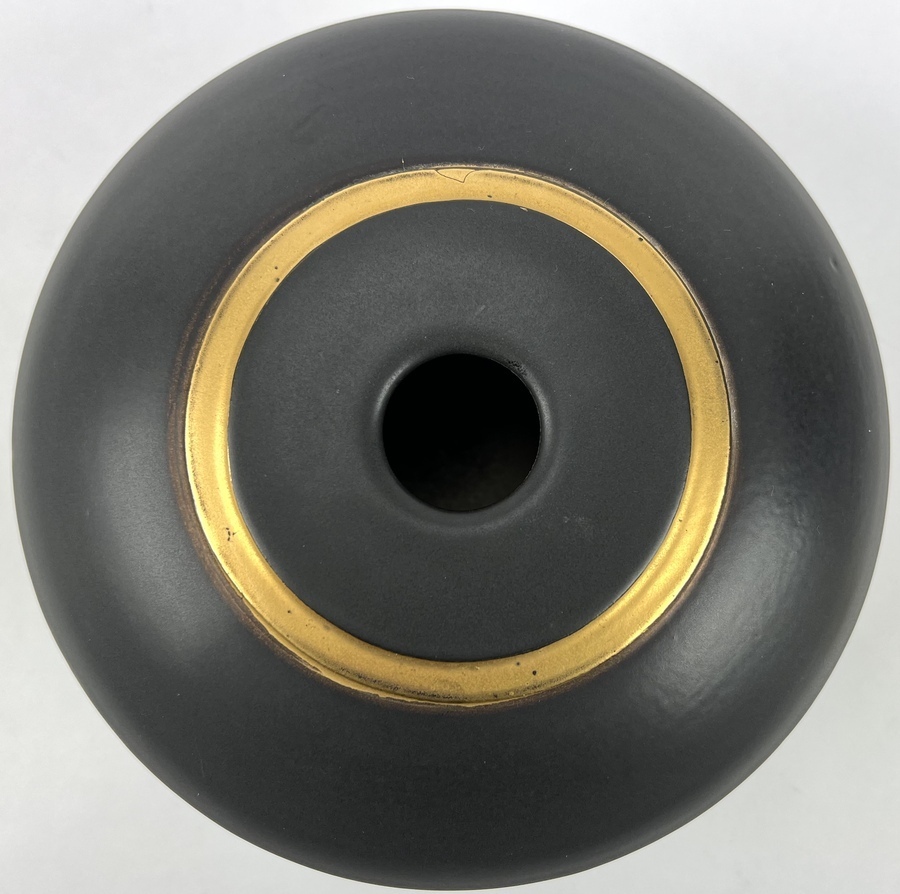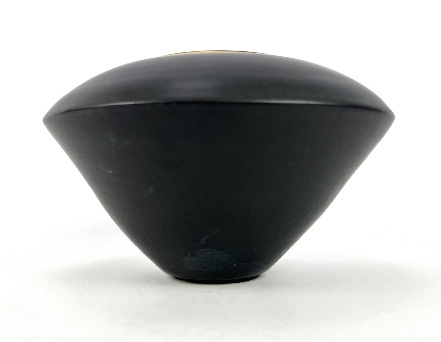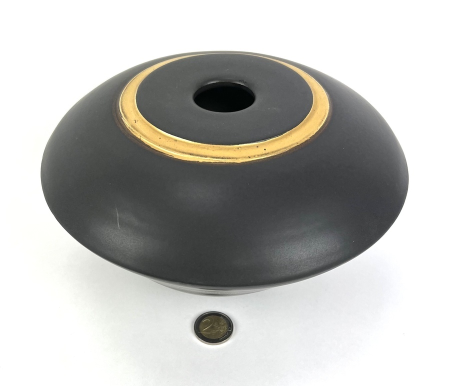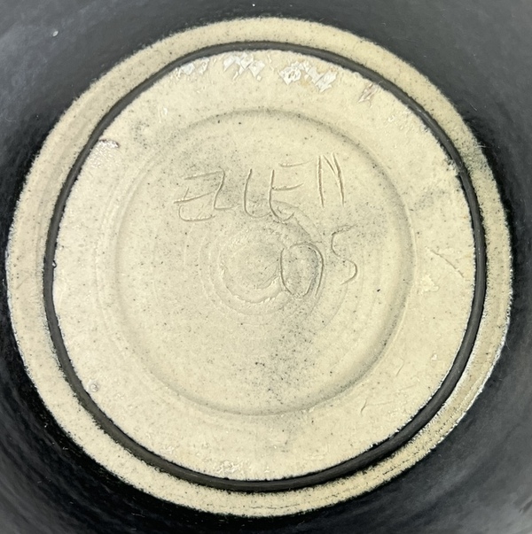 Zwarte aardewerken vaas, gesigneerd Ellen 05. |