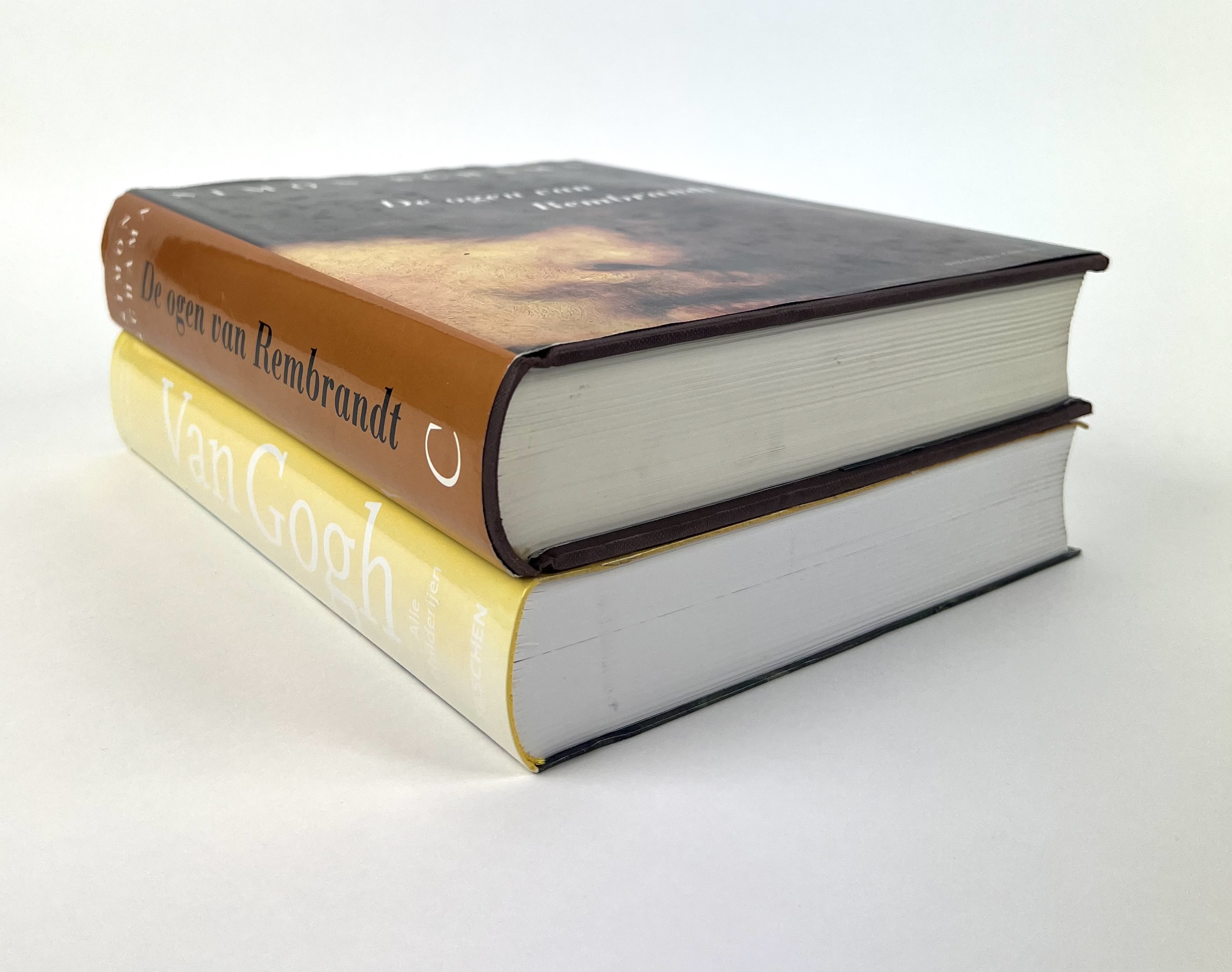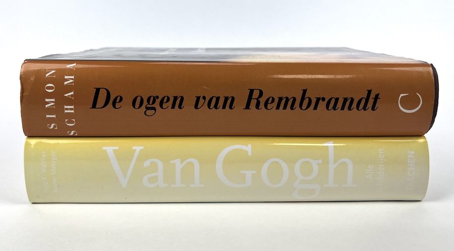 Twee kunstboeken, "De Ogen van Rembrandt" door Simon Schama, uitgave uit 2019 en "Vincent van Gogh alle schilderijen", deel 1, een Taschen uitgave uit 2001. |