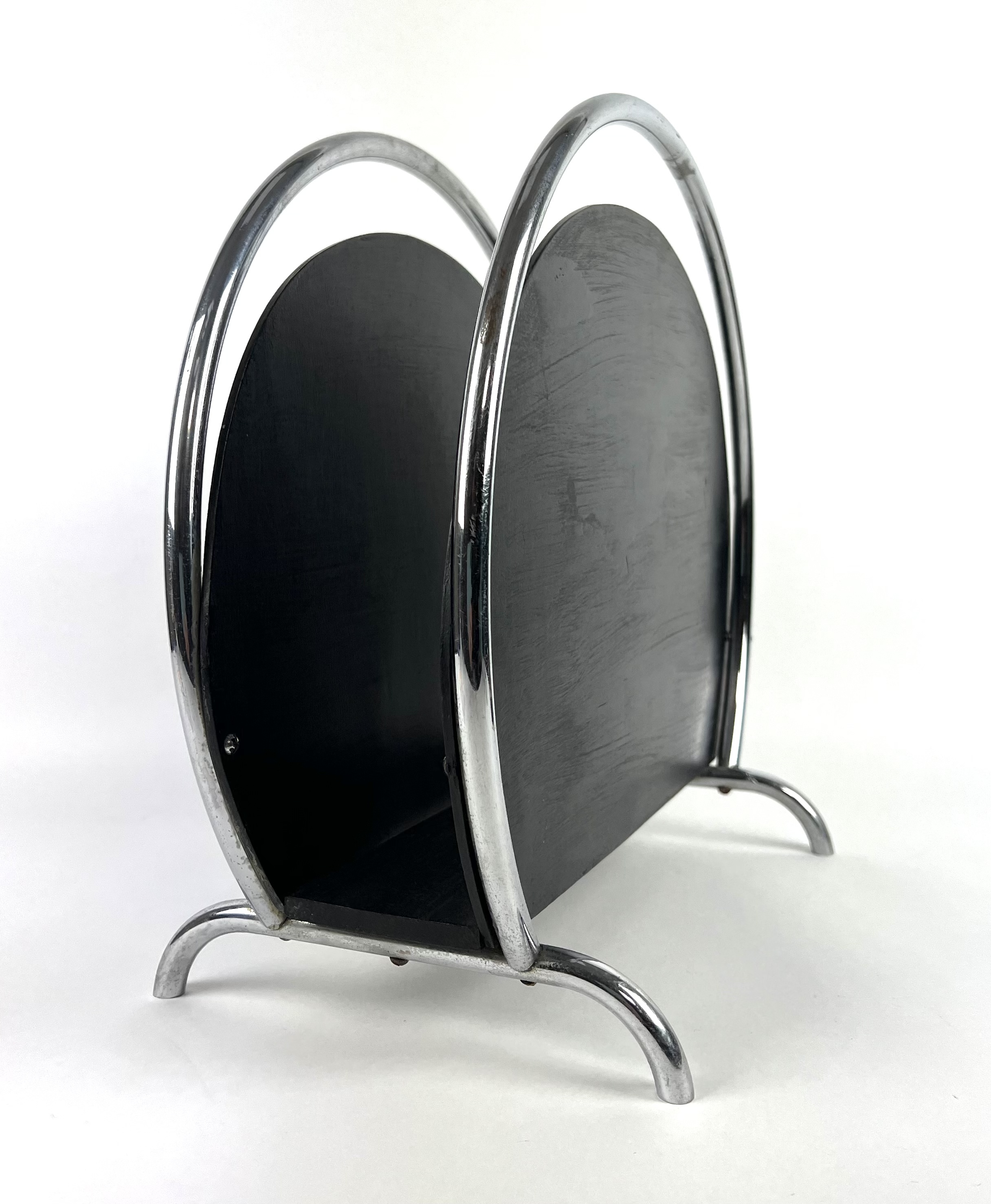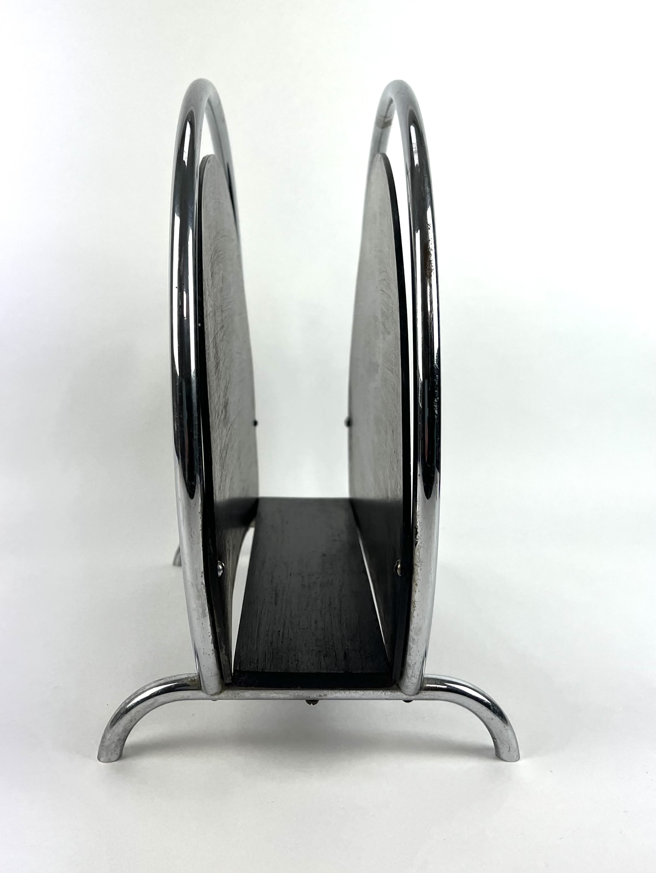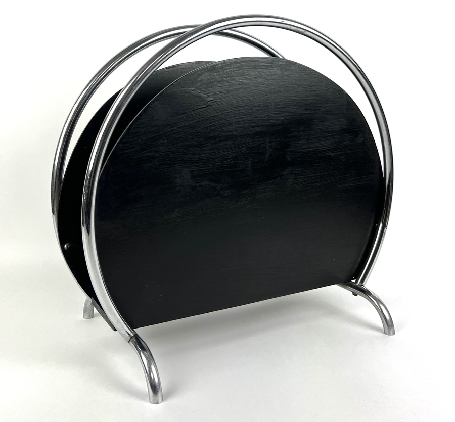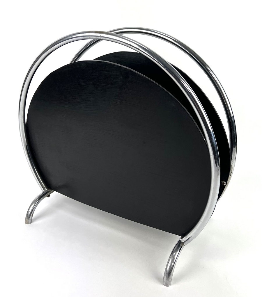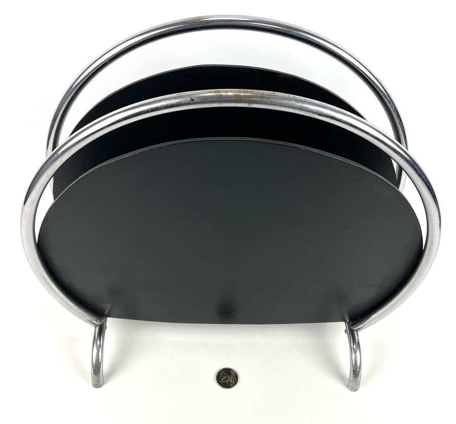 Art Deco lectuurstandaard, hout met verchroomde buizen. Jaren 30. |