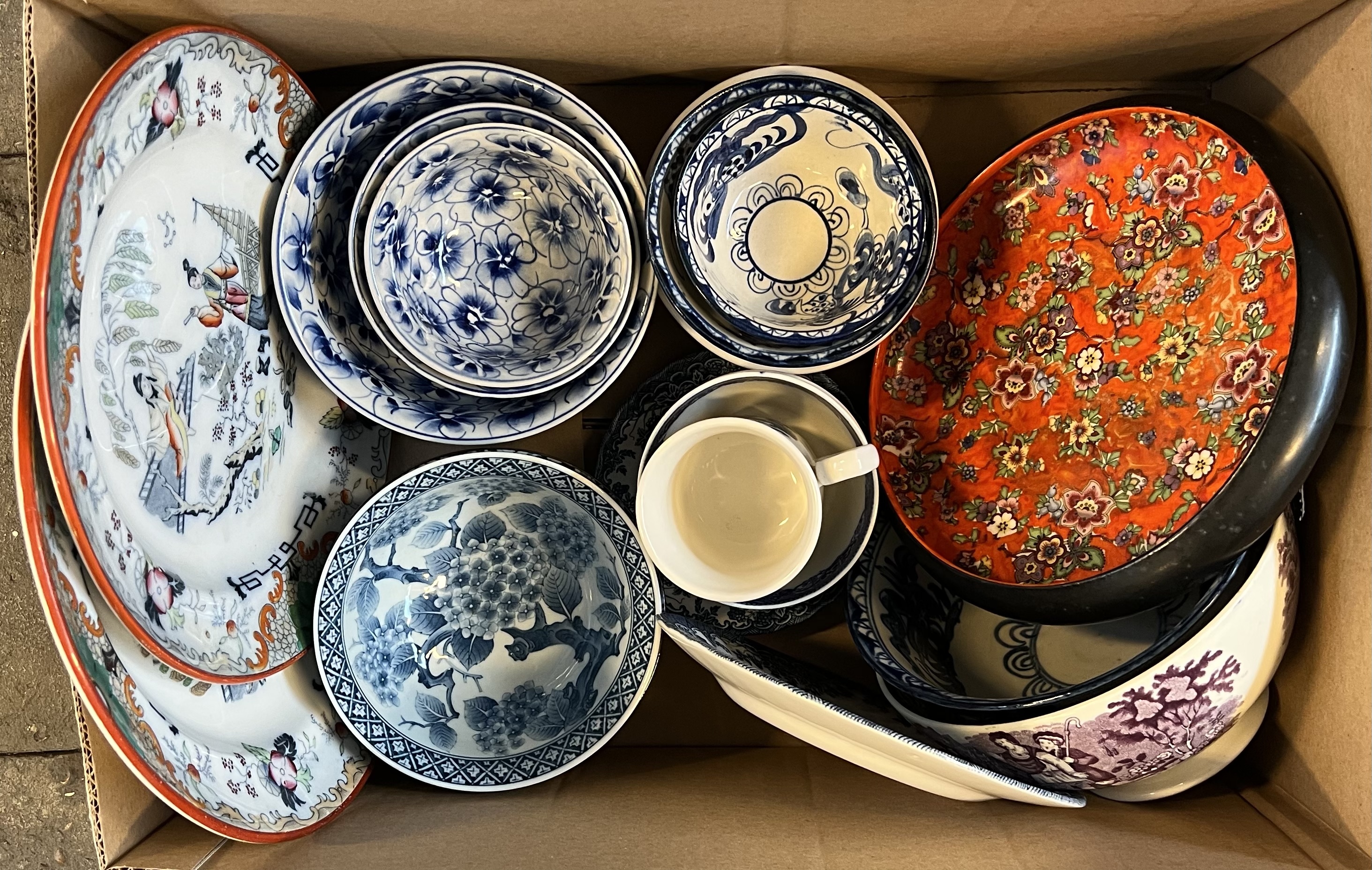 Lot porseleinen en aardewerken kommen en schalen, 20e eeuw. |
