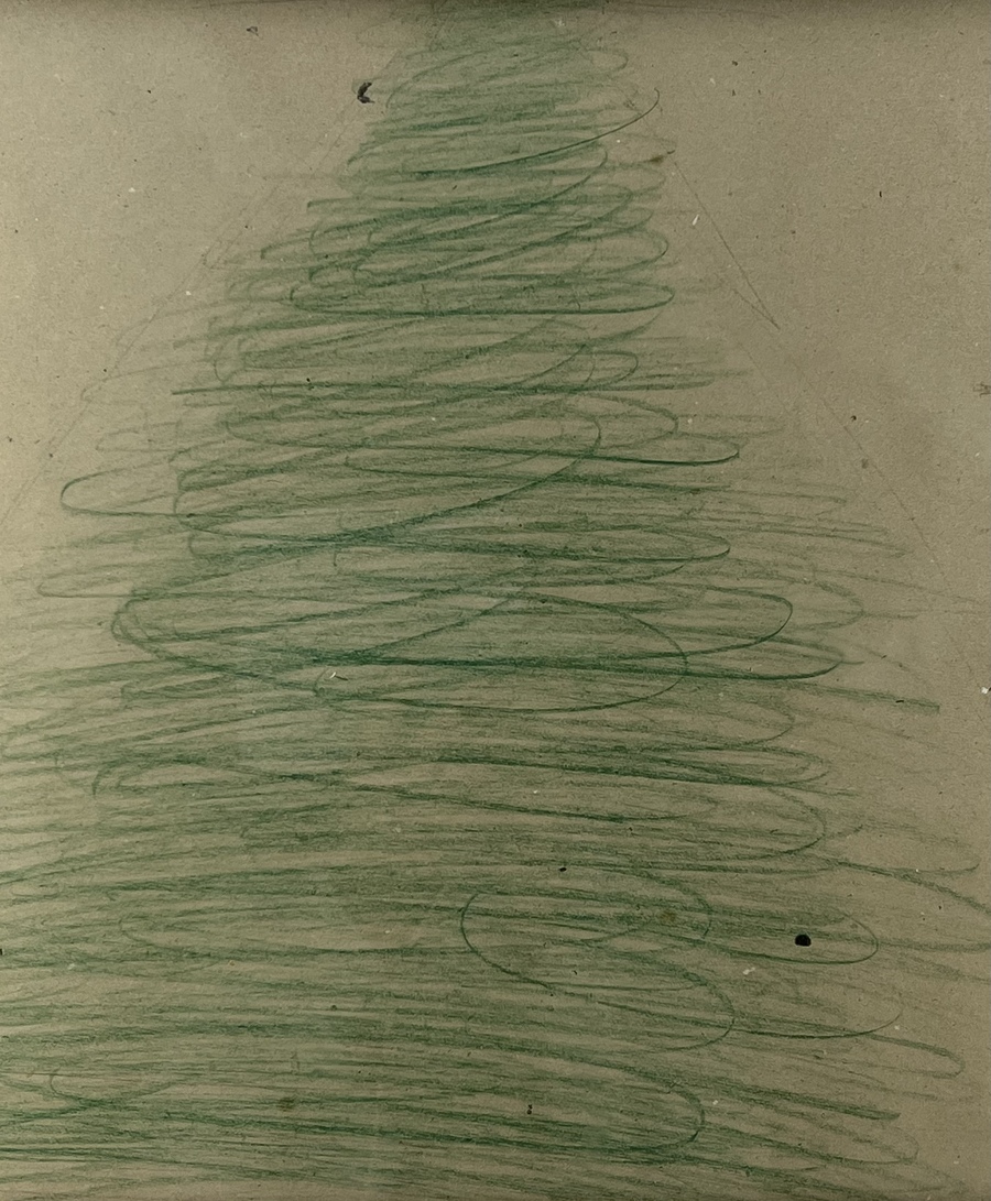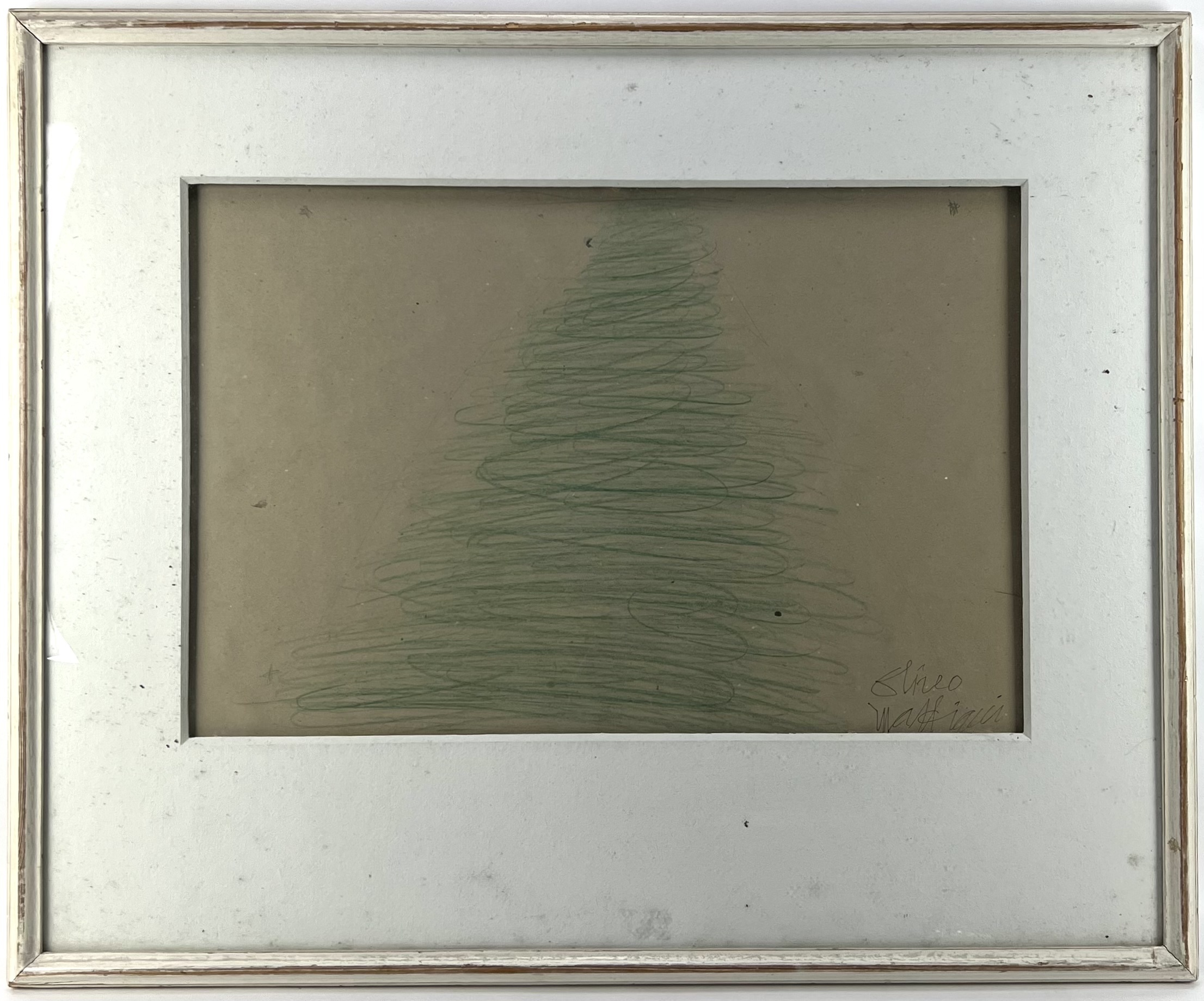 Potloodtekening in groen op karton. Rechtsonder gesigneerd, tweede helft 20e eeuw. |