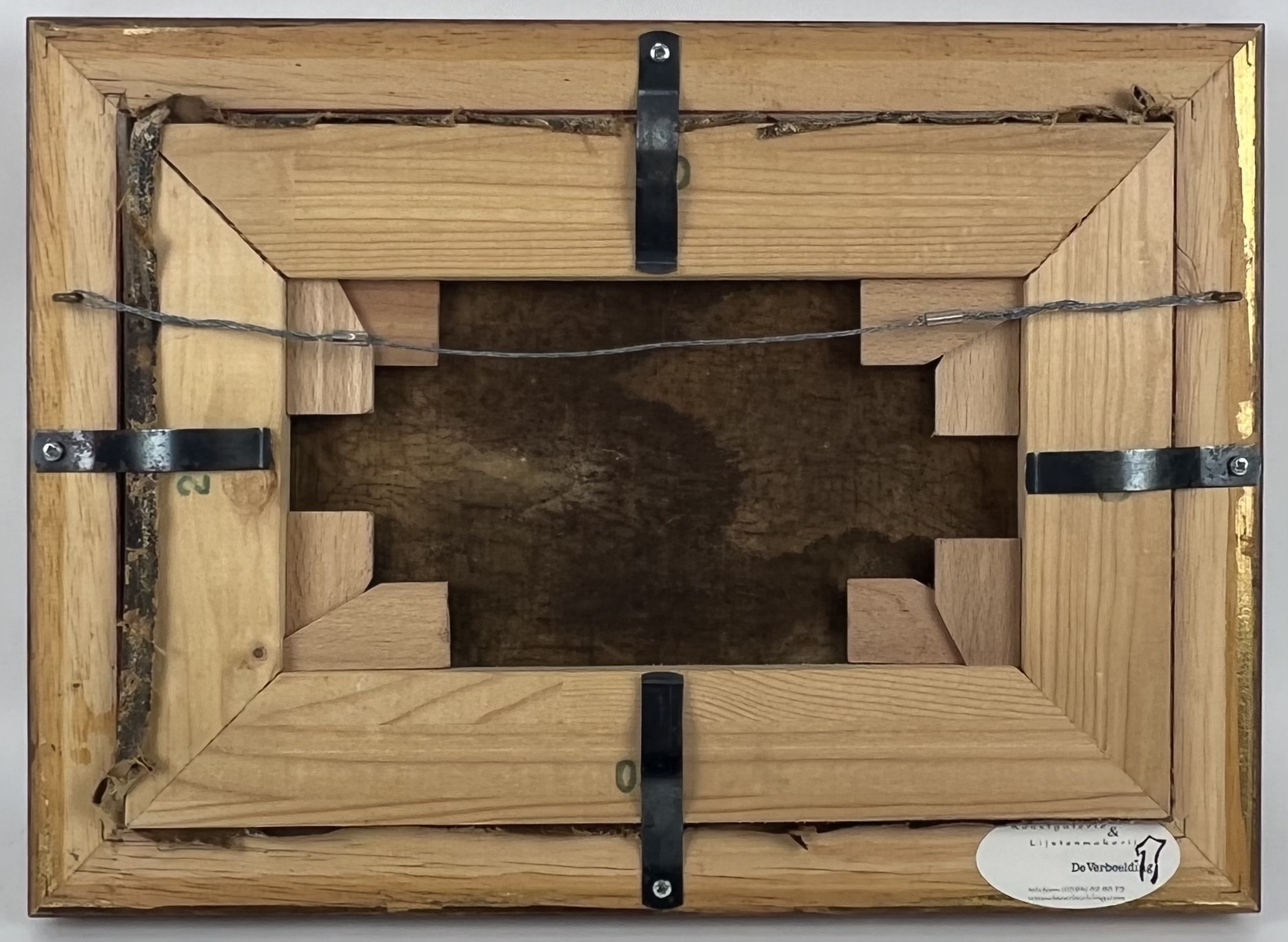 | Conditie | Kleine beschadiging doek, doek op een nieuw spieraam. | |