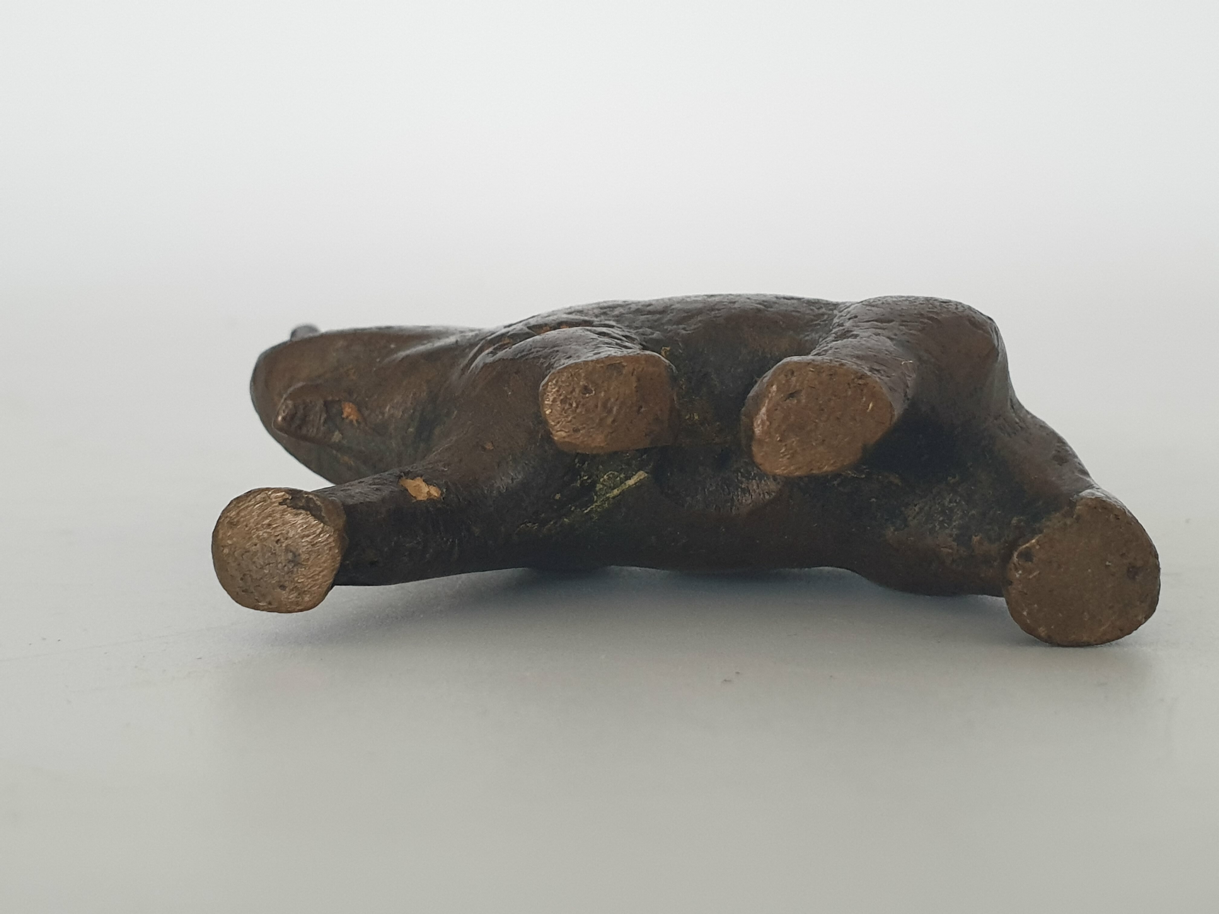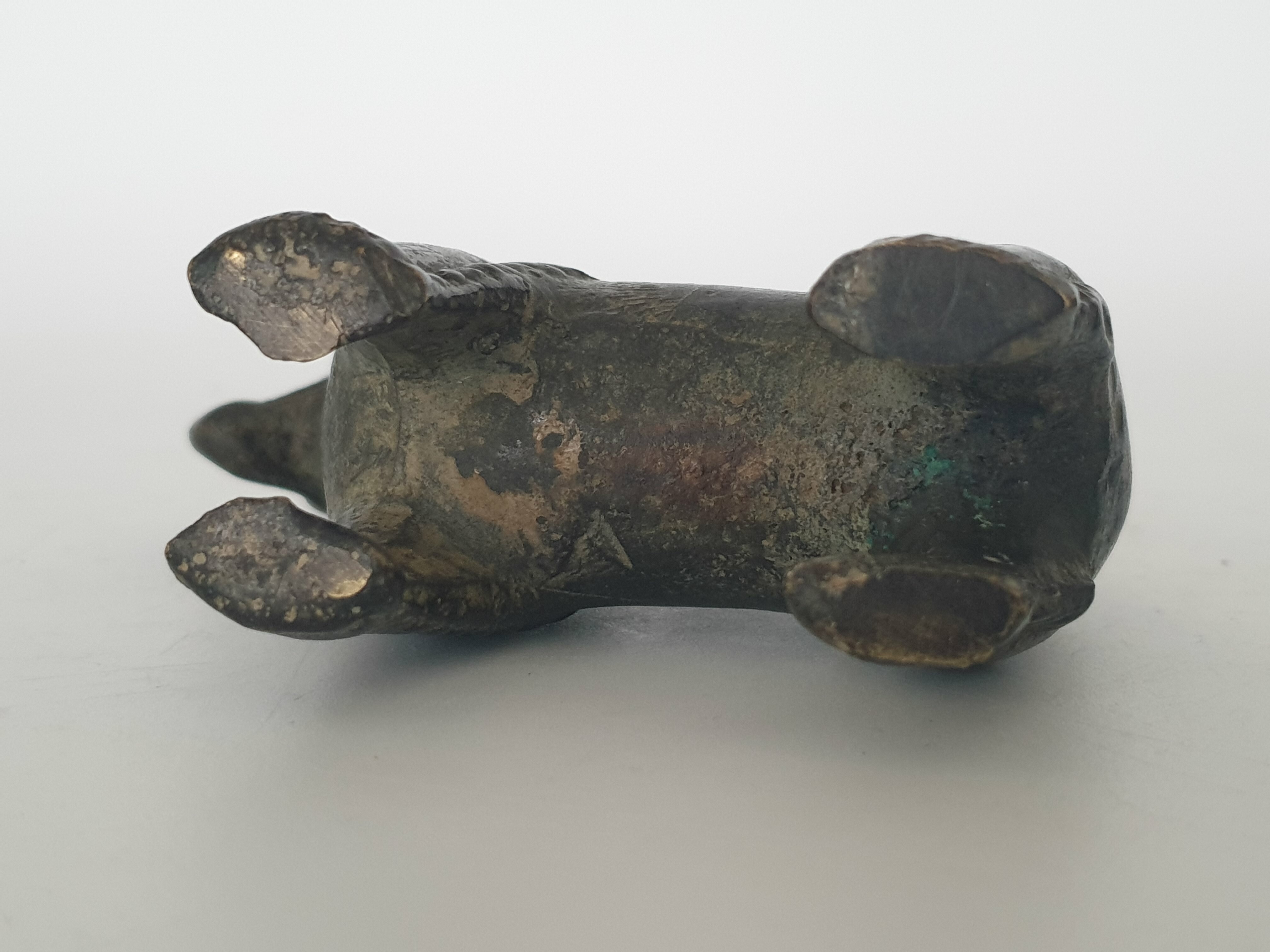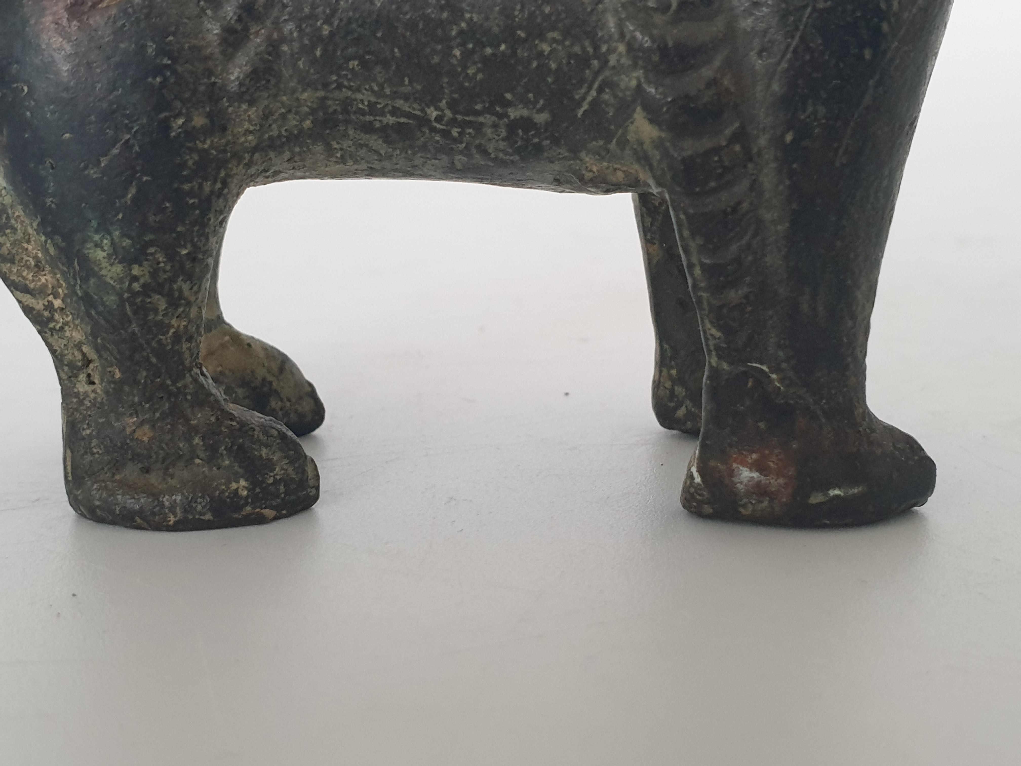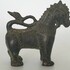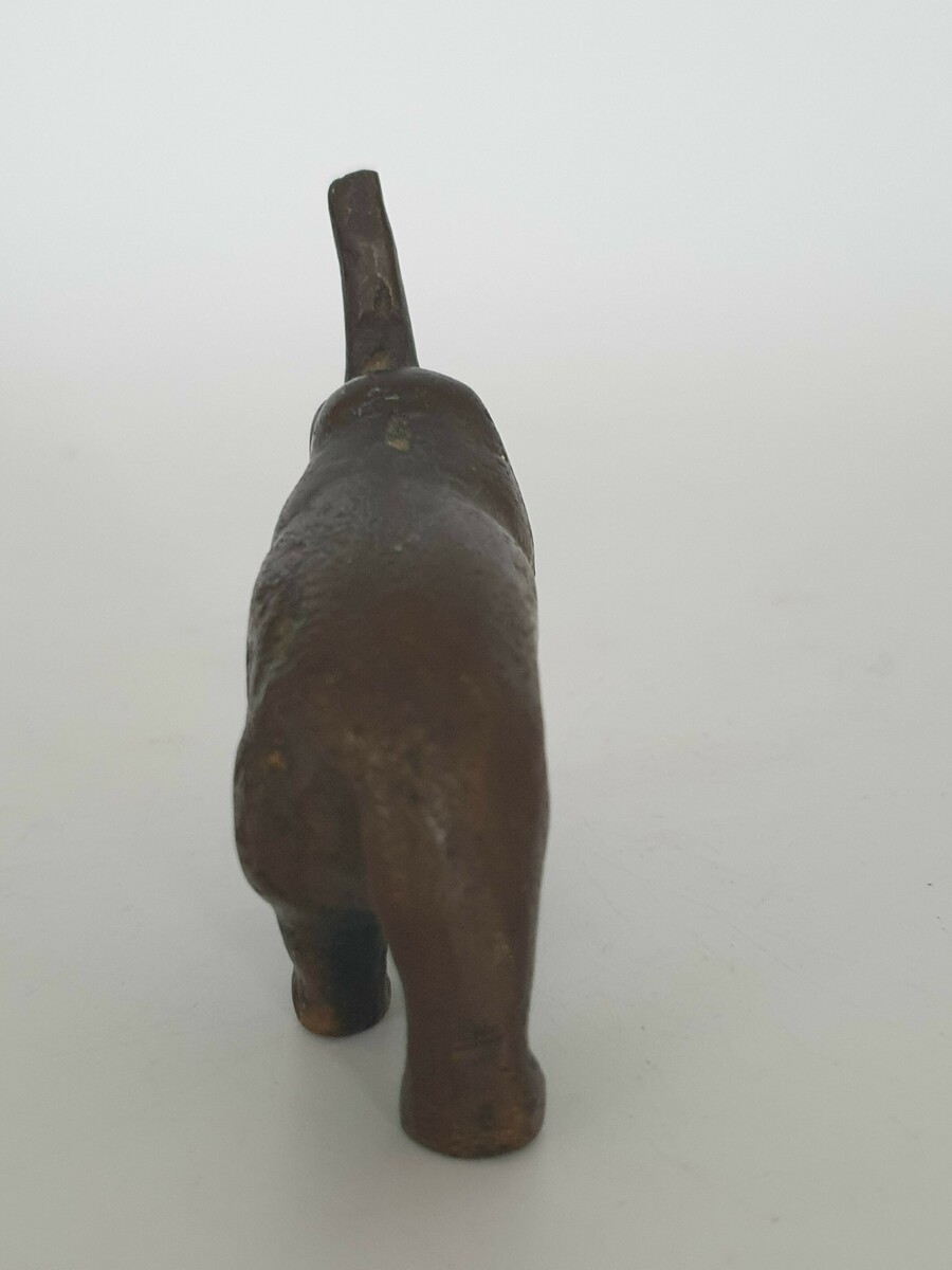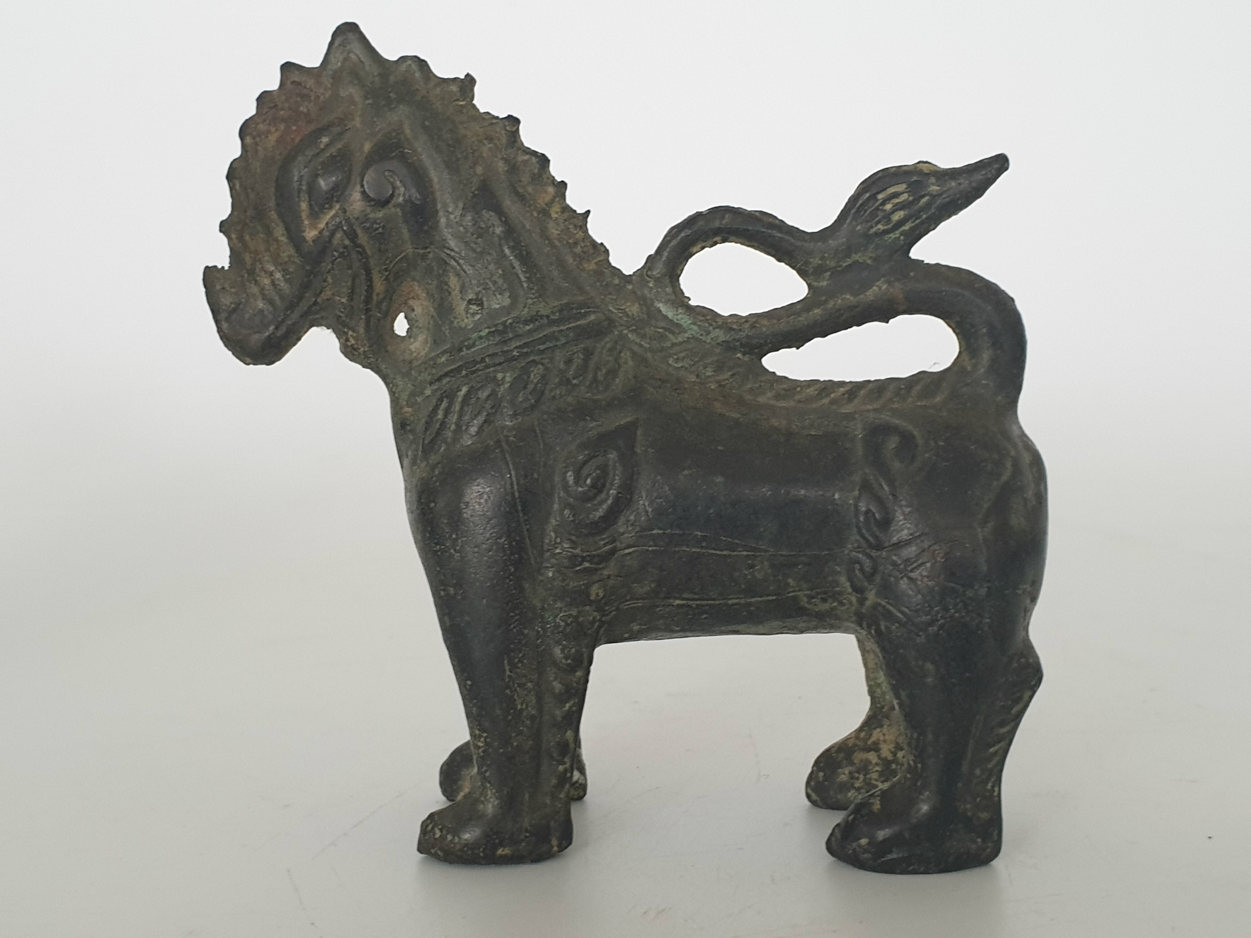Drie beelden van olifanten uit India waarvan een als kandelaar, twee Foo Dogs uit China. Brons legeringen, 20e eeuw. |