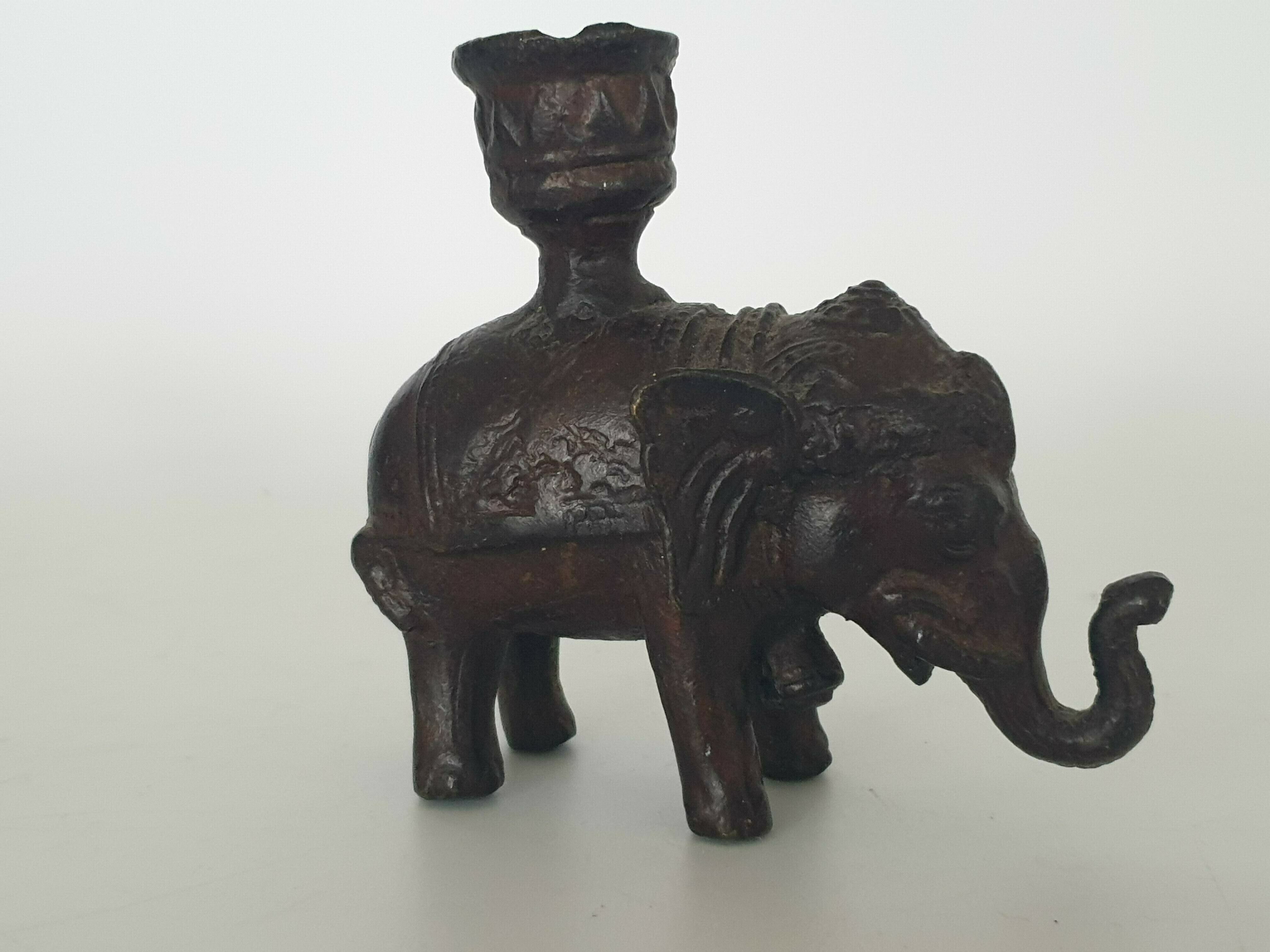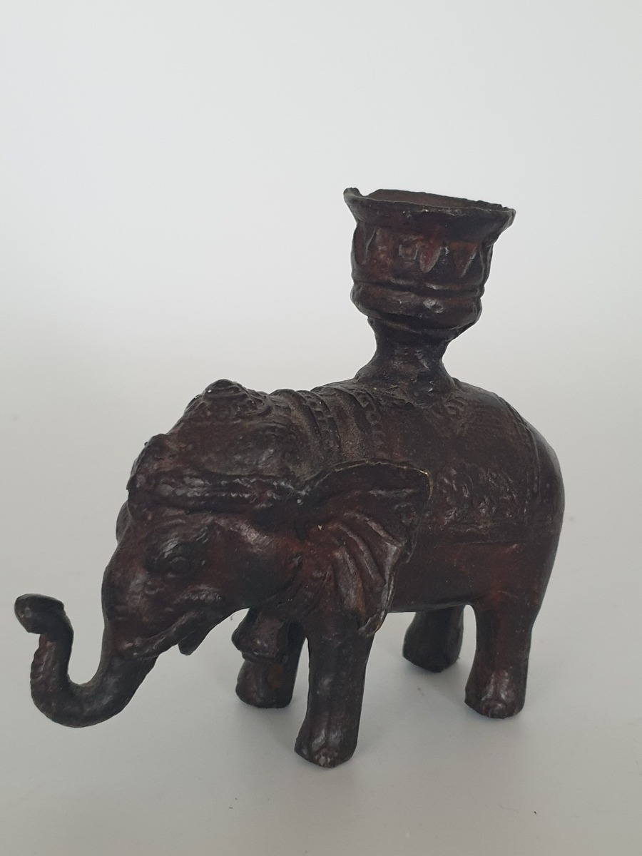| Conditie | Ontbrekend stukje van de kaarsenhouder/olifant, overige beelden in goede staat. | |