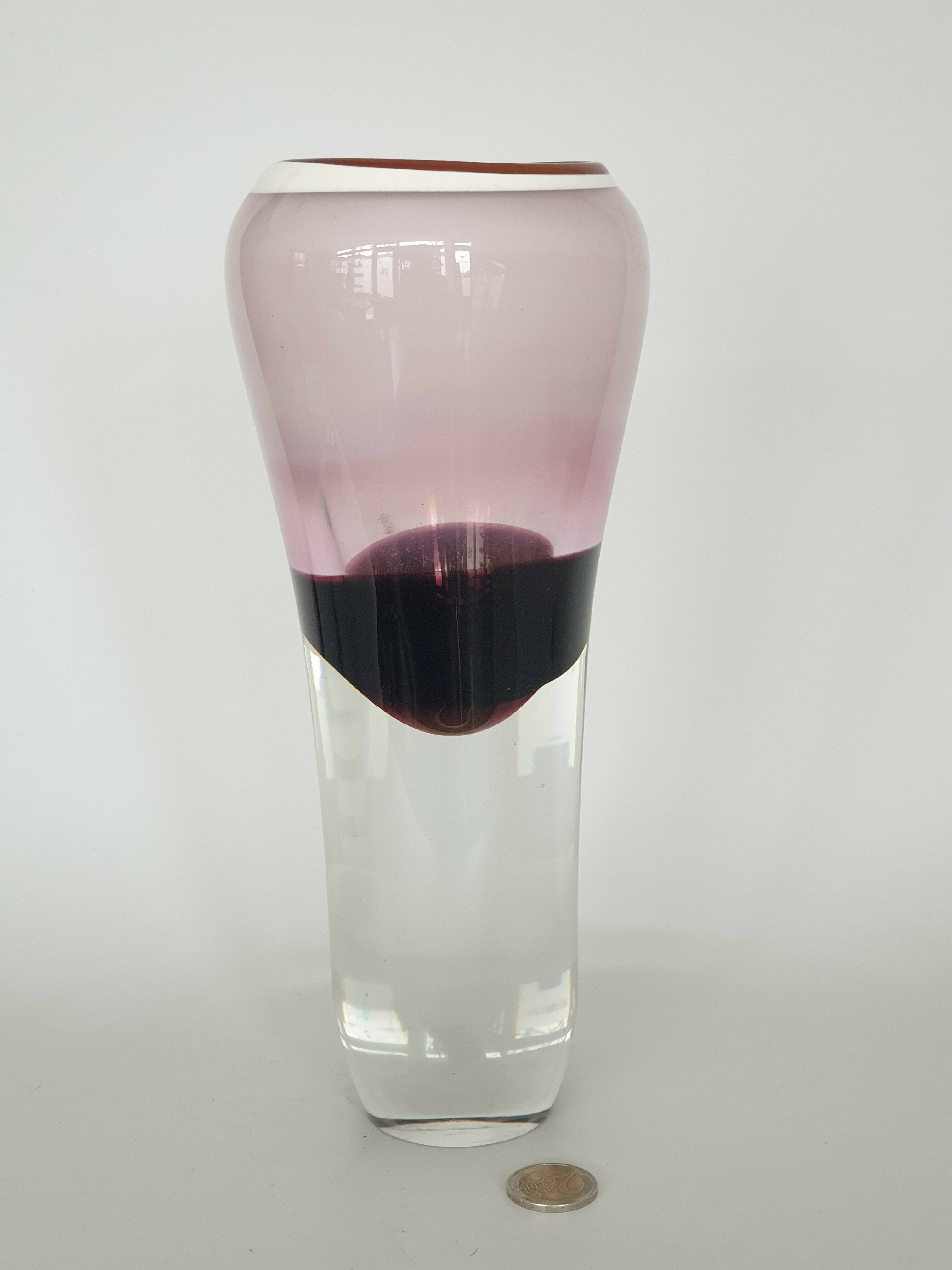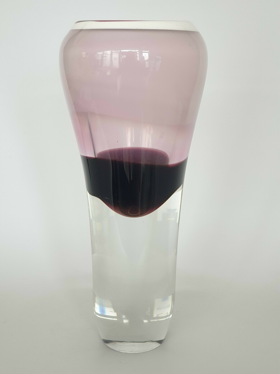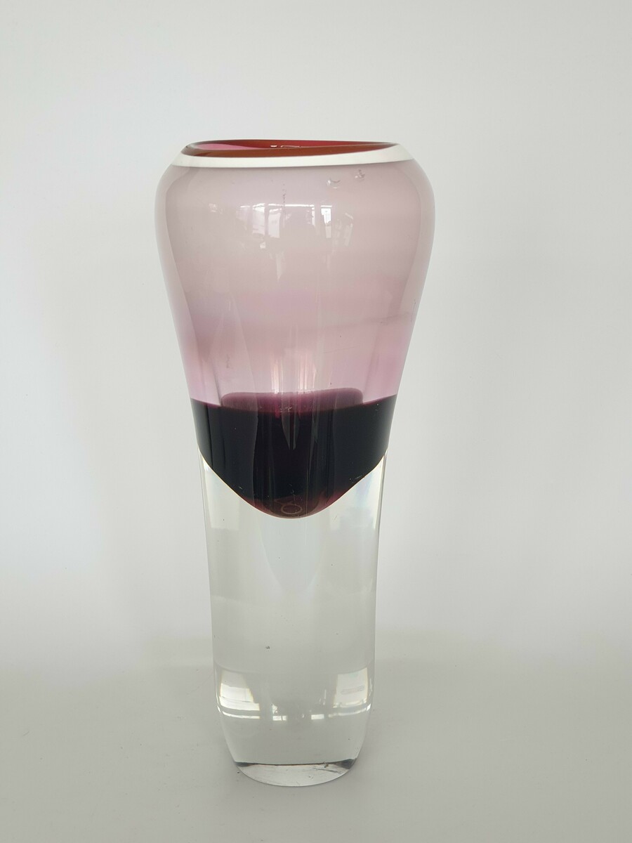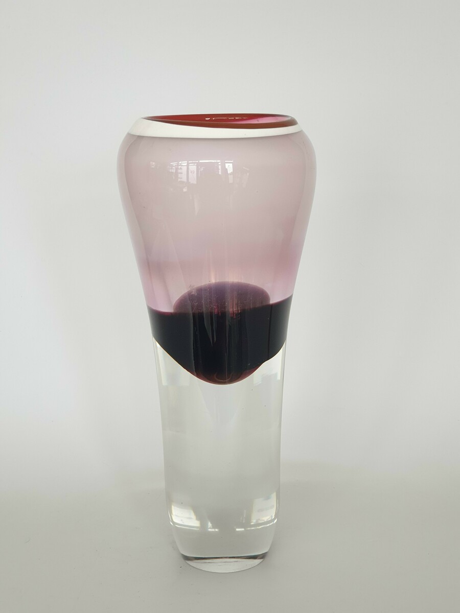 Glazen heldere/rode mond geblazen Tsjechisch vaas. Laatste kwart 20e eeuw. |