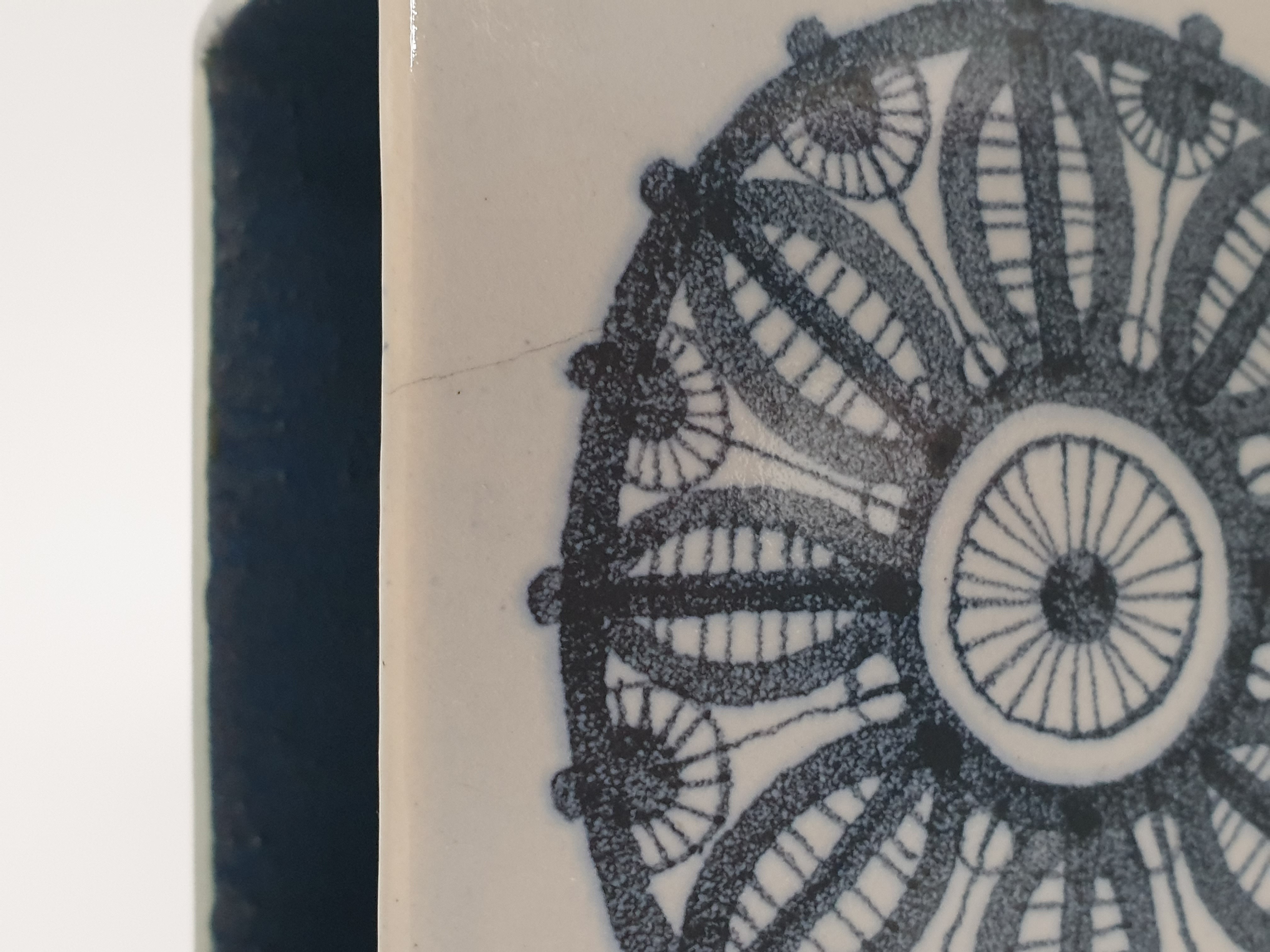 | Conditie | Vaas met bloem heeft een haarlijn. | |