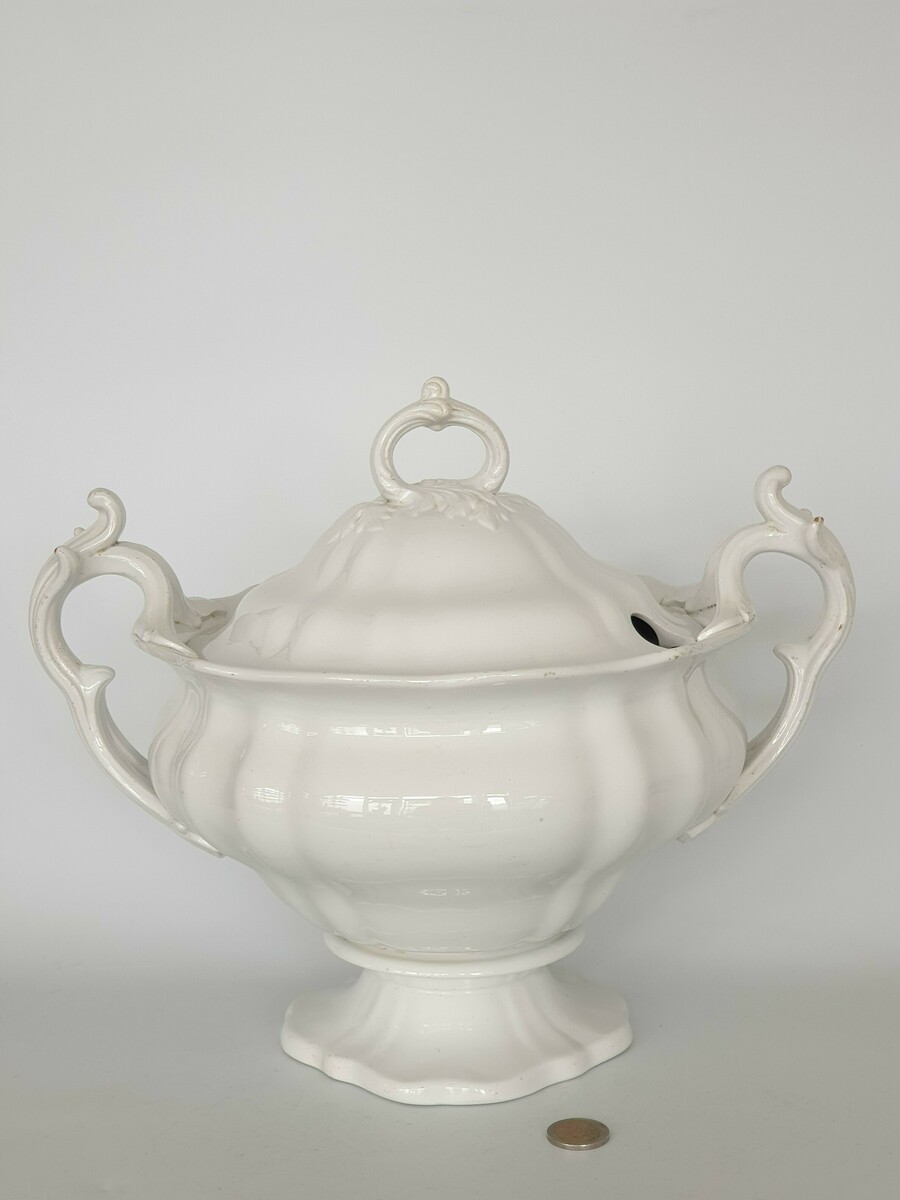 Porseleinen soepterrine, model Wellington van Petrus Regout uit Maastricht. Omstreeks 1870. |