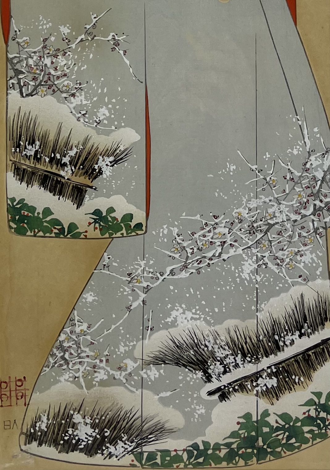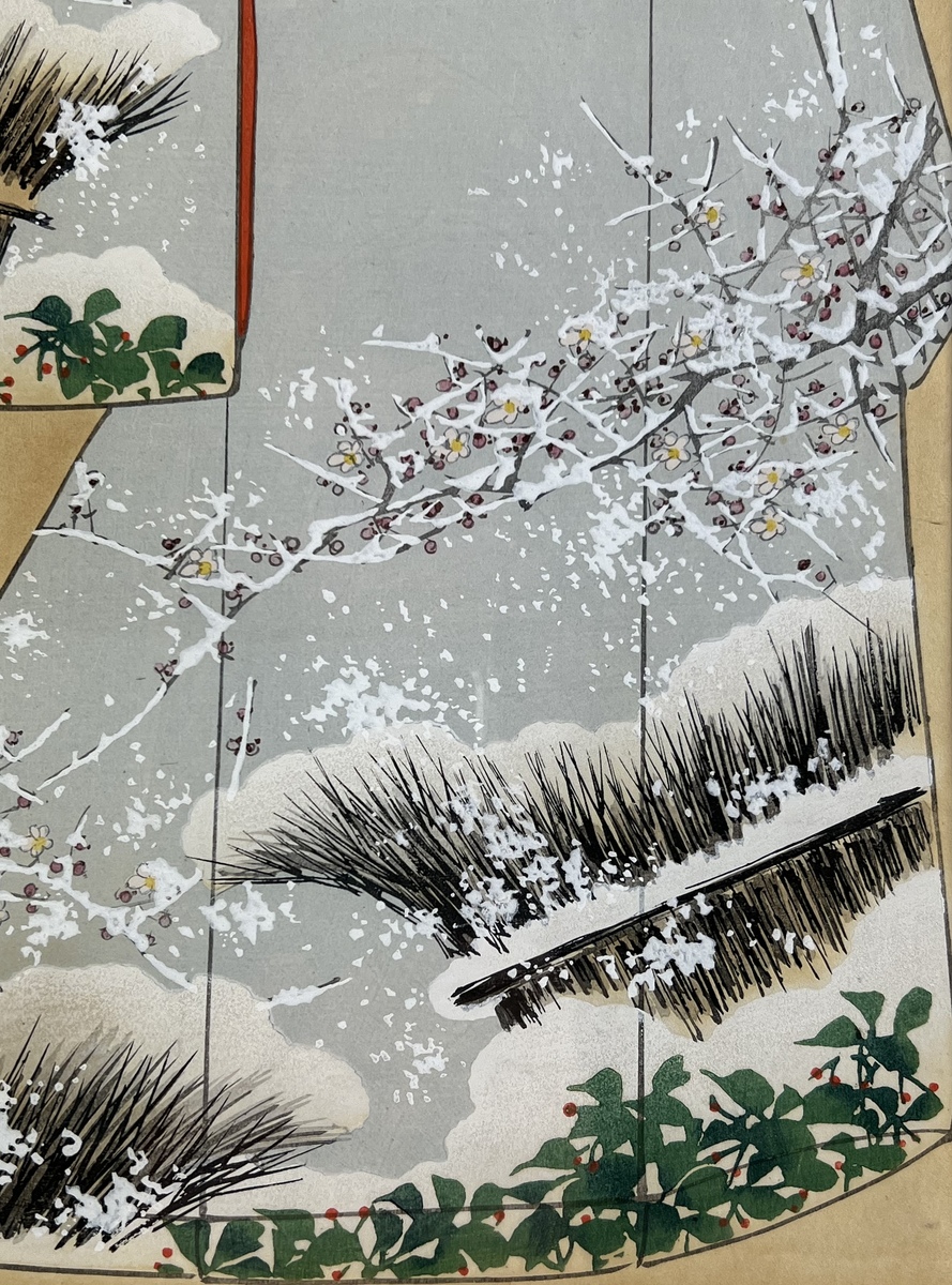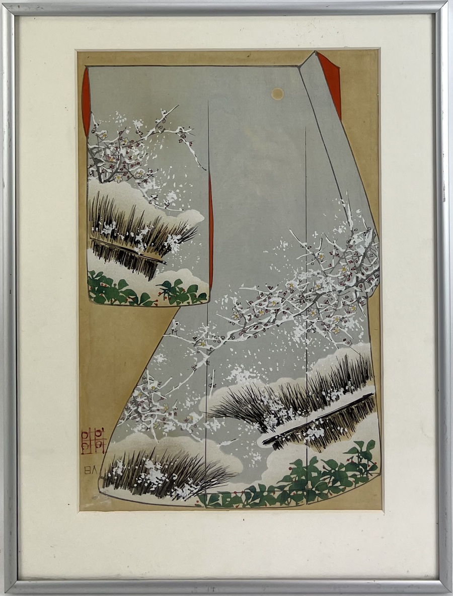 Kimono ontwerp, Etsujin (1857-1936), Japanse school met atelier stempel, omstreeks 1920. |