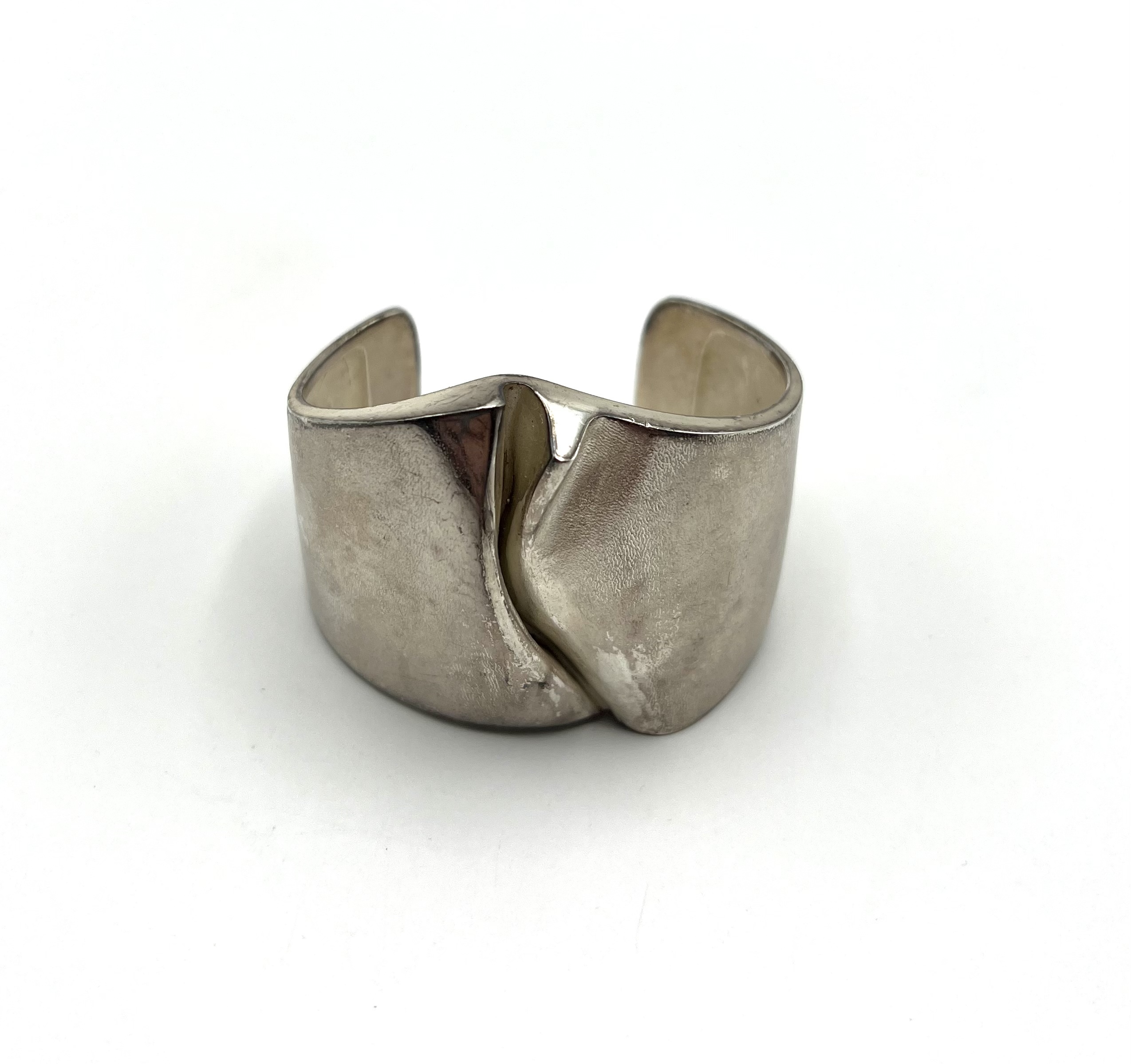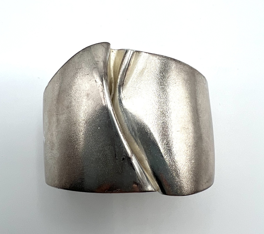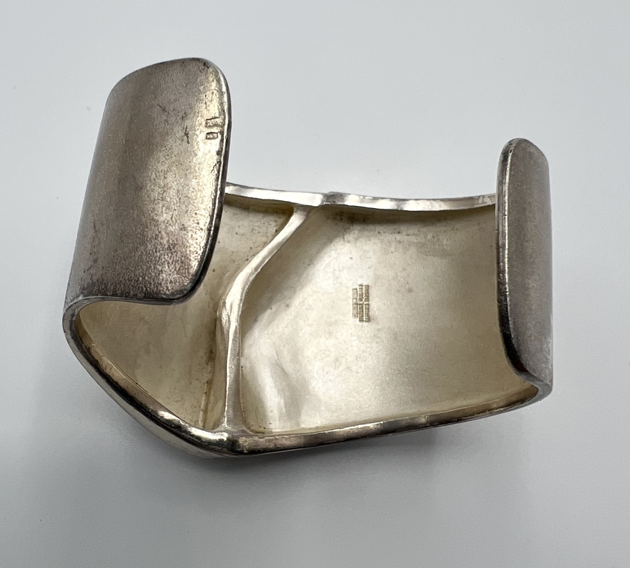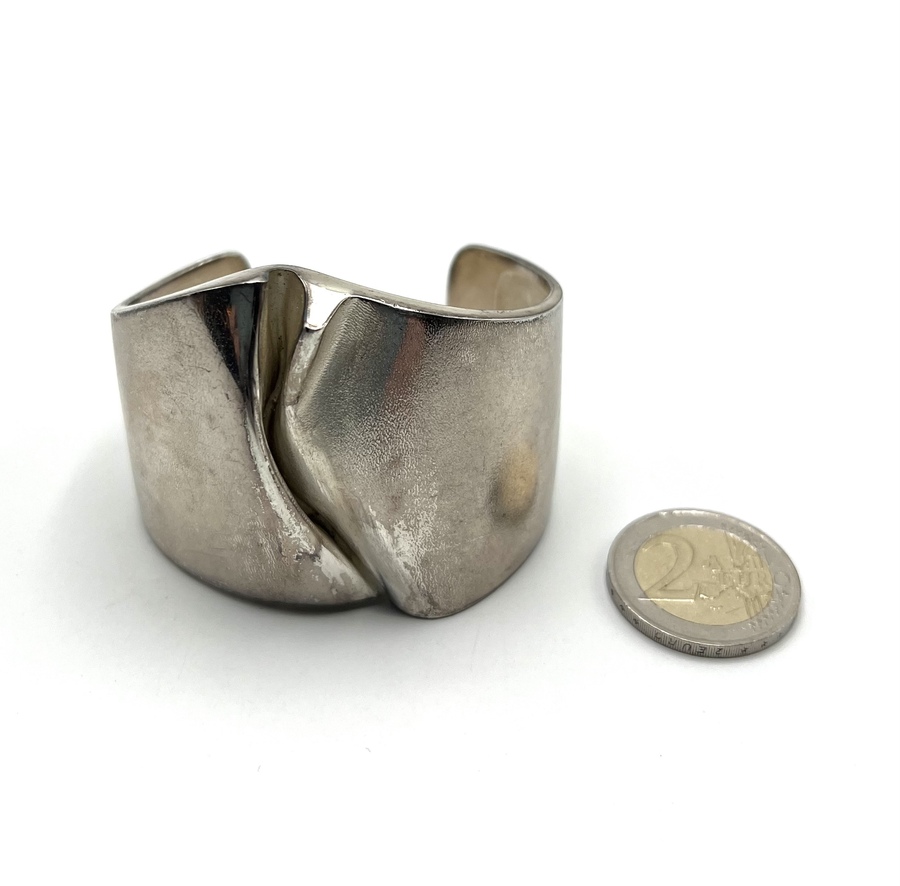Zilveren vintage klemarmband, ontwerp Björn Weckström, model "Ygol", Lapponia Finland, 1973. Gemerkt Sterling Finland, Lapponia Bjorn, jaarletter U7 (1973) en andere merken. |