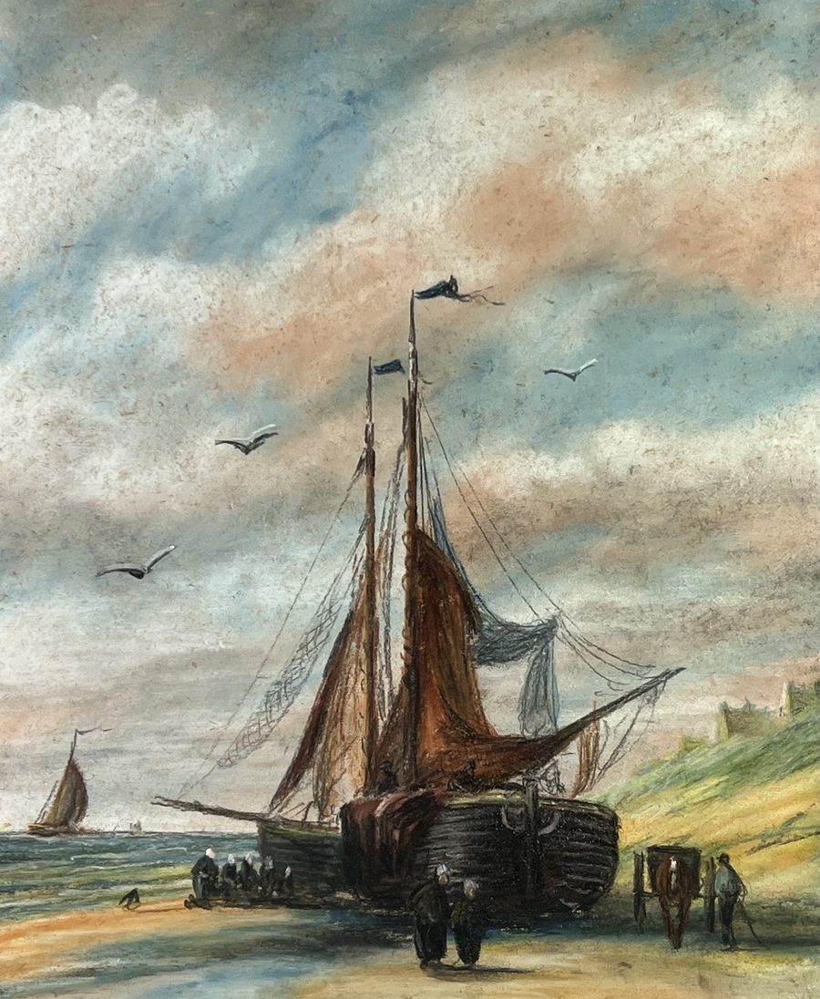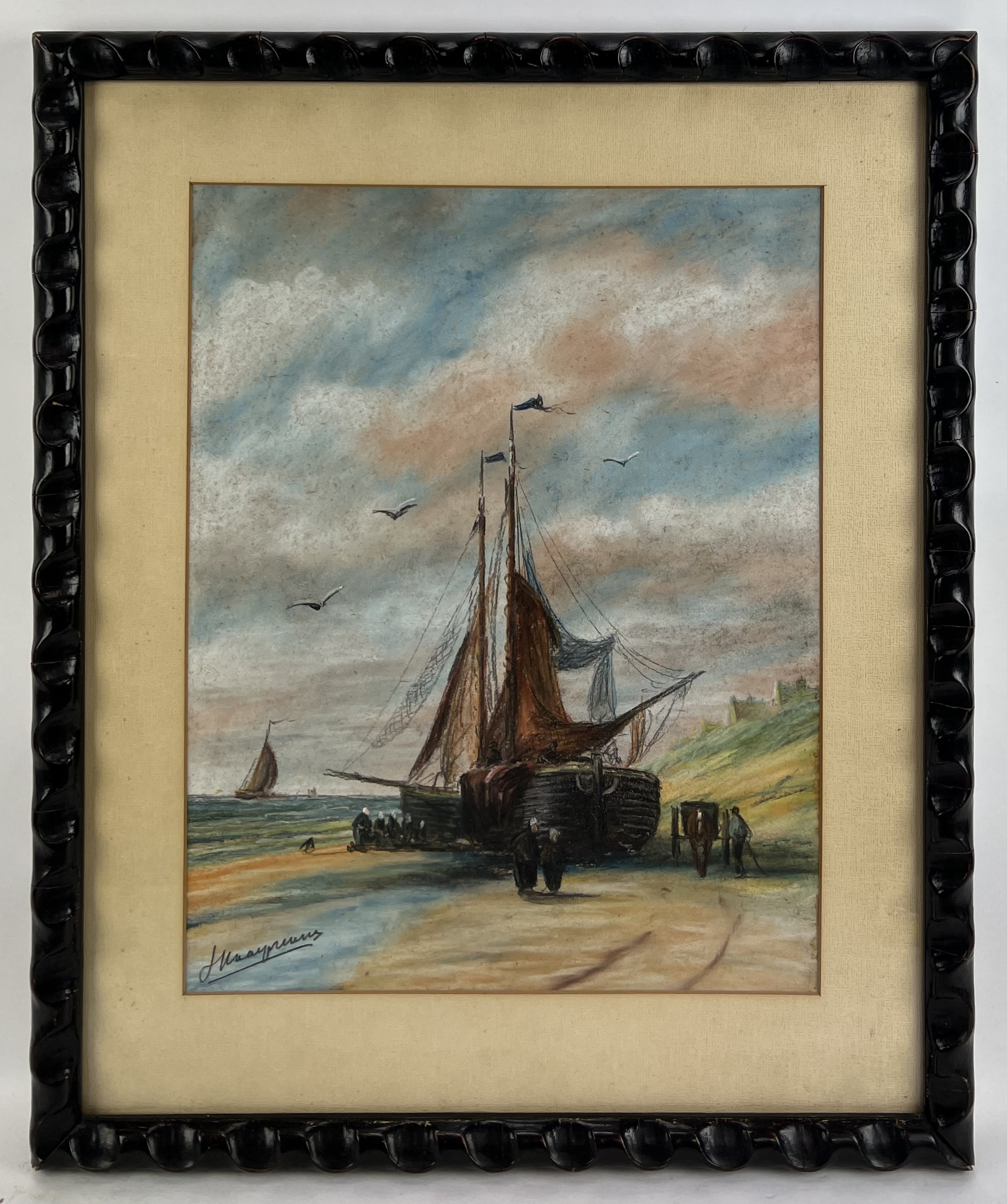Hollandse school pasteltekening op papier. Linksonder onduidelijk gesigneerd, eerste helft 20e eeuw. |