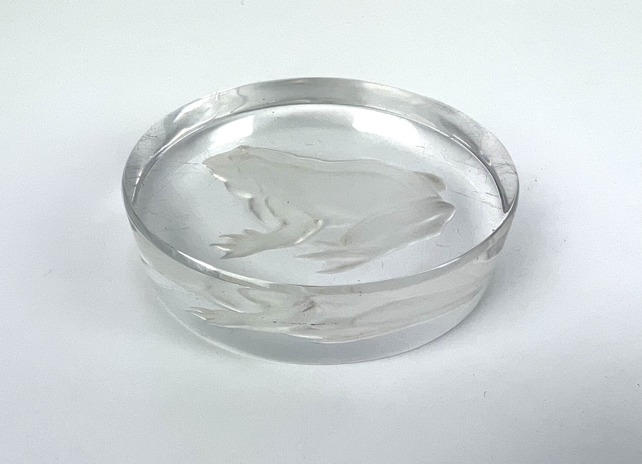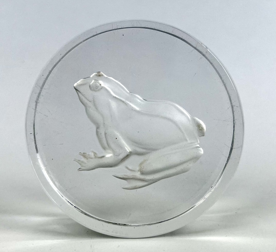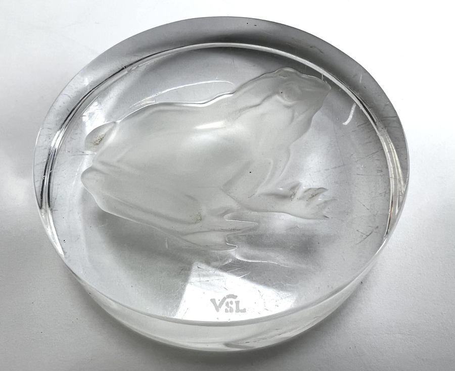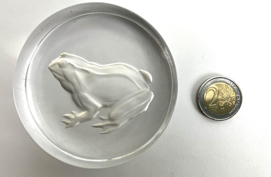 Kristallen presse-papier met kikker van Val Saint Lambert. Seraing, België. Jaren 80. |