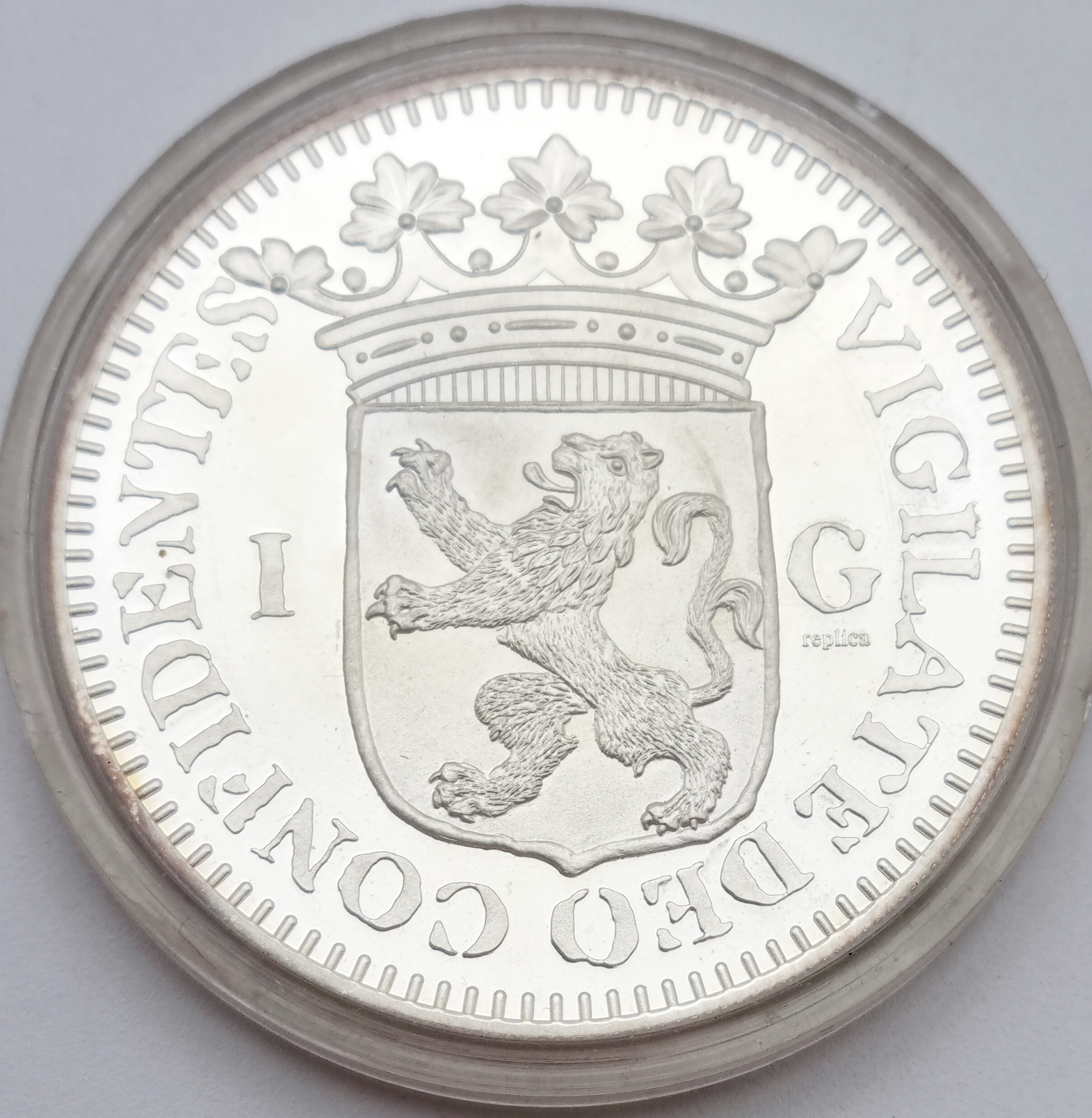 | Conditie | Replica in goede staat, rijksdaalders in fraaie staat. | |