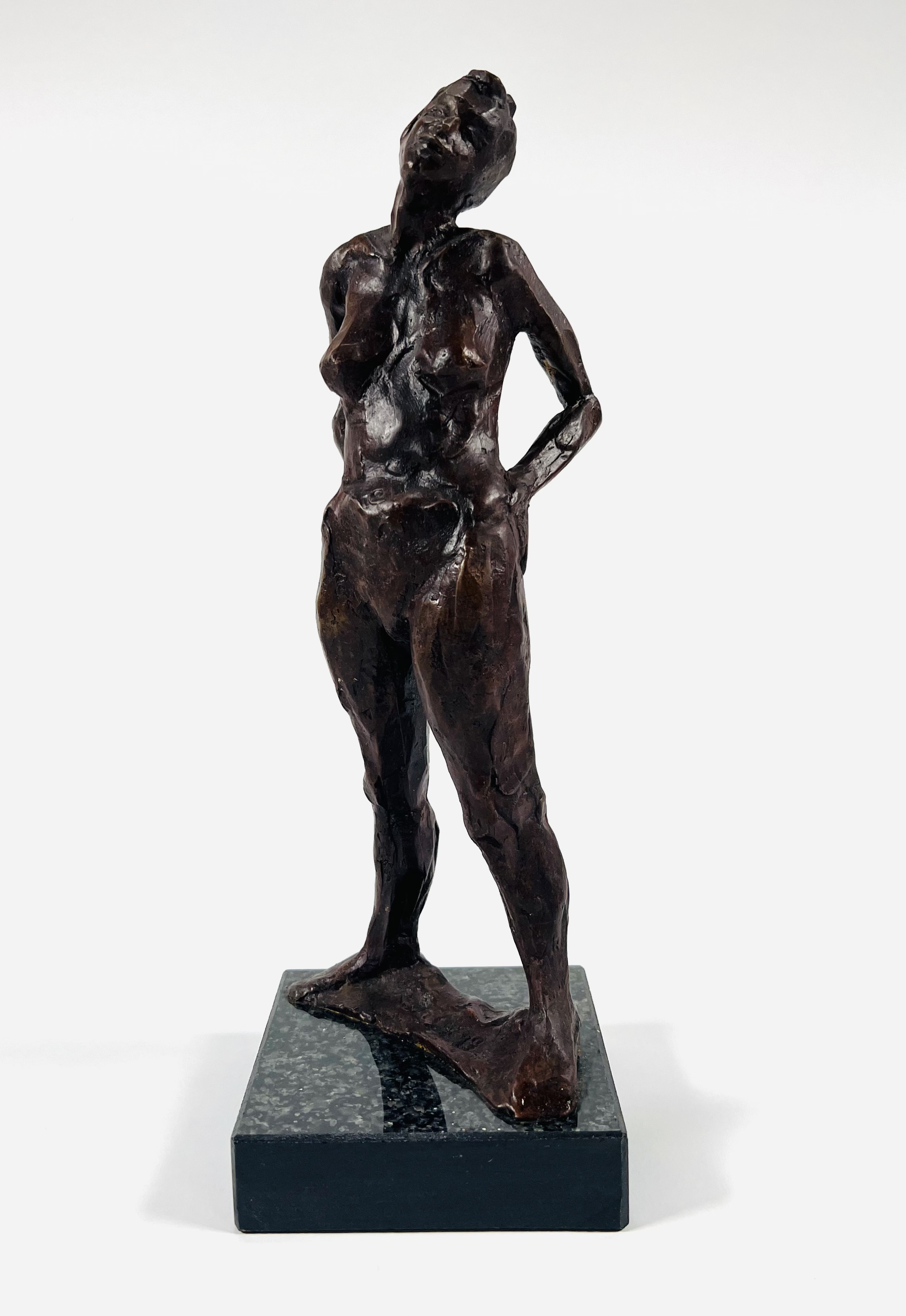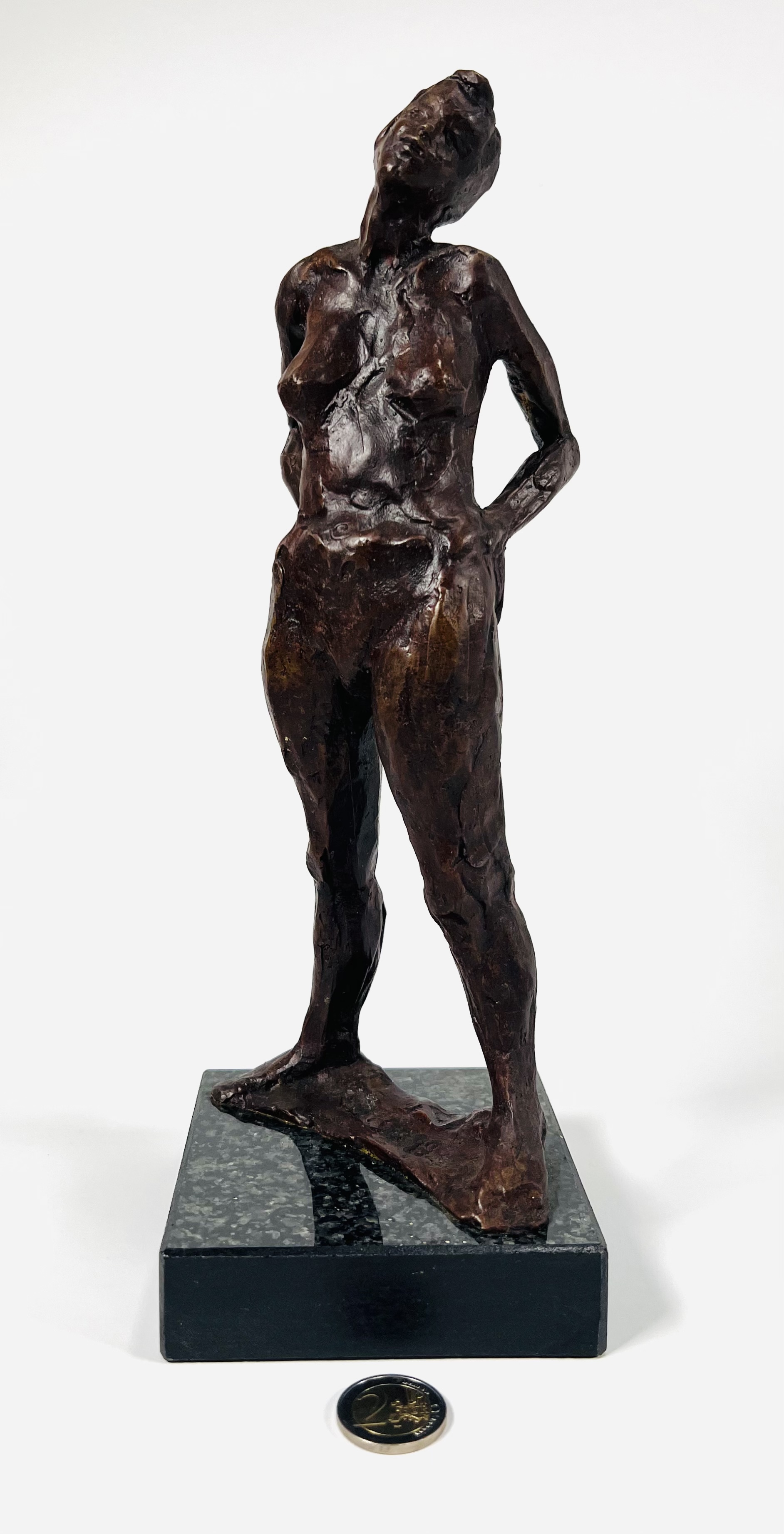 Bronzen vrouwelijk naakt op granieten basement, Berend Seiger (1944). Gesigneerd en gedateerd 1999 in het brons. |