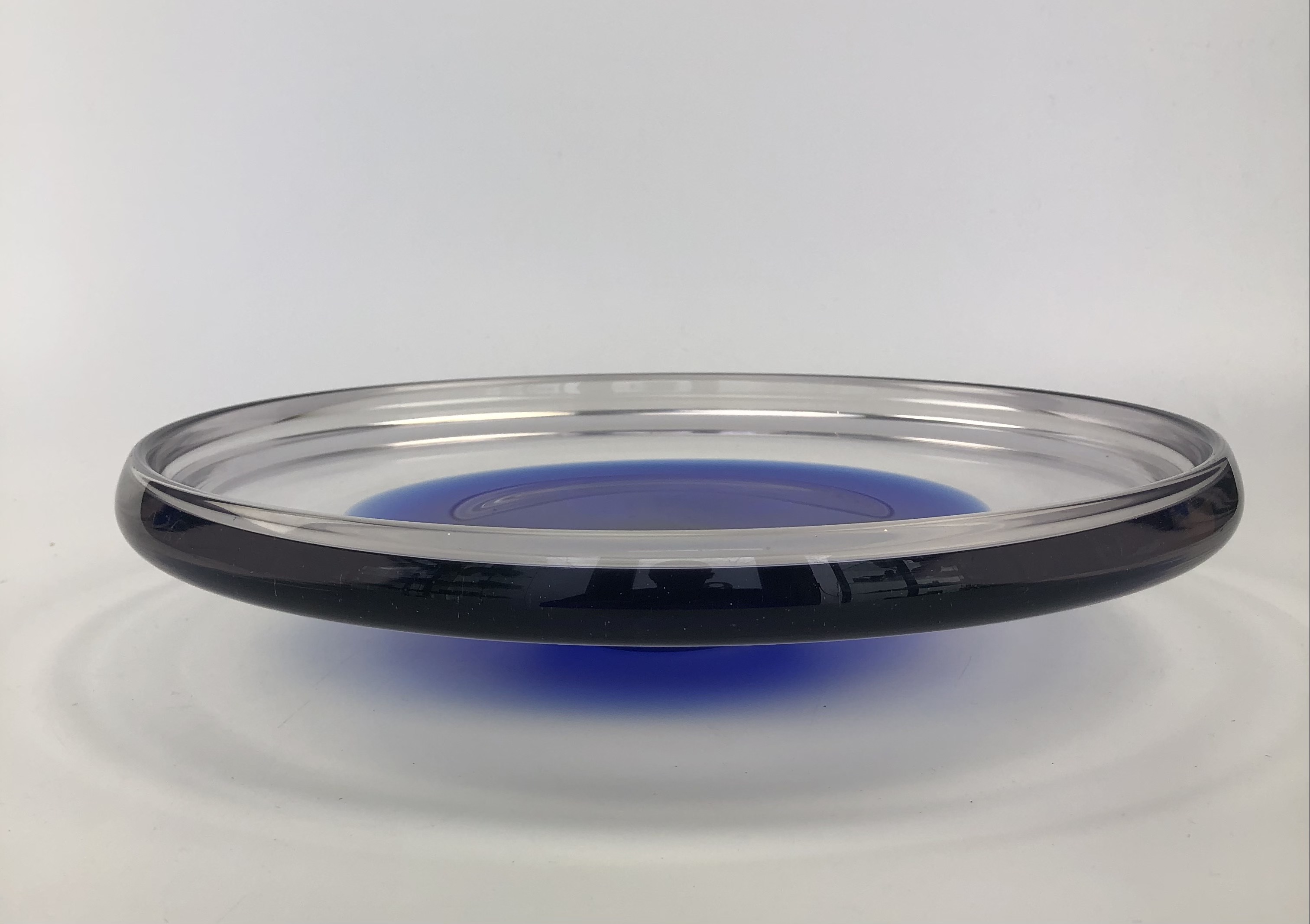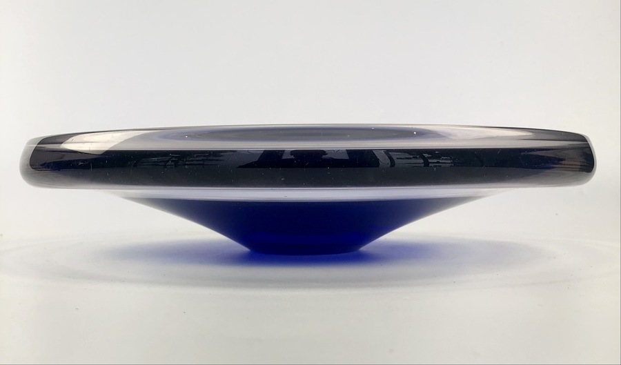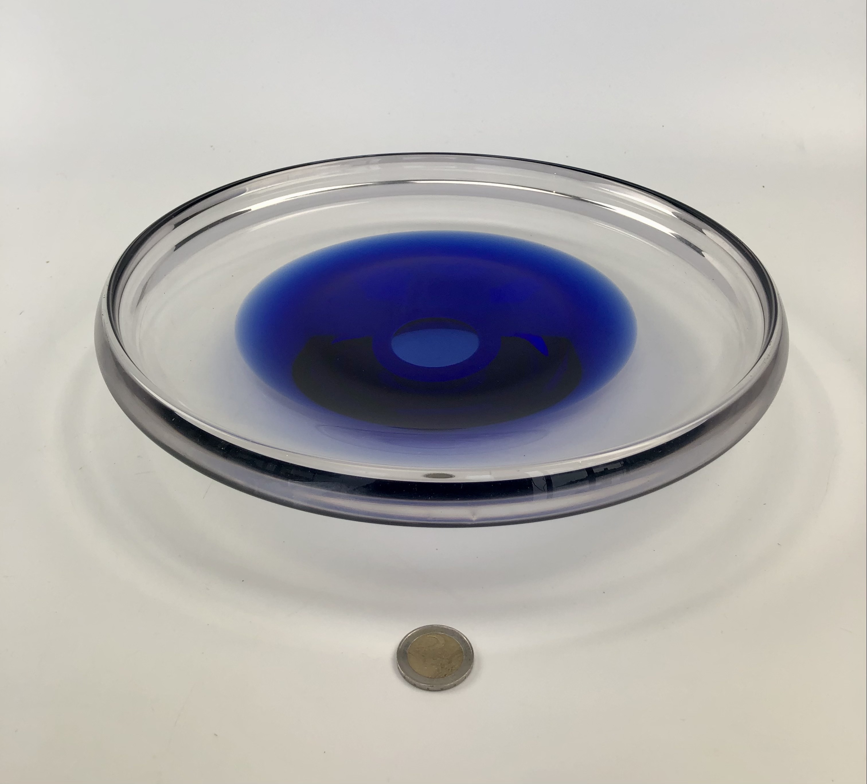 Kristallen schaal van de Kristalunie Maastricht, Max Verboeket uit de serie Symfonia gesigneerd aan de onderzijde, jaren 60. |