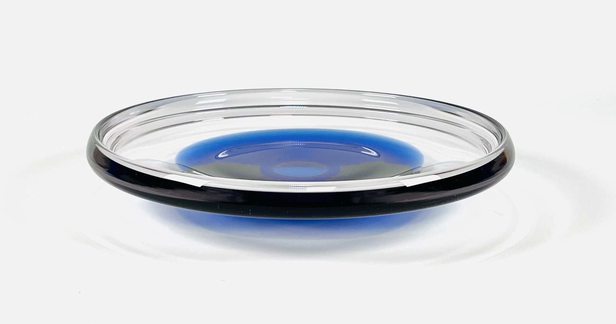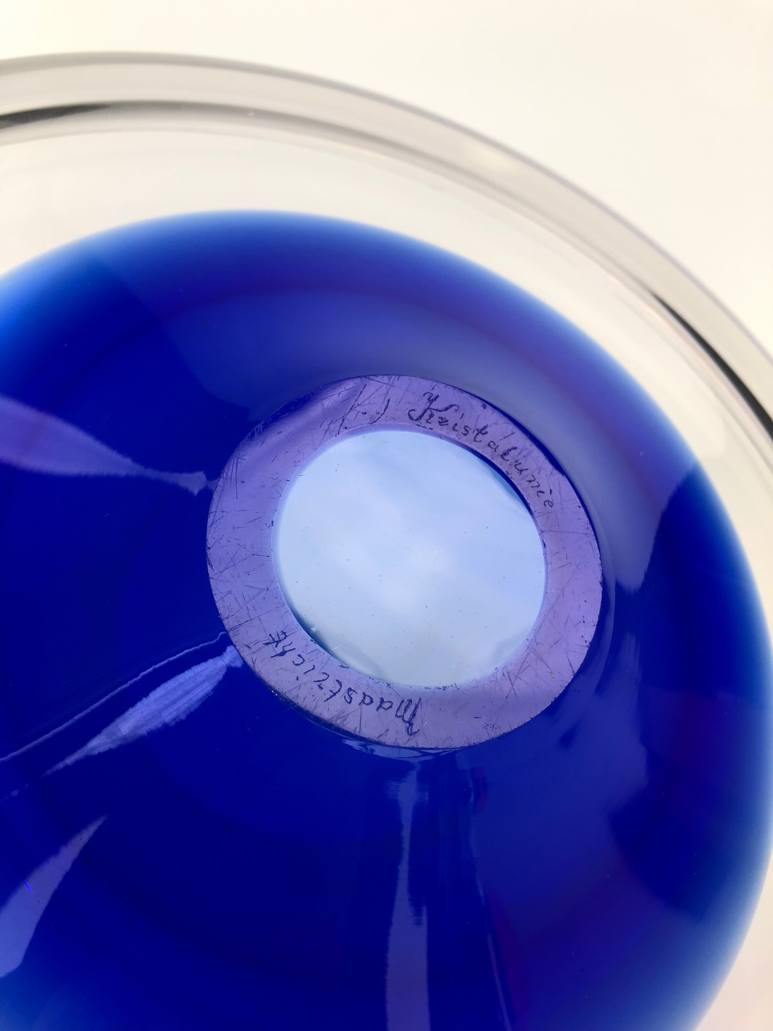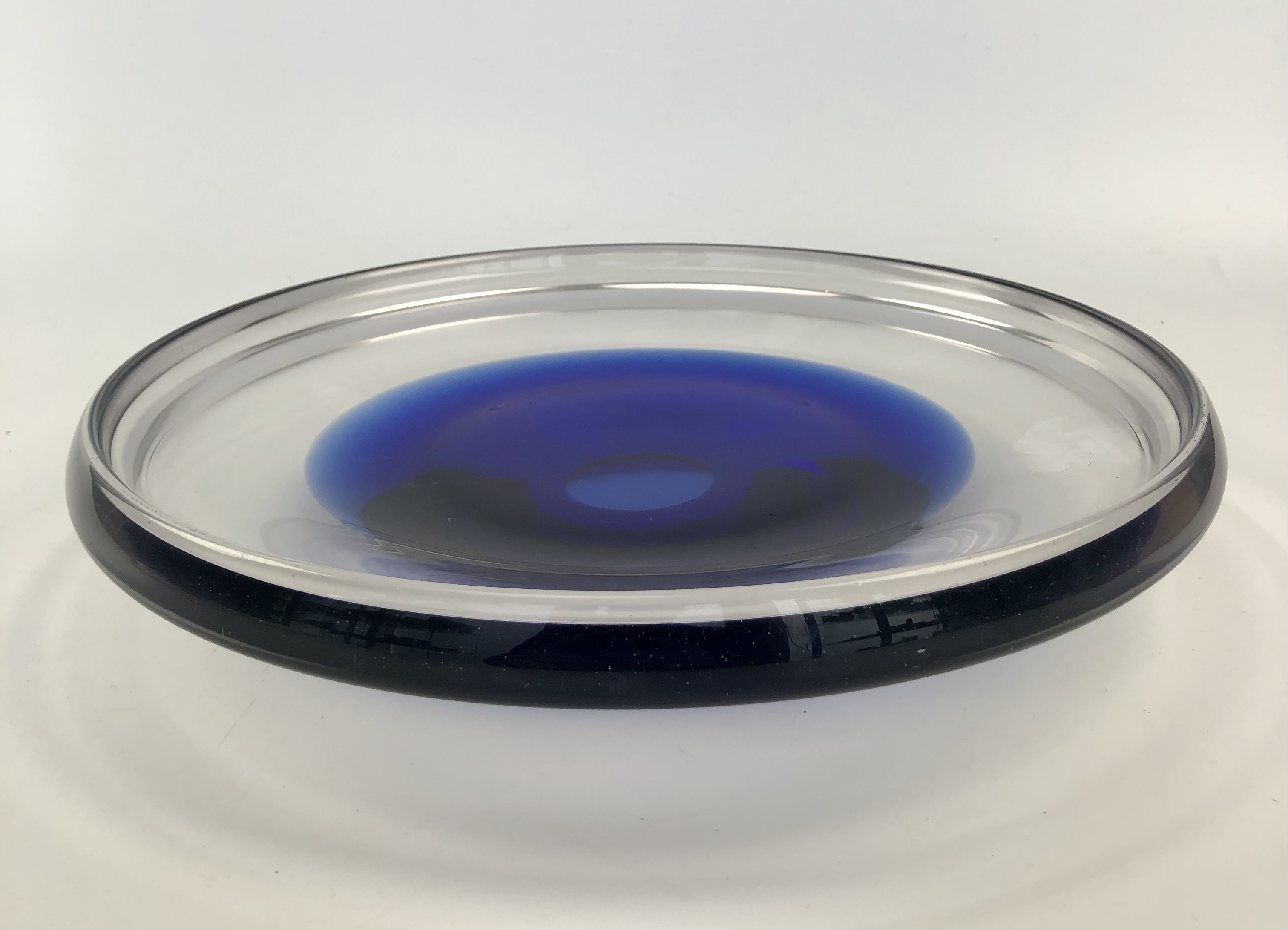 Kristallen schaal van de Kristalunie Maastricht, Max Verboeket uit de serie Symfonia gesigneerd aan de onderzijde, jaren 60. |