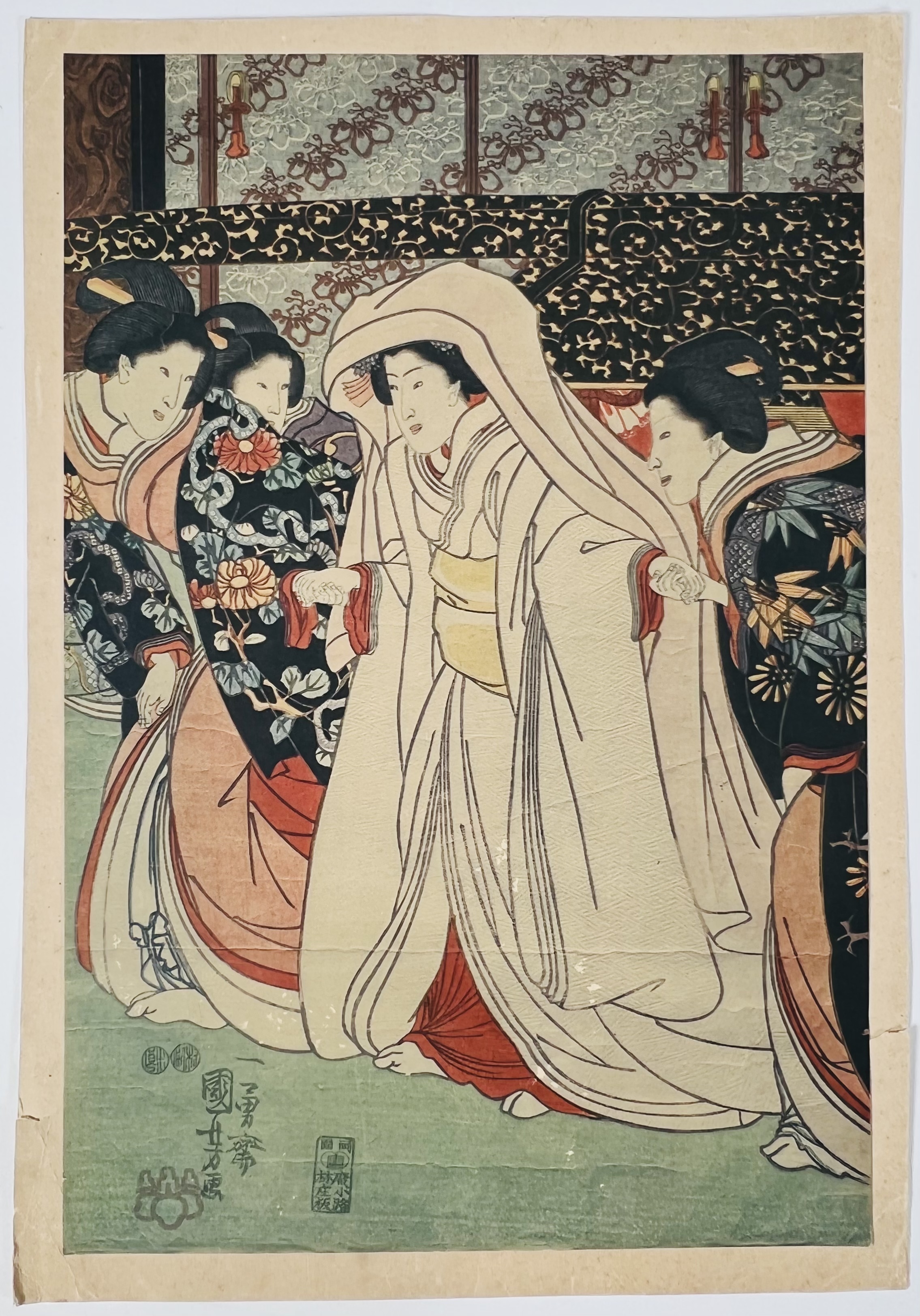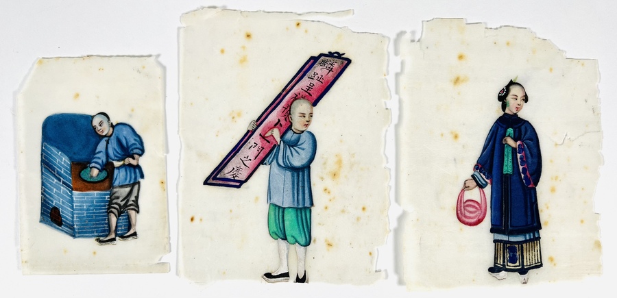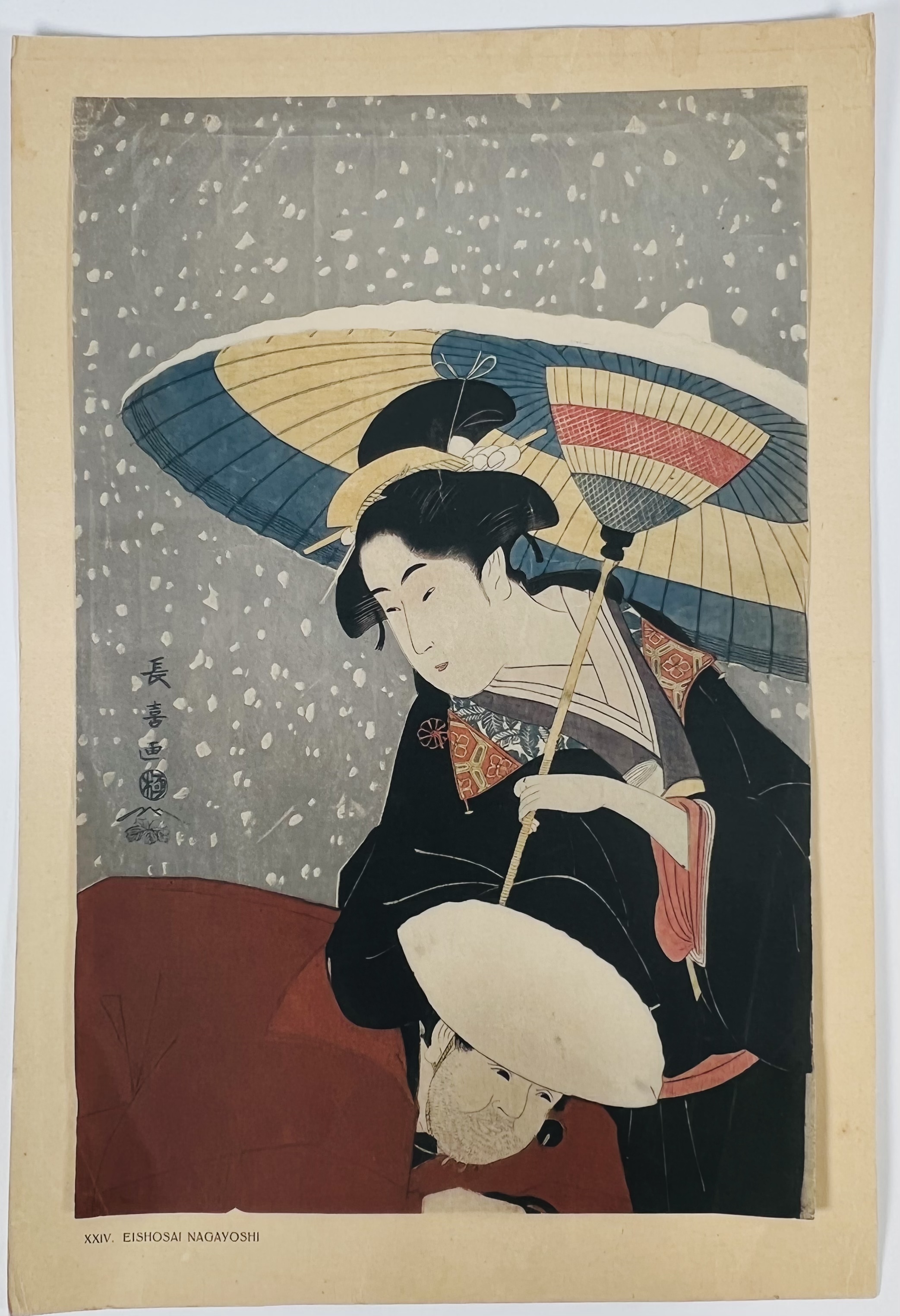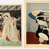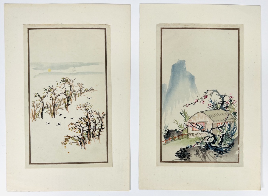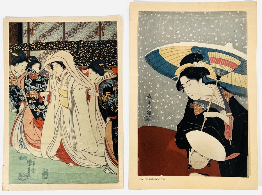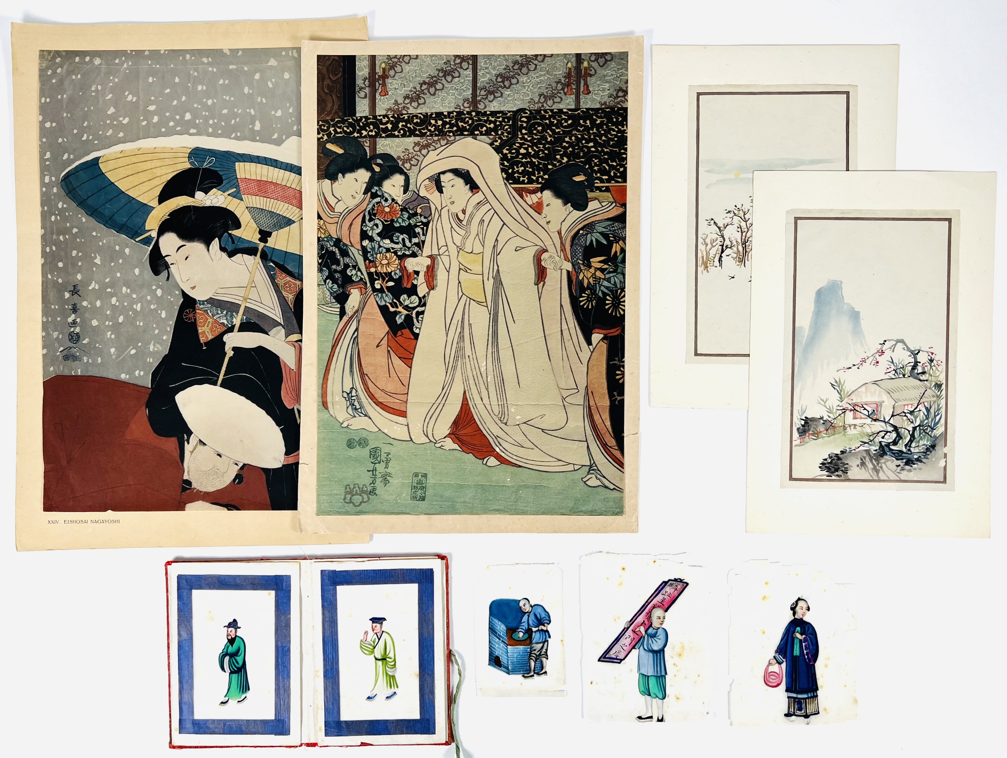Negen prenten waaronder twee lithografieën gebaseerd op Japanse houtsneden, vijf geschilderde beeltenissen van personen en twee landschappelijke Aziatische prenten. Eerste helft 20e eeuw. |