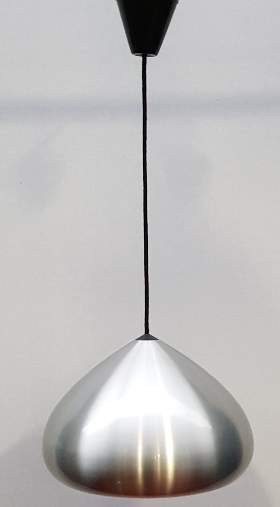 Geborstelde roestvrijstalen Scandinavische design hanglamp, Fabrikant Fog Mørop. Made in Denmark, jaren 70. |