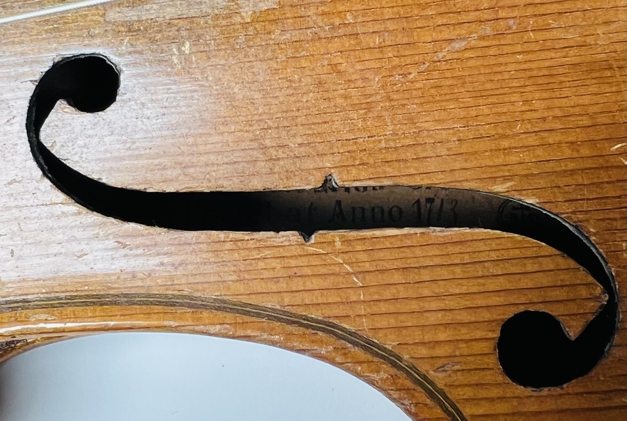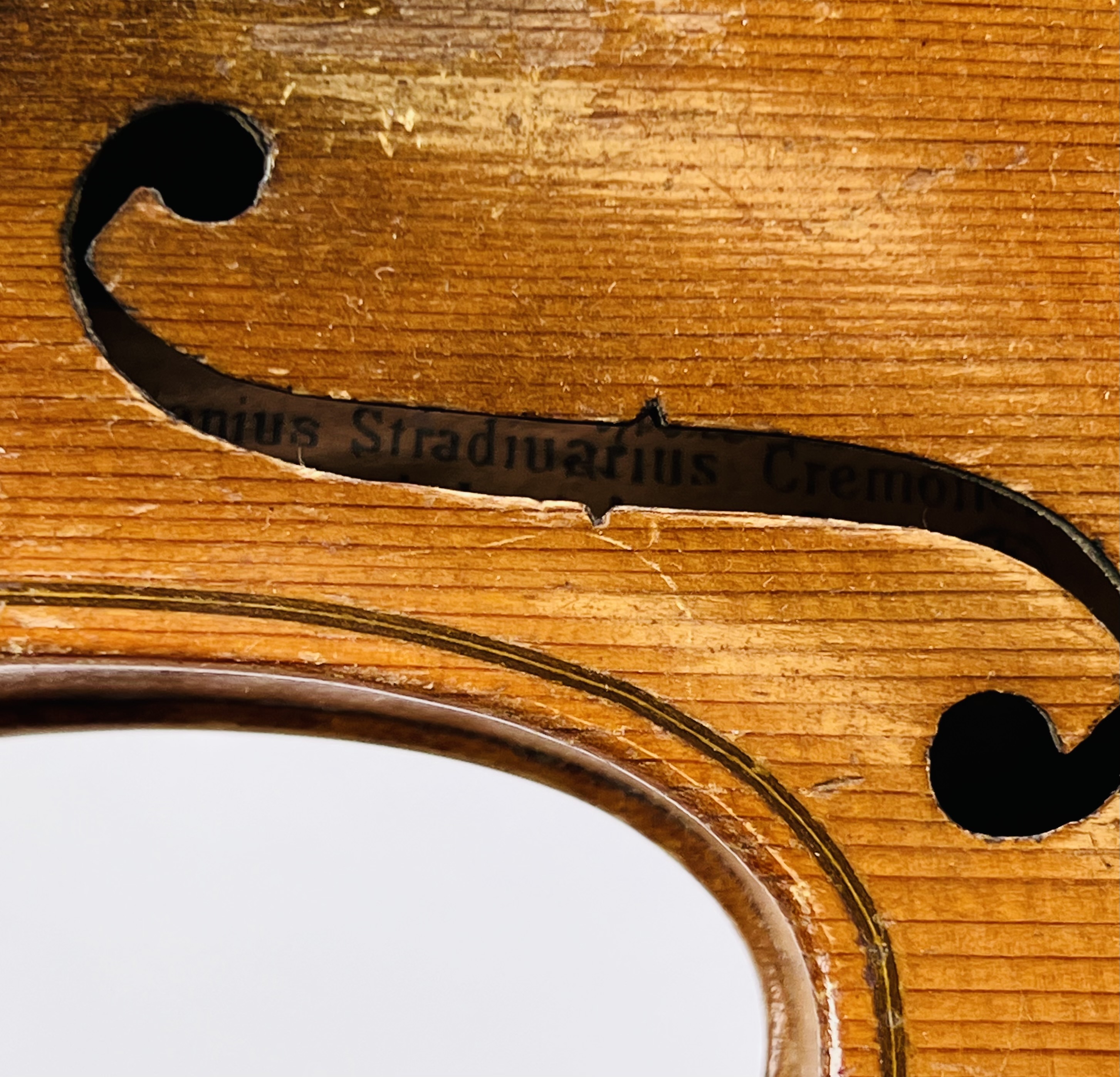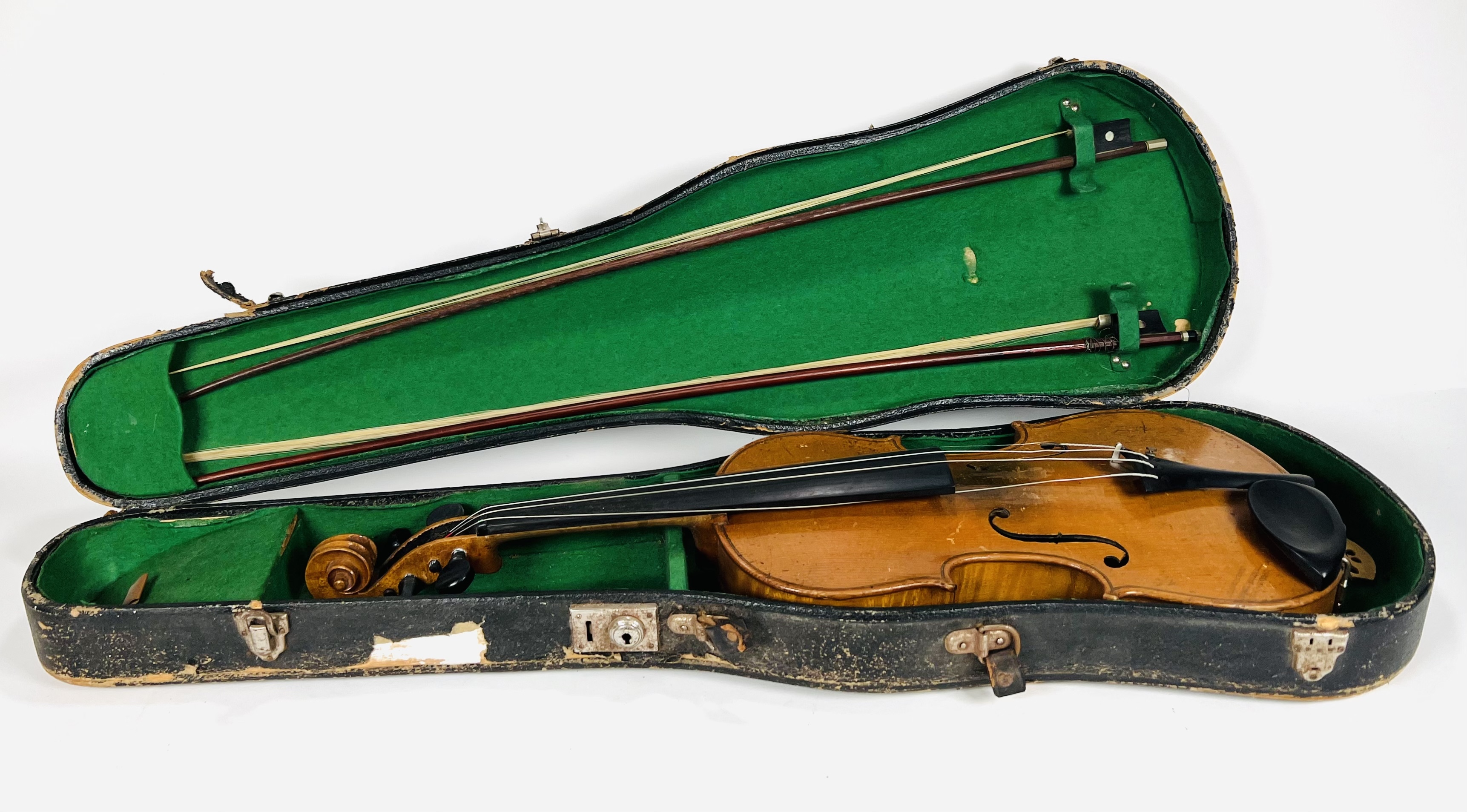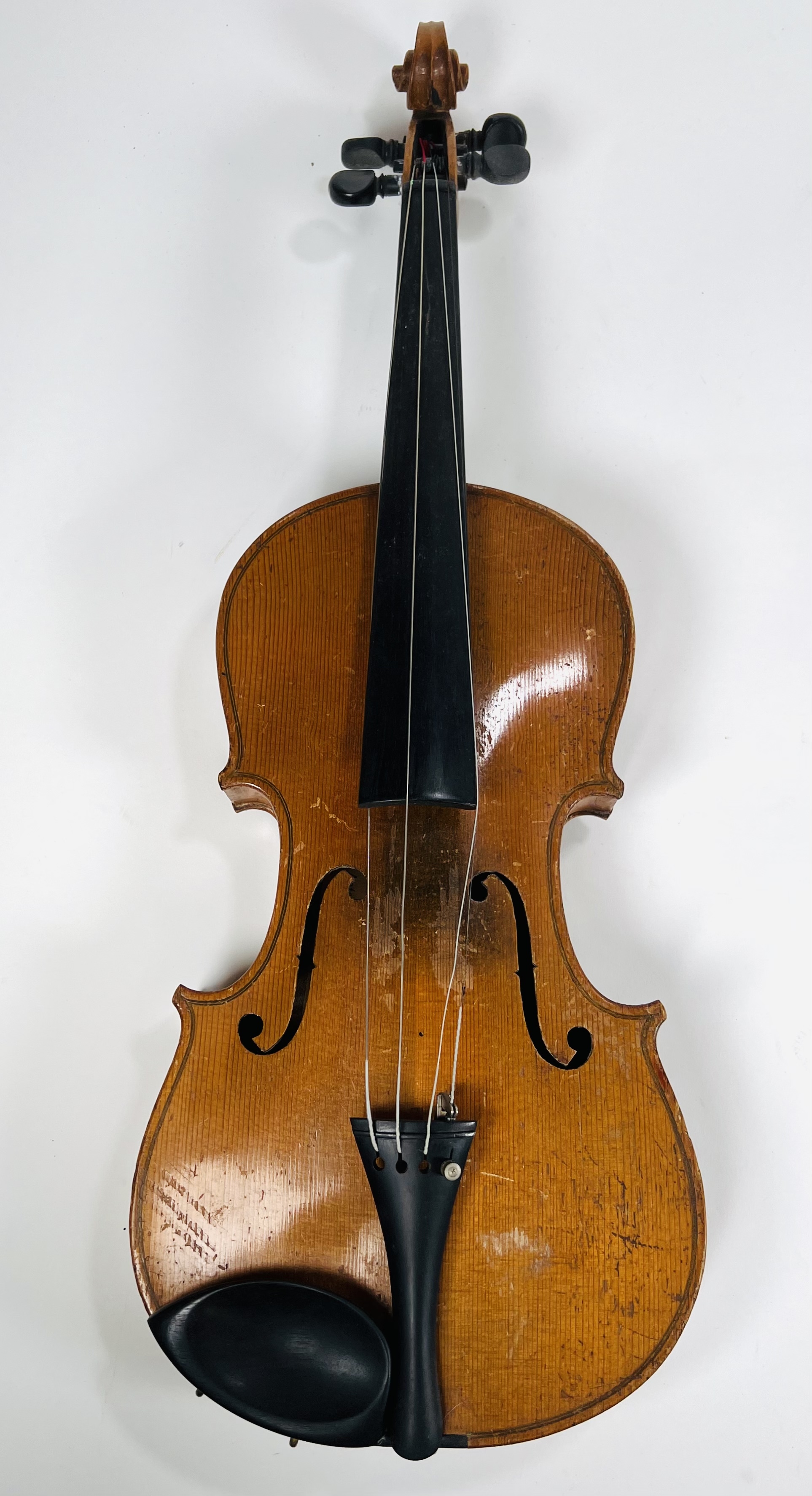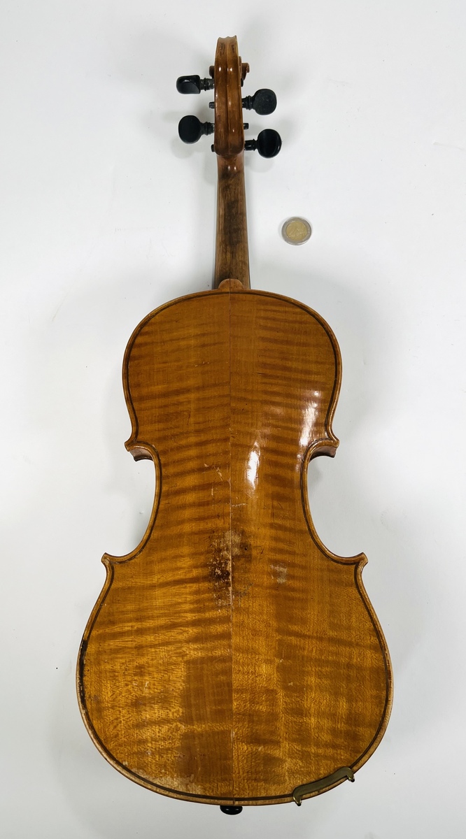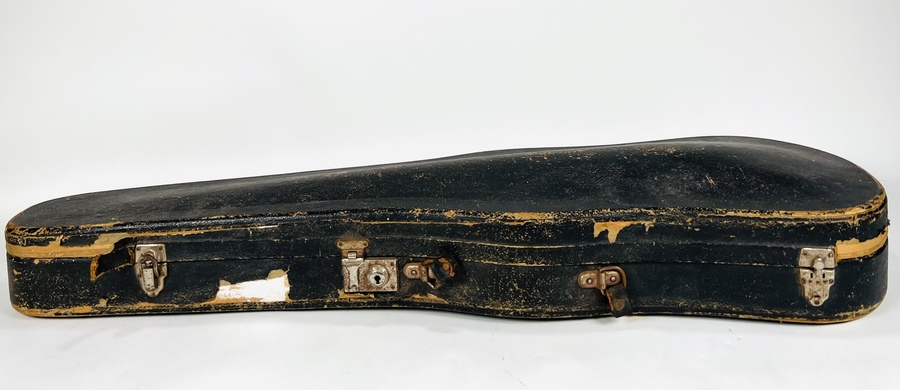 Viool met twee strijkstokken in vioolkist, 20e eeuw. |