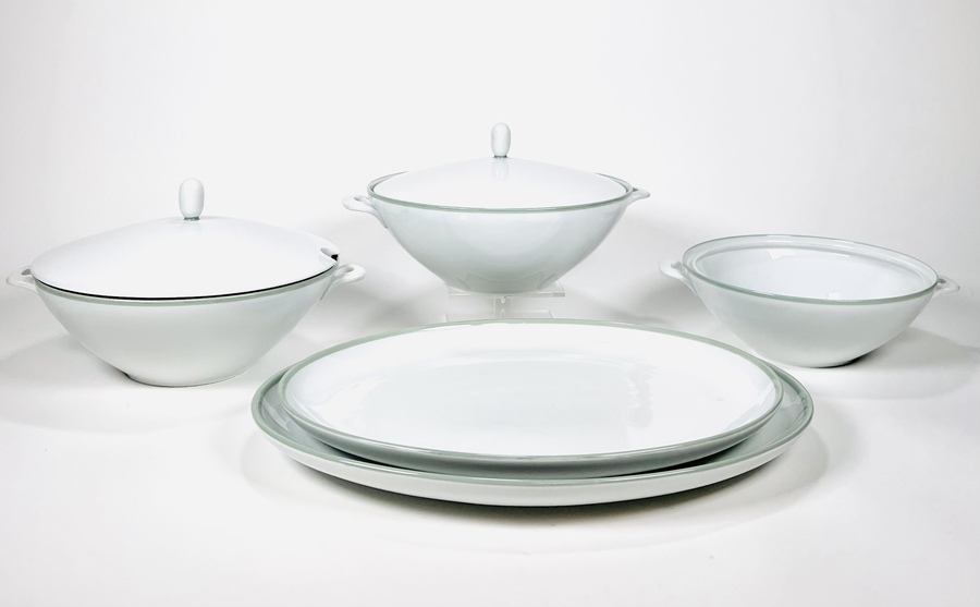 Drie porseleinen dekschalen en twee serveerborden van Fürstenberg Germany. Duitsland, jaren 50/60. |