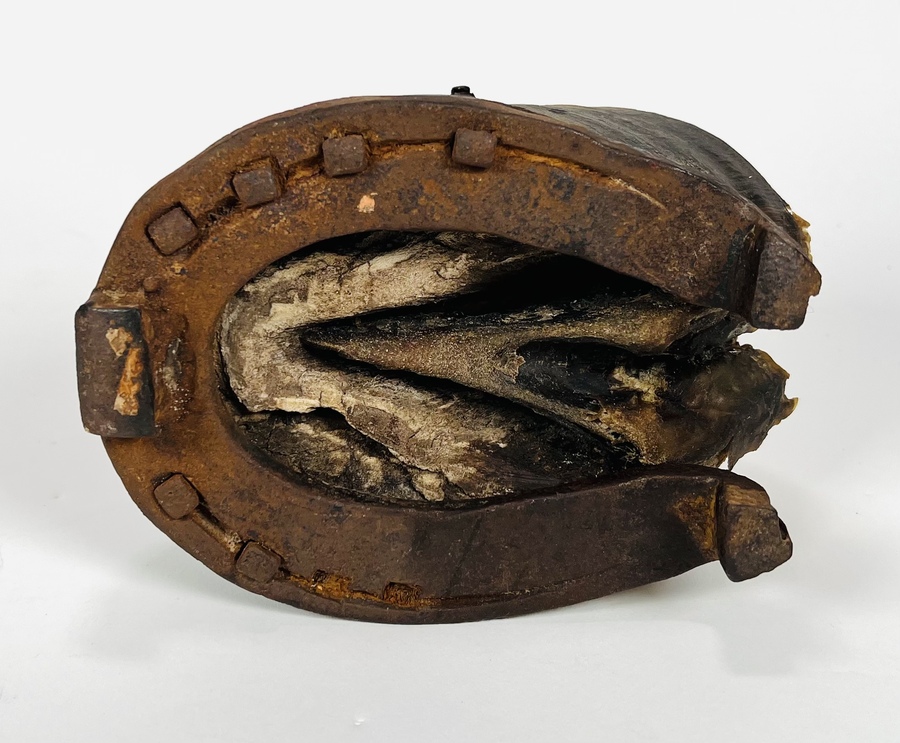 Paardenhoef met ijzeren hoefijzer, 20e eeuw. |