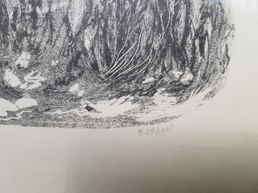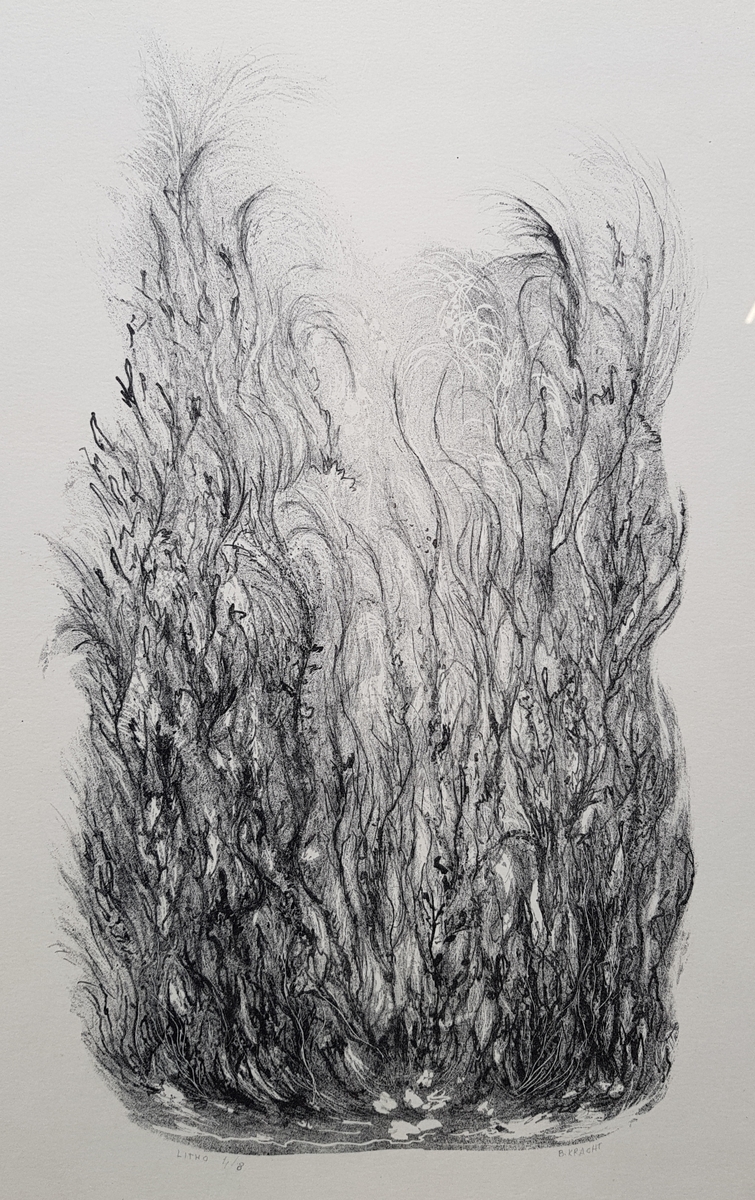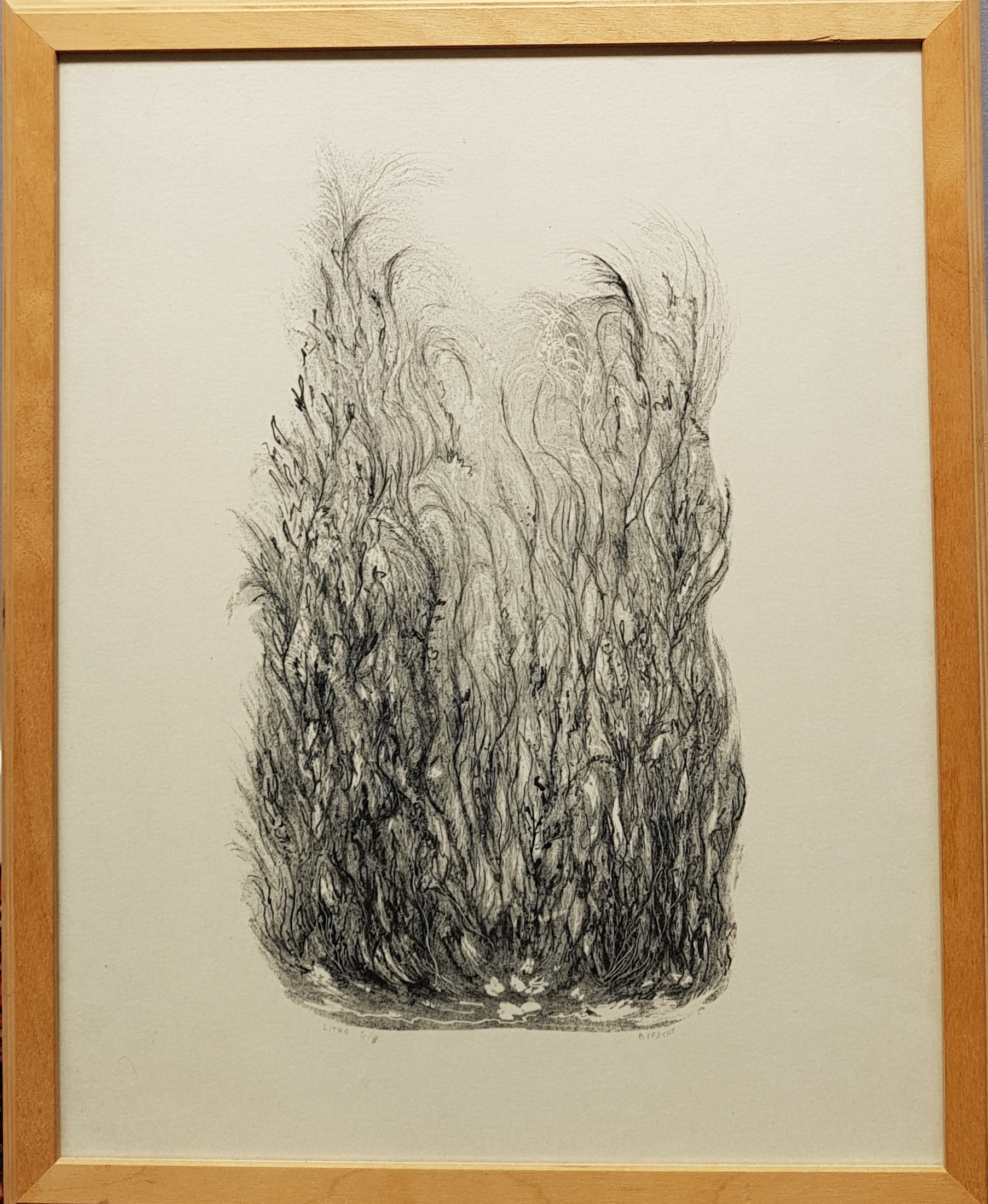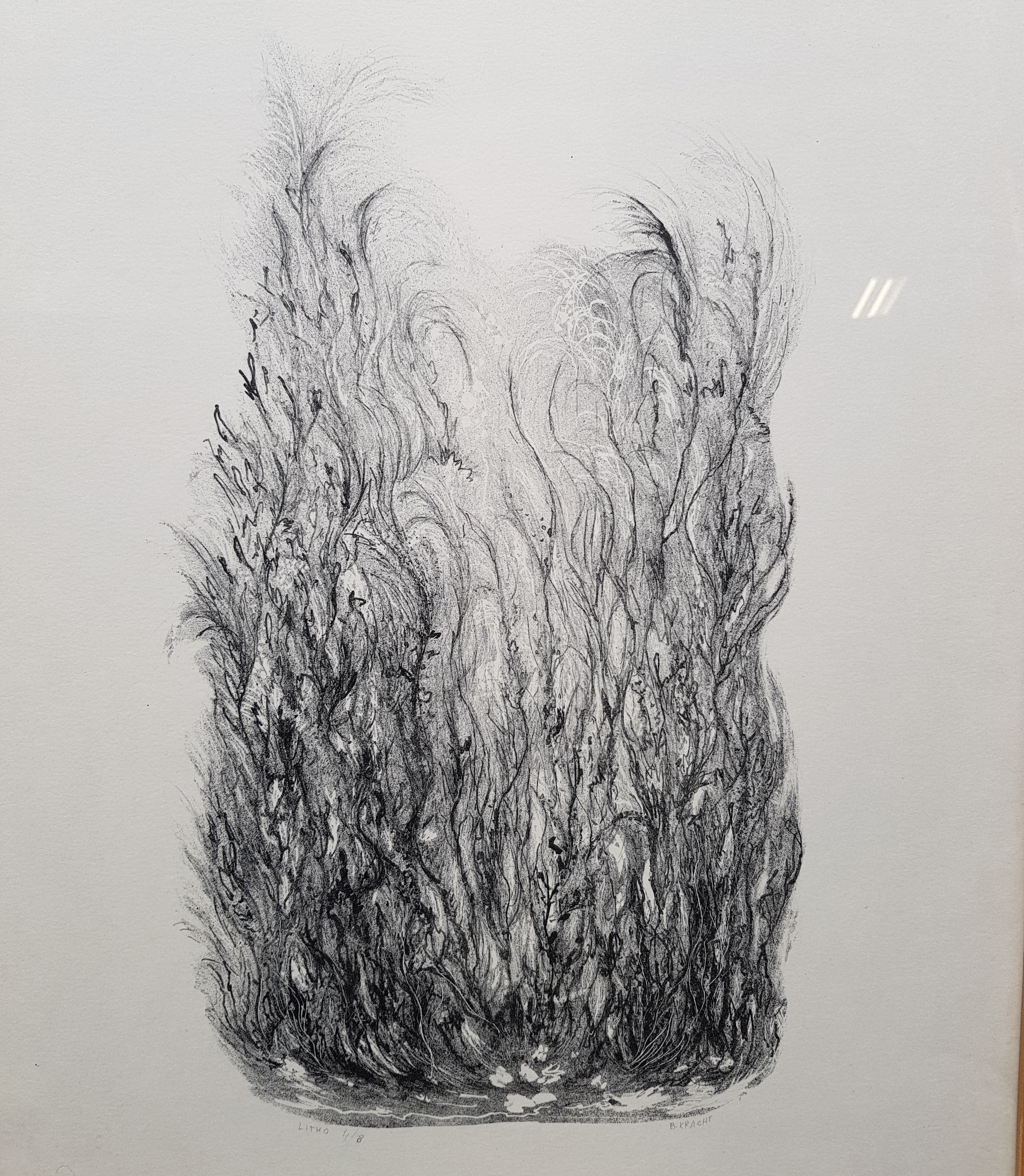 Lithografie met botanische voorstelling door Bé Kracht (Garnwerd, 1933). Rechtsonder gesigneerd en oplagenummer 4/8. Vierde kwart 20e eeuw. |