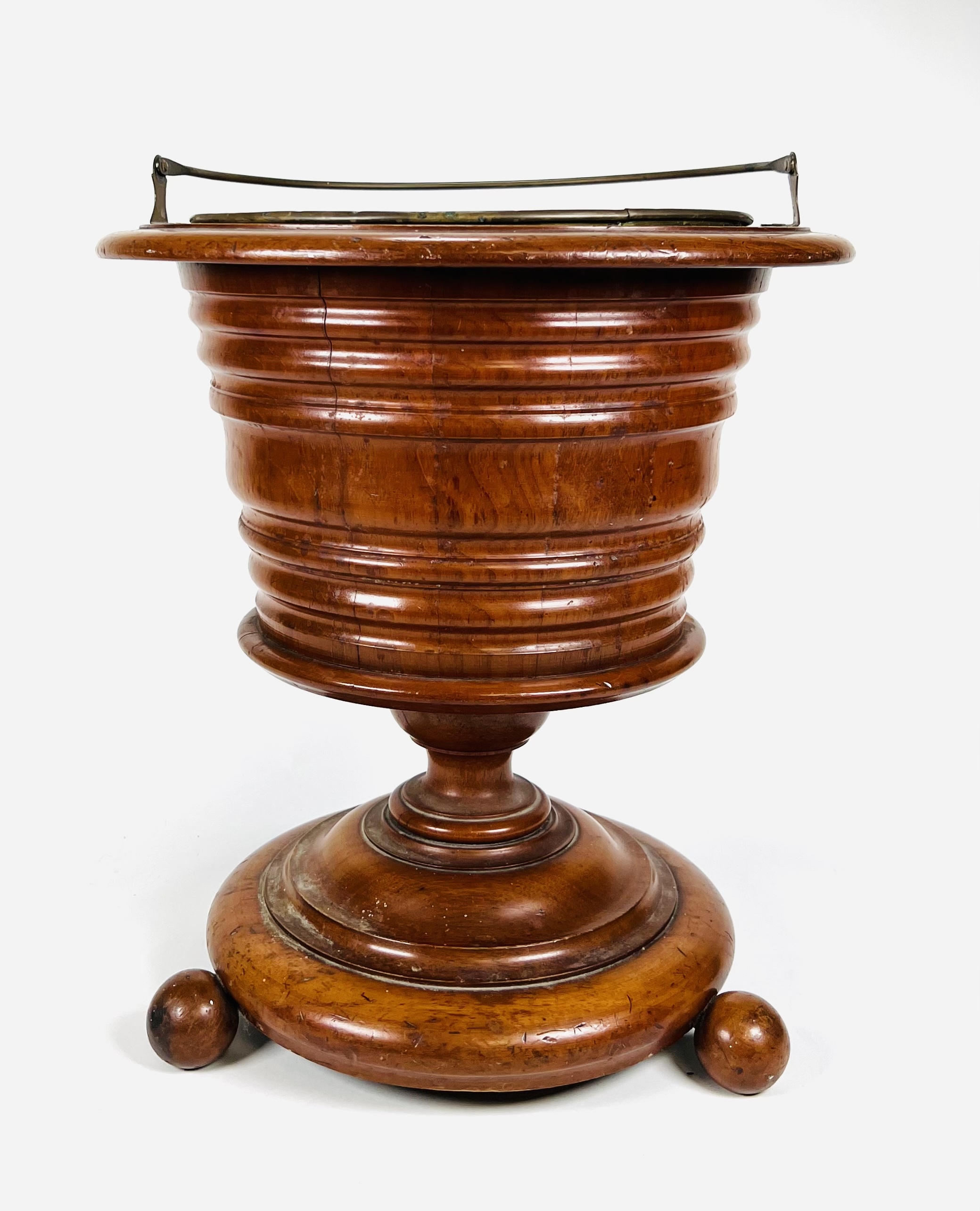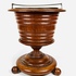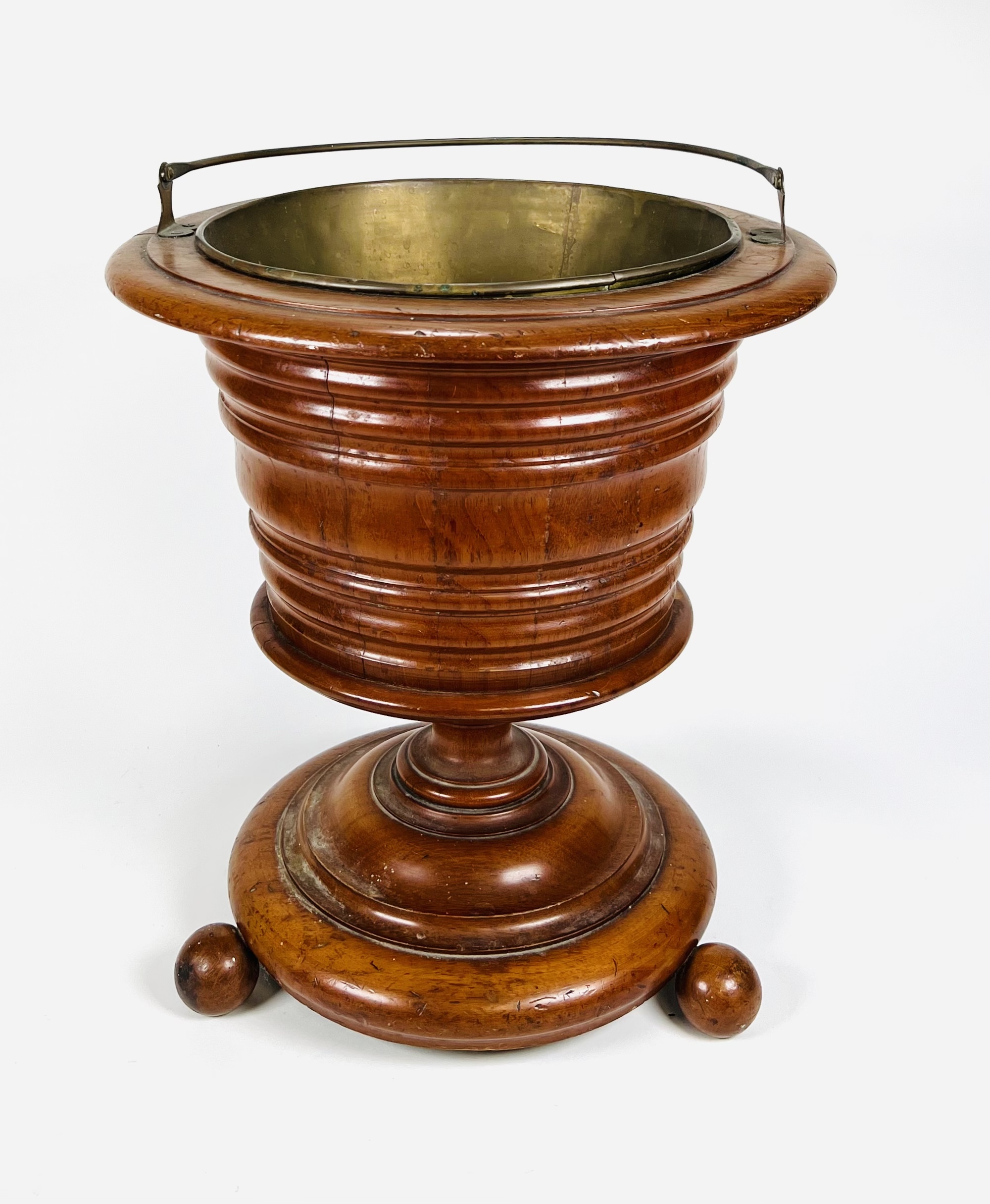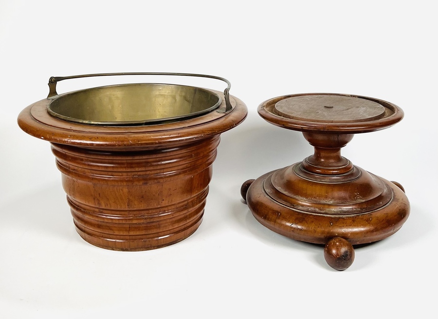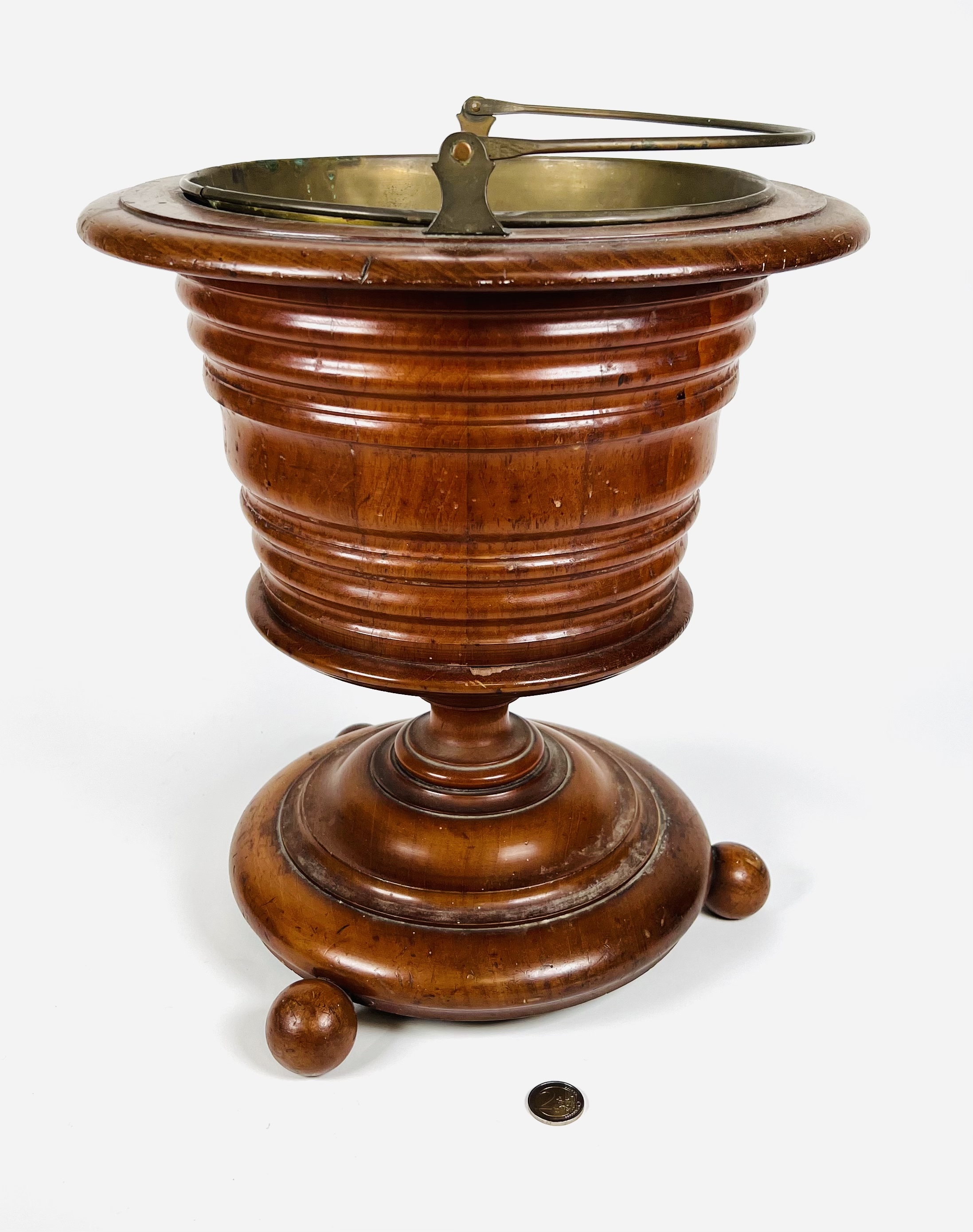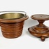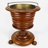 Houten theestoof met messing binnenbak staande op drie bollen. Eerste helft 20ste eeuw. |