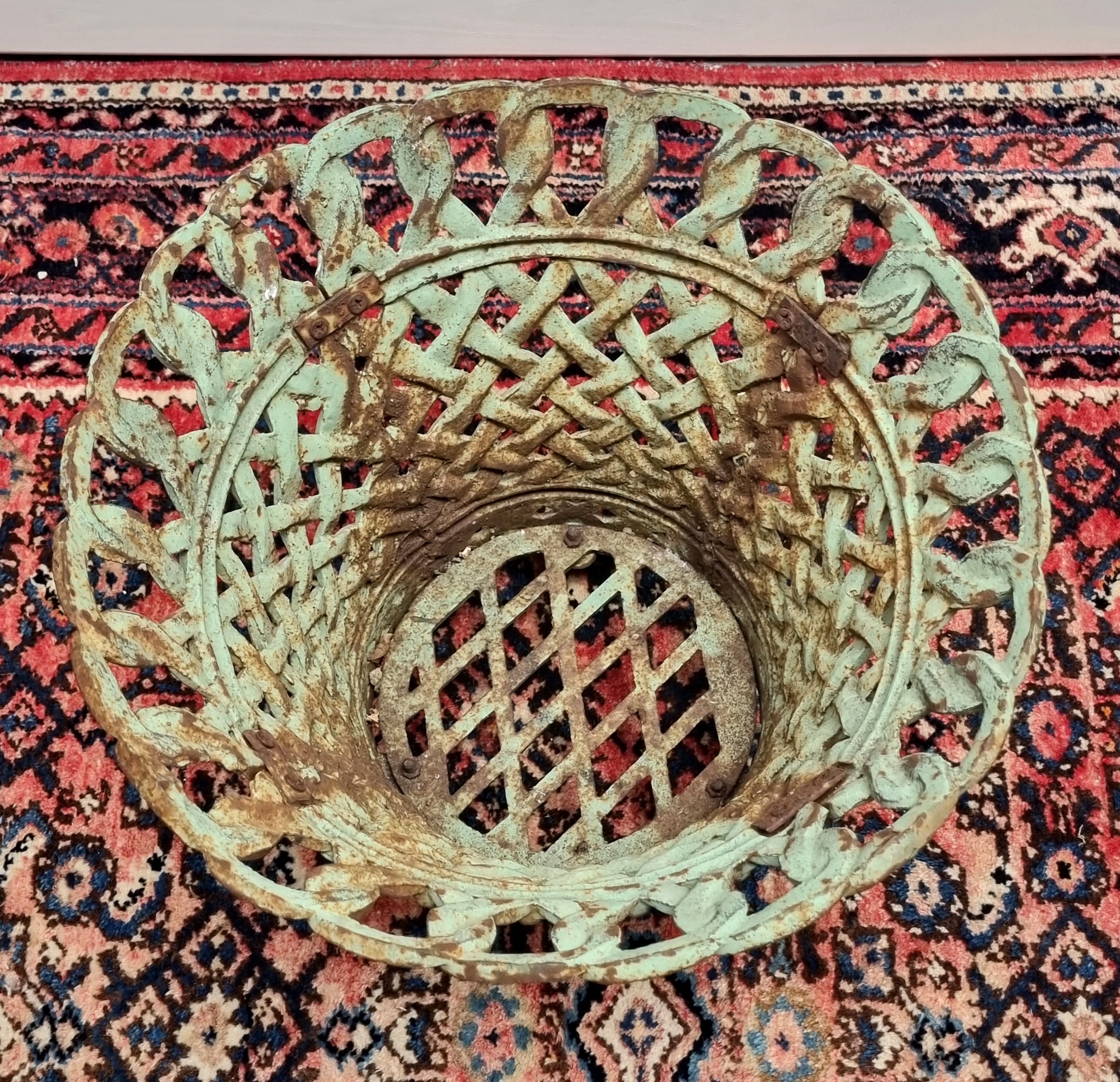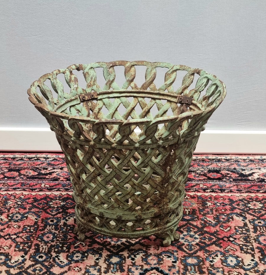 Gietijzeren jardinière met gevlochten patroon, 20e eeuw. |