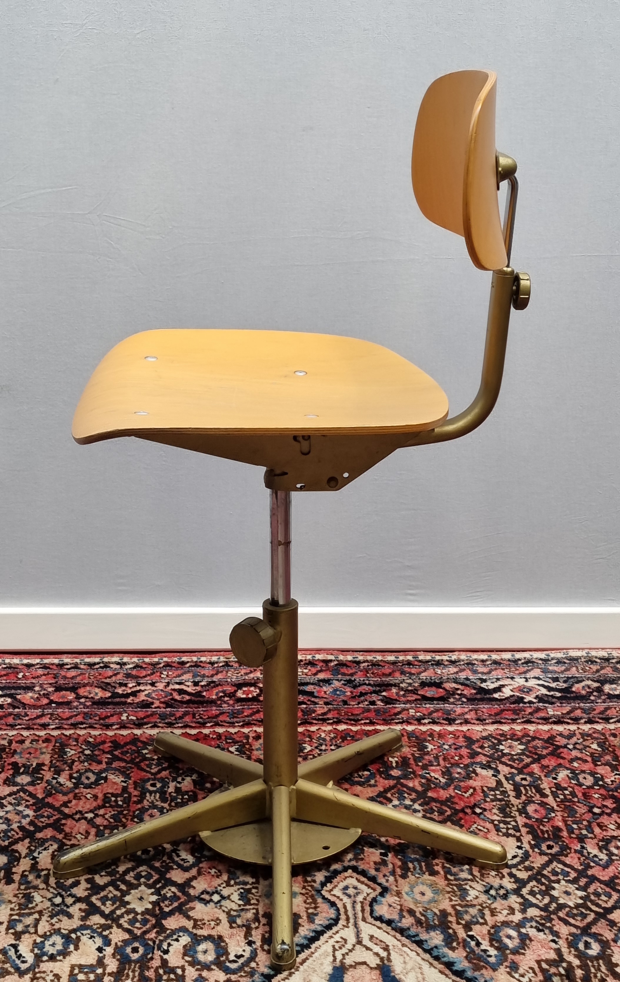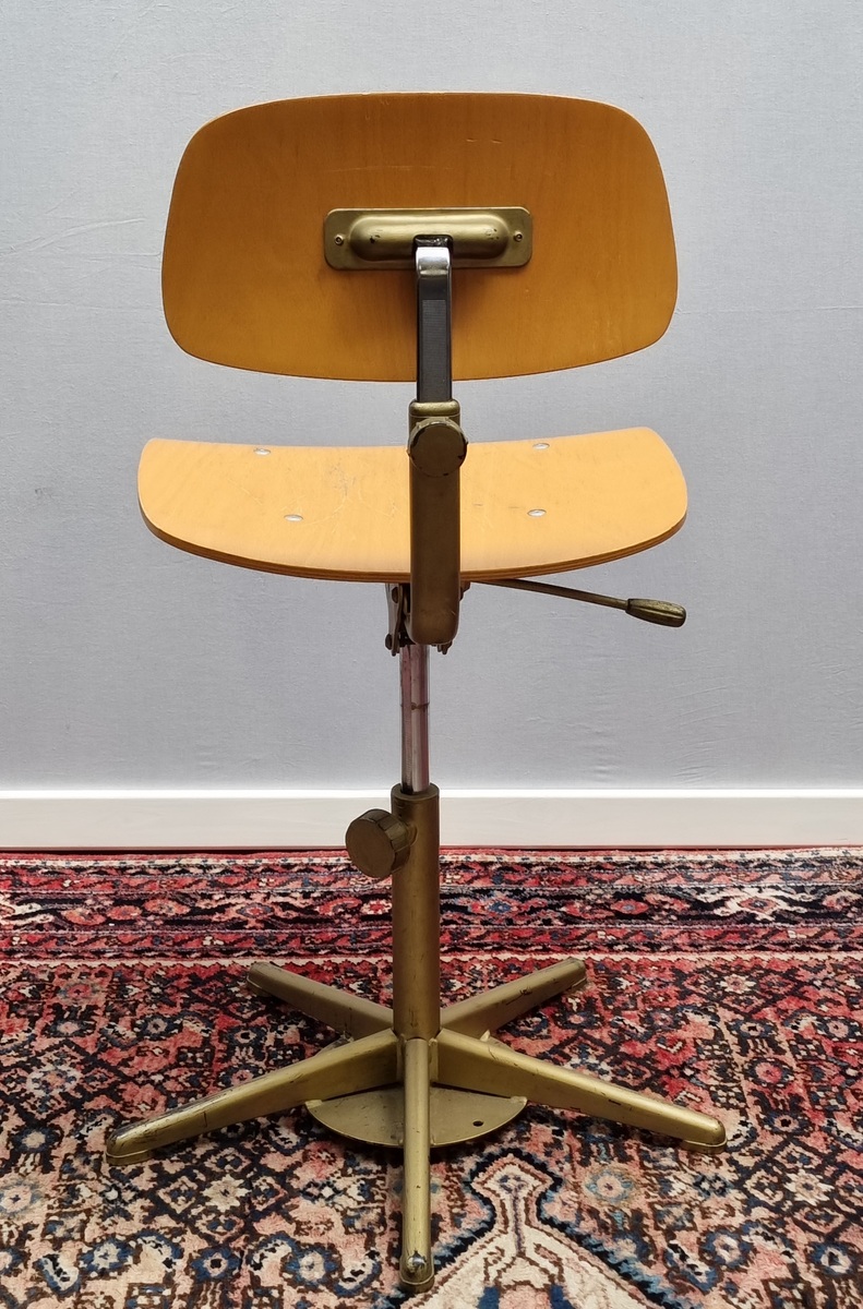 Ahrend bureaustoel met houten zitting en rugsteun, in hoogte verstelbare. Jaar van fabricage 1992. |