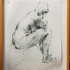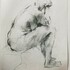 Houtskooltekening van een zittende vrouw op de rug gezien door Karel Buskes (Groningen, 1962). Rechtsonder gesigneerd en gedateerd 1995. |
