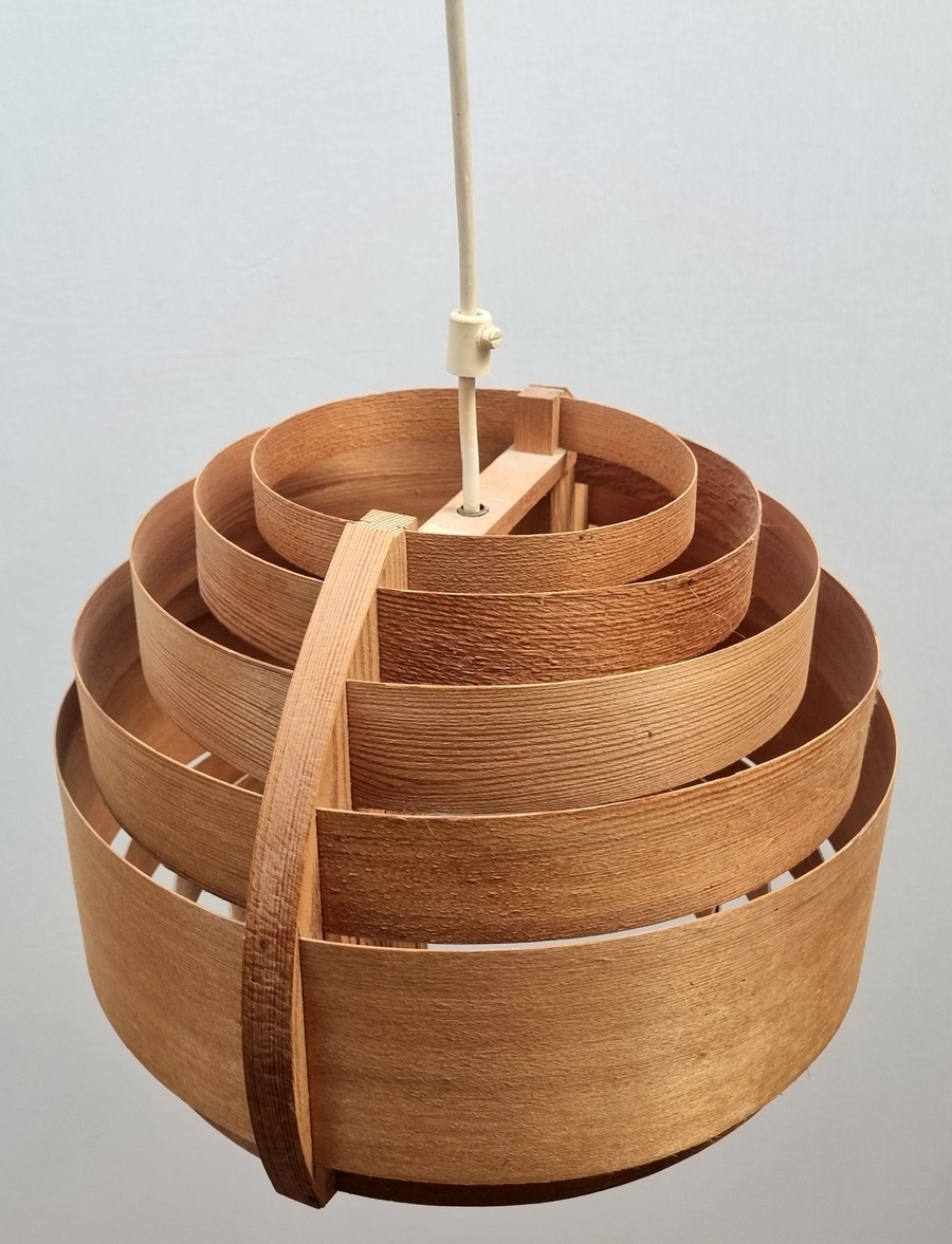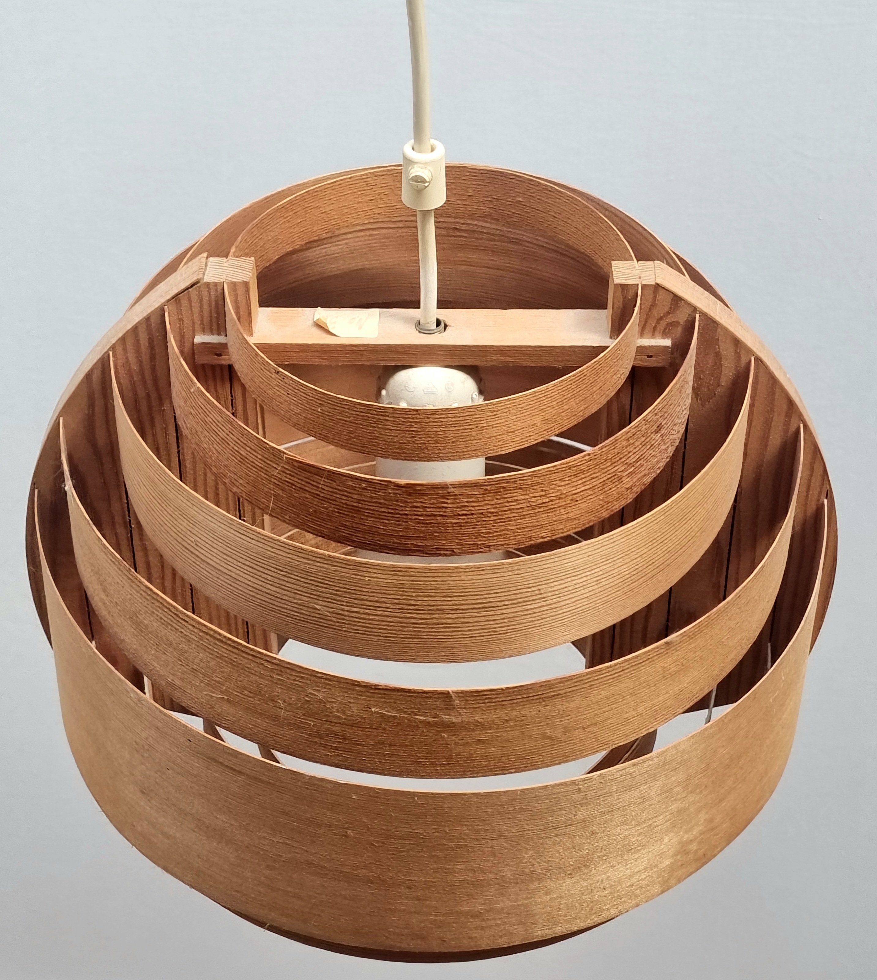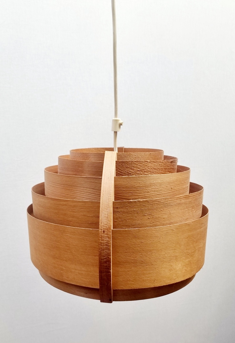 Vintage grenenhouten hanglamp, ontwerp Hans-Agne Jakobsson. Zweden, jaren 60. |