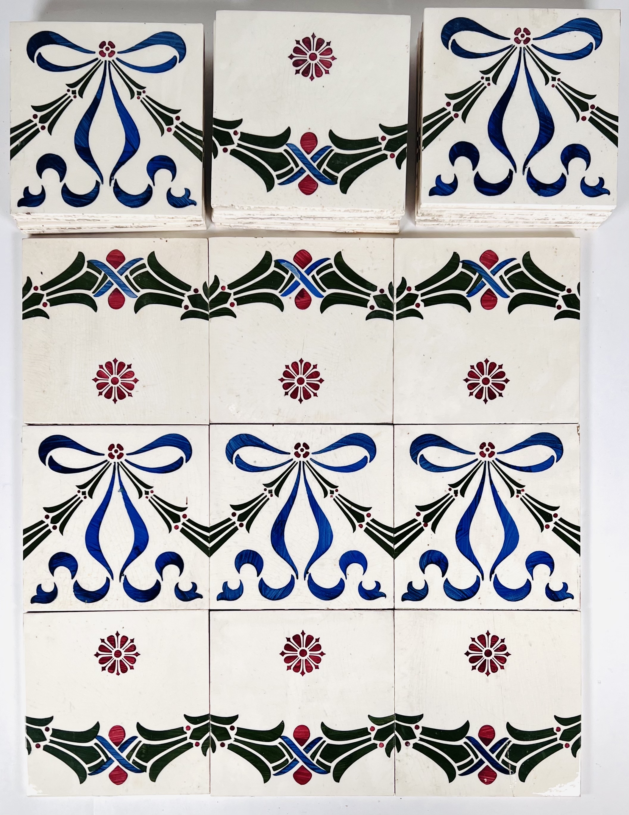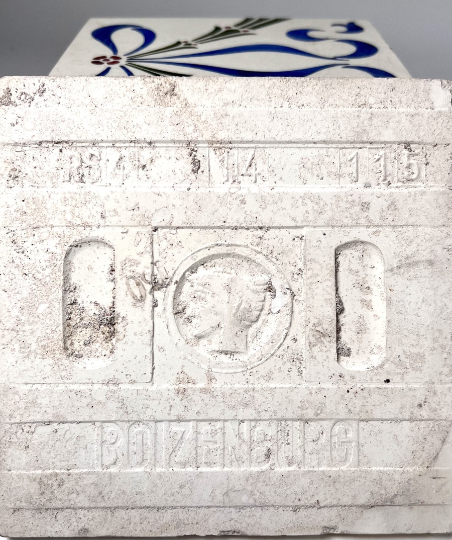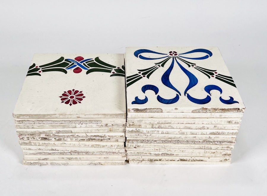 Lot met drieëntwintig Boizenburg Jugendstil gedecoreerde tegels. Aan de achterzijde gemerkt en genummerd. Duitsland, jaren 10/20 vorige eeuw. |