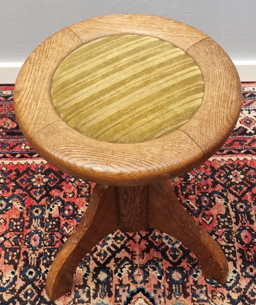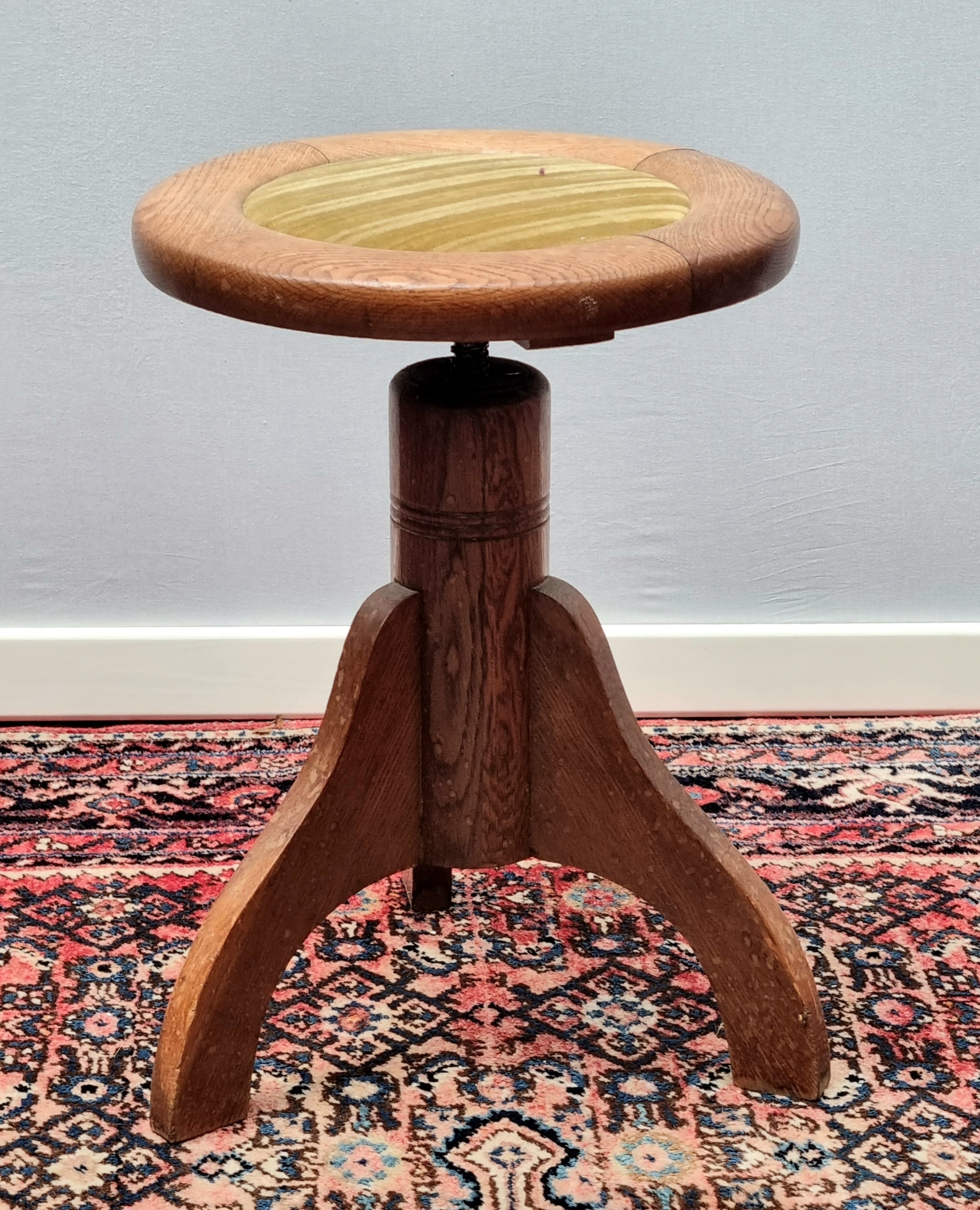 Eikenhouten Art Deco verstelbare pianokruk met velours bekleding. Jaren 30. |