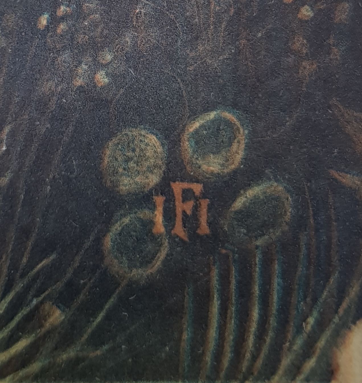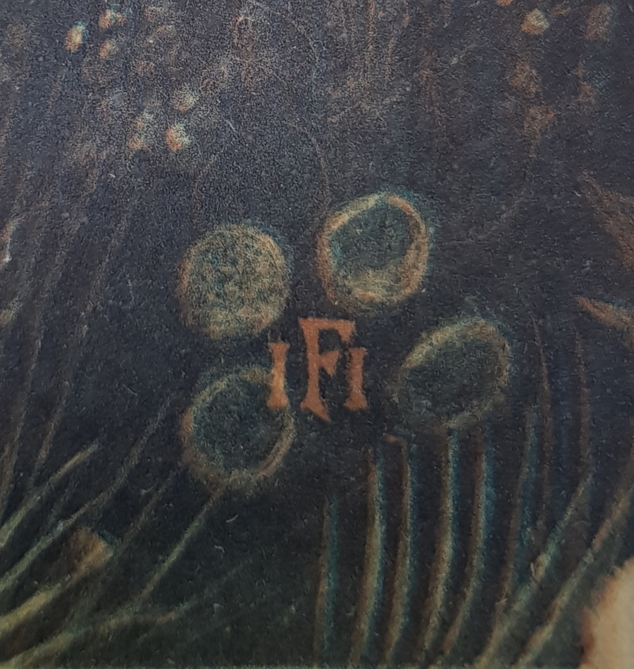 Prent van Jozef, Maria en het kindeke Jezus met tekst in het Latijn. Tweede helft 20e eeuw. |