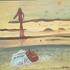 Schilderij van een strandgezicht met lopende vrouw en liggend op het strand het Nieuwsblad van het Noorden. Olieverfschilderij op linnen, rechtsonder gesigneerd A. Loos. Vierde kwart 20e eeuw. |