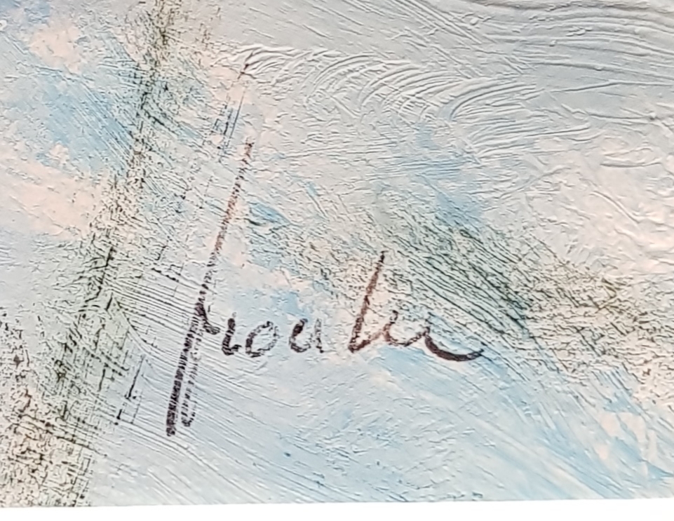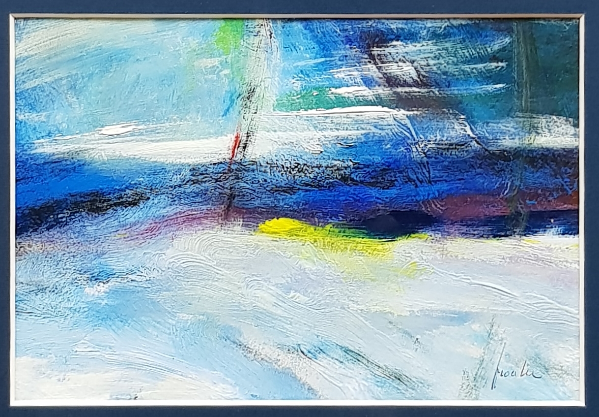 Modernistisch abstract schilderij, acrylverf op papier. Rechtsonder gesigneerd, jaren 90. |
