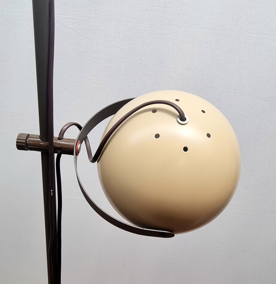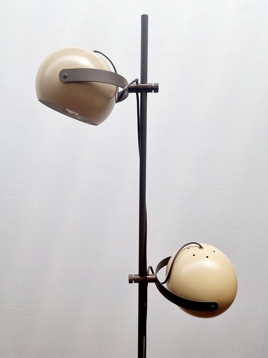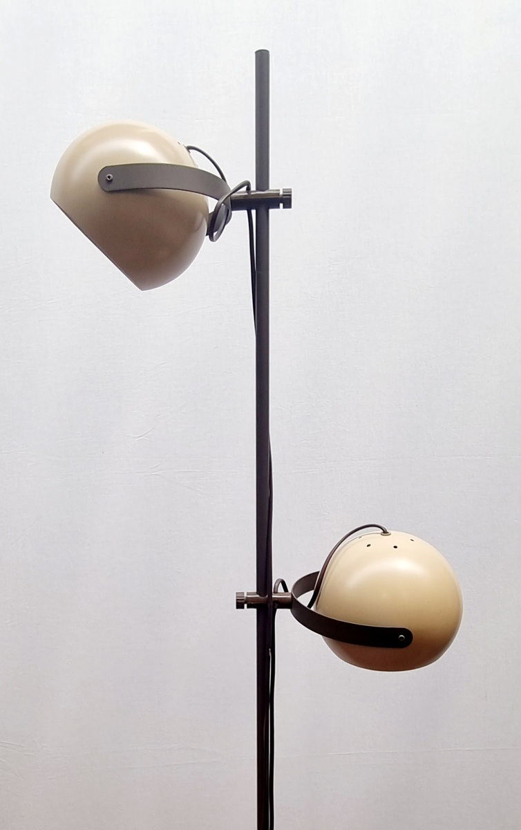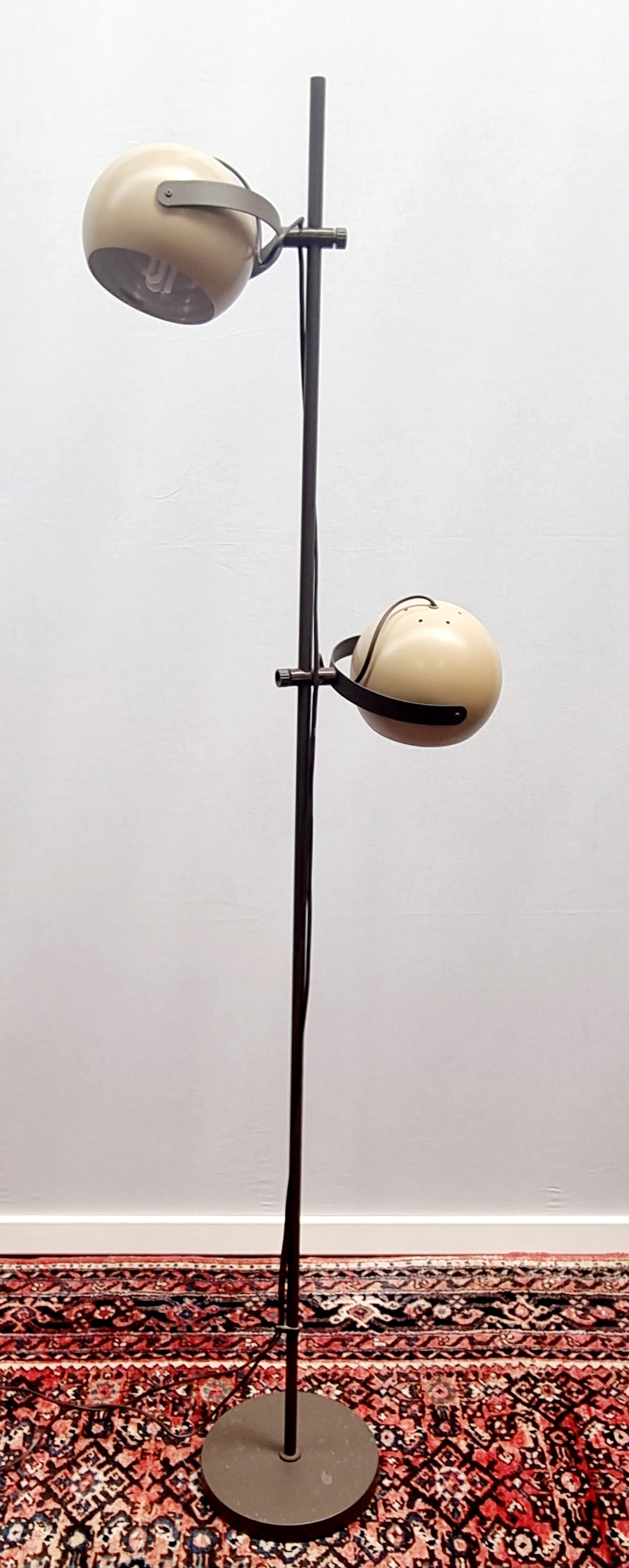 Vintage vloerlamp van de Amsterdamse lampenfabrikant Dijkstra met twee verstelbare metalen bollen. Nederland, jaren 70. |