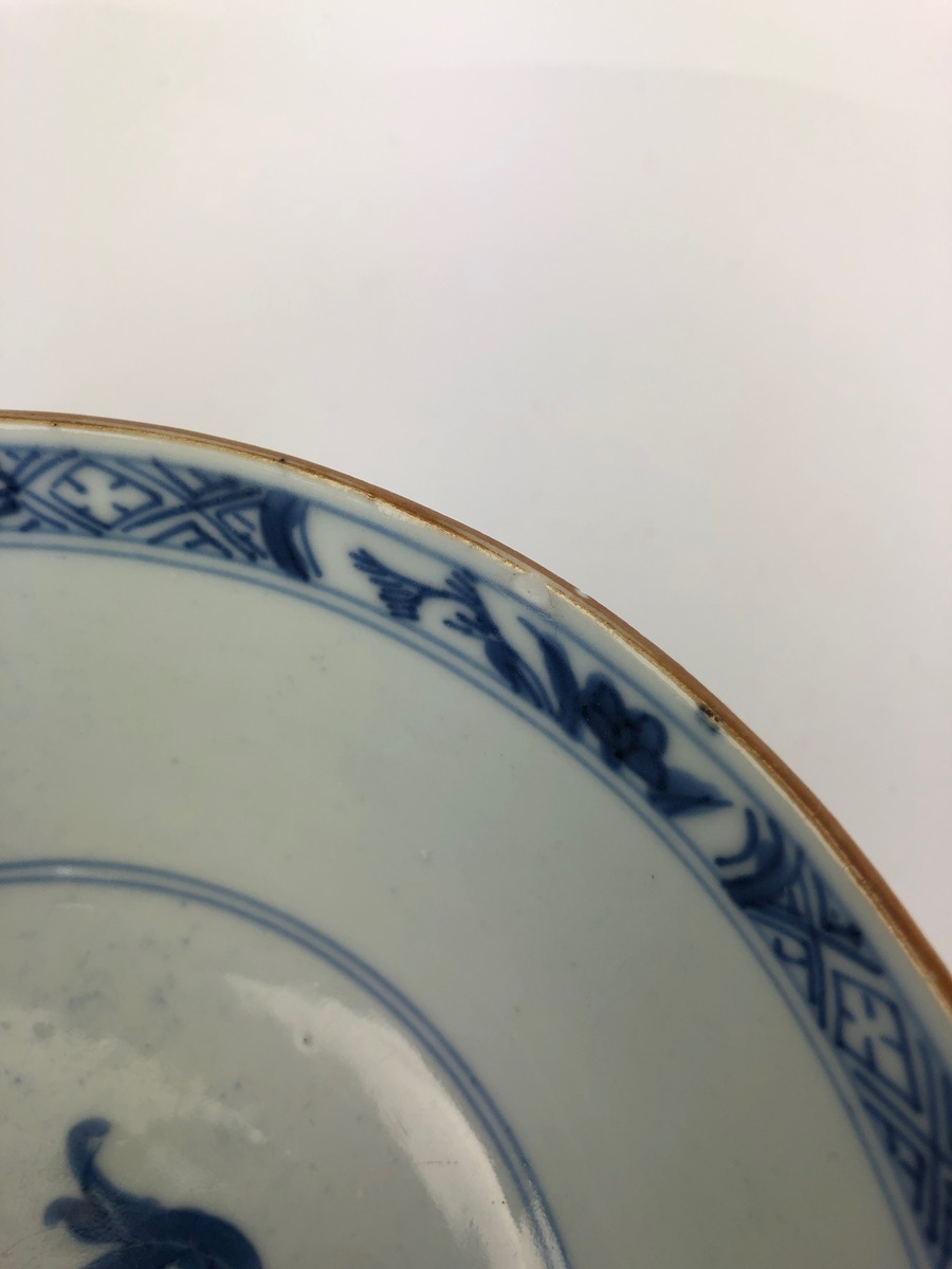 | Conditie | Een kom twee chips en een kom met twee haarlijnen, een bakfout en haarlijn aan de onderzijde. | |
