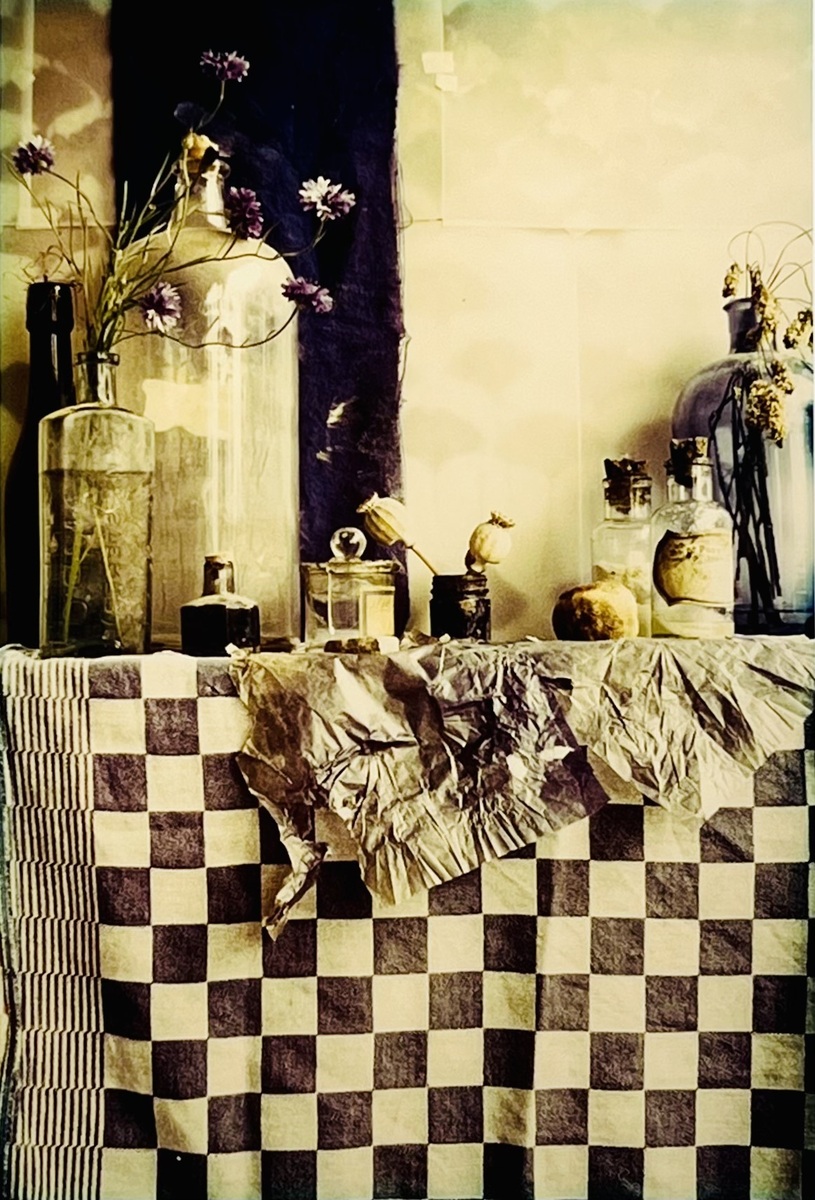 Grafische druk van een stilleven met flessen, papaver en bloemen. Einde 20e eeuw. |