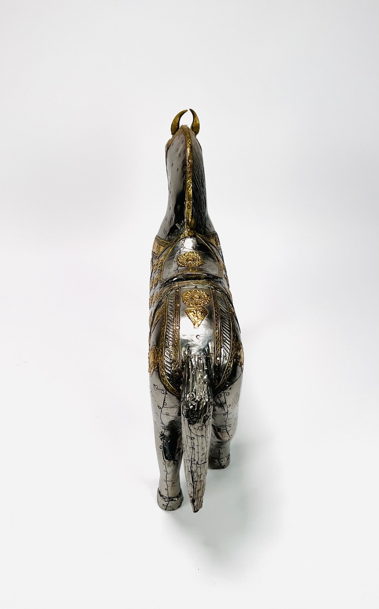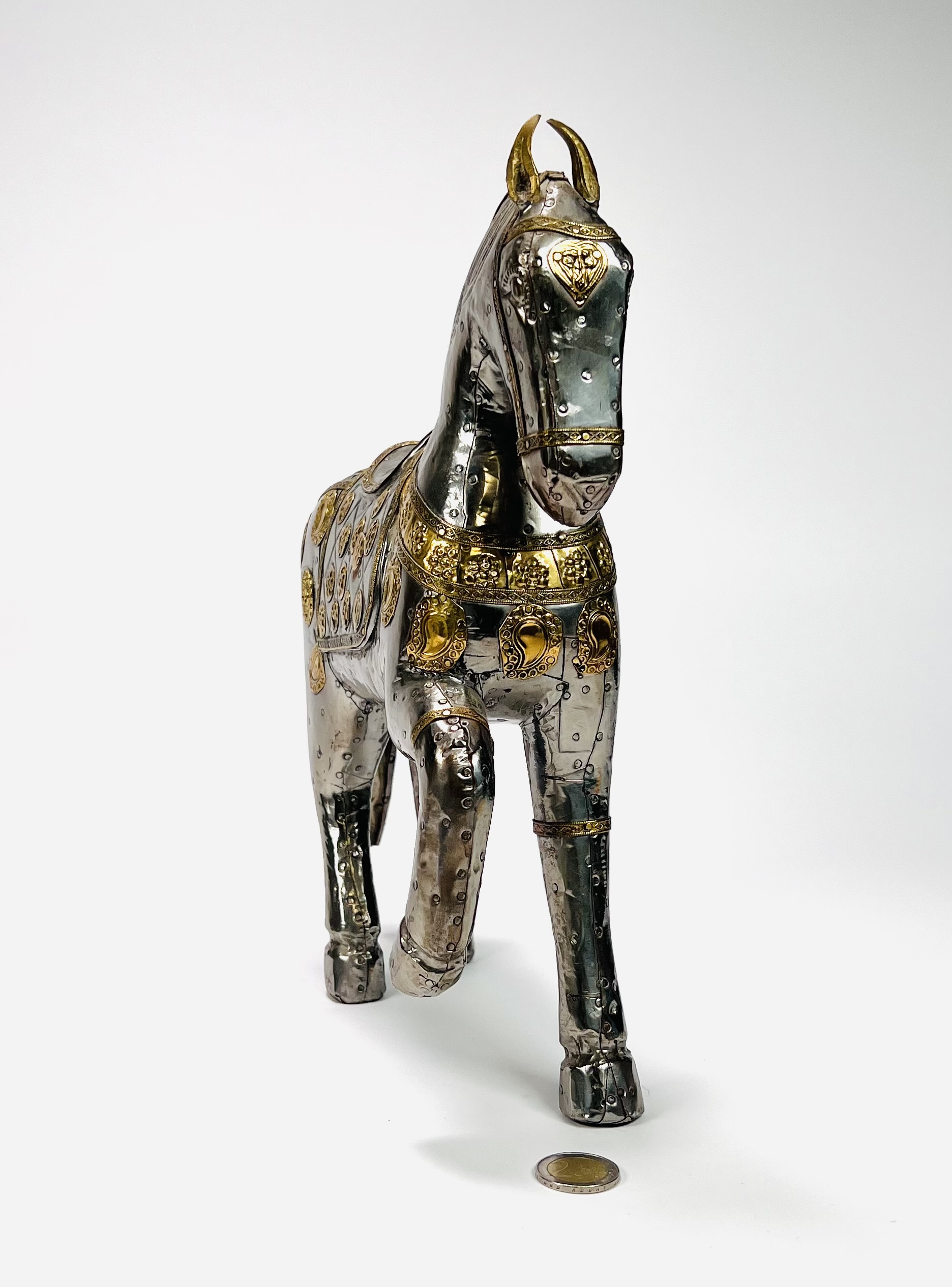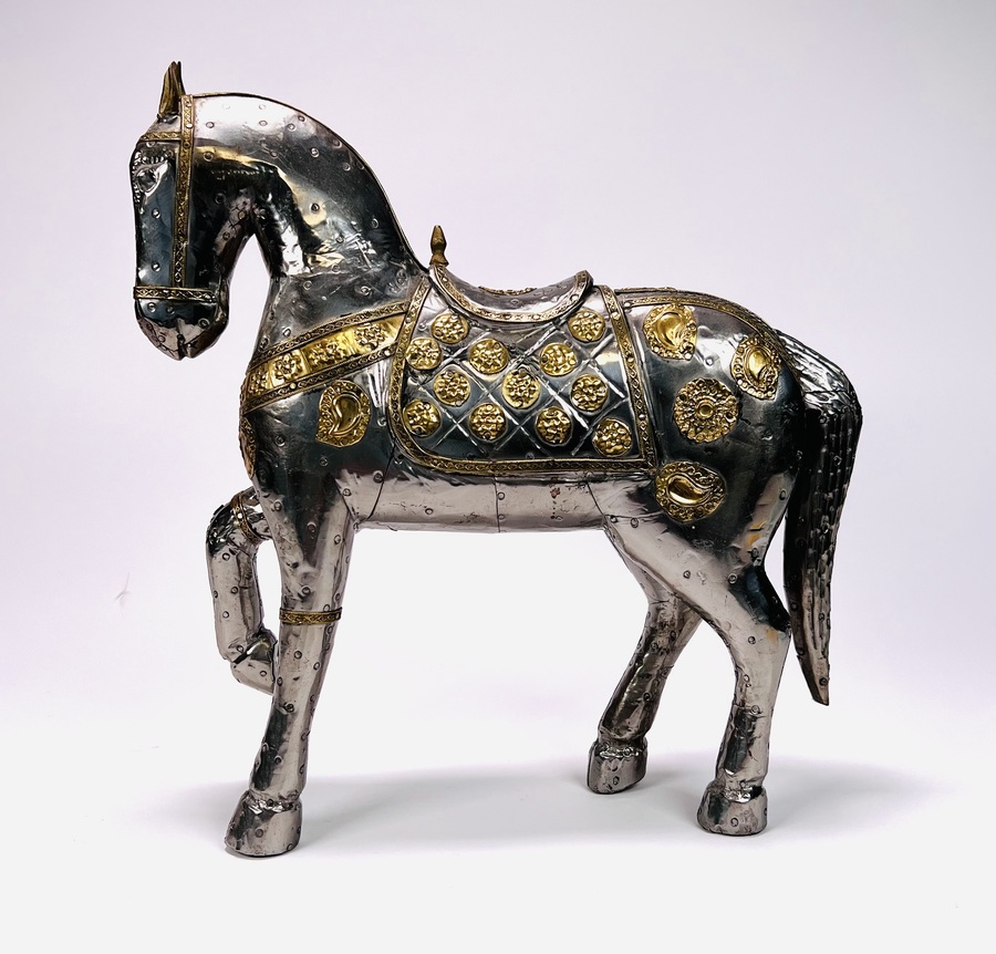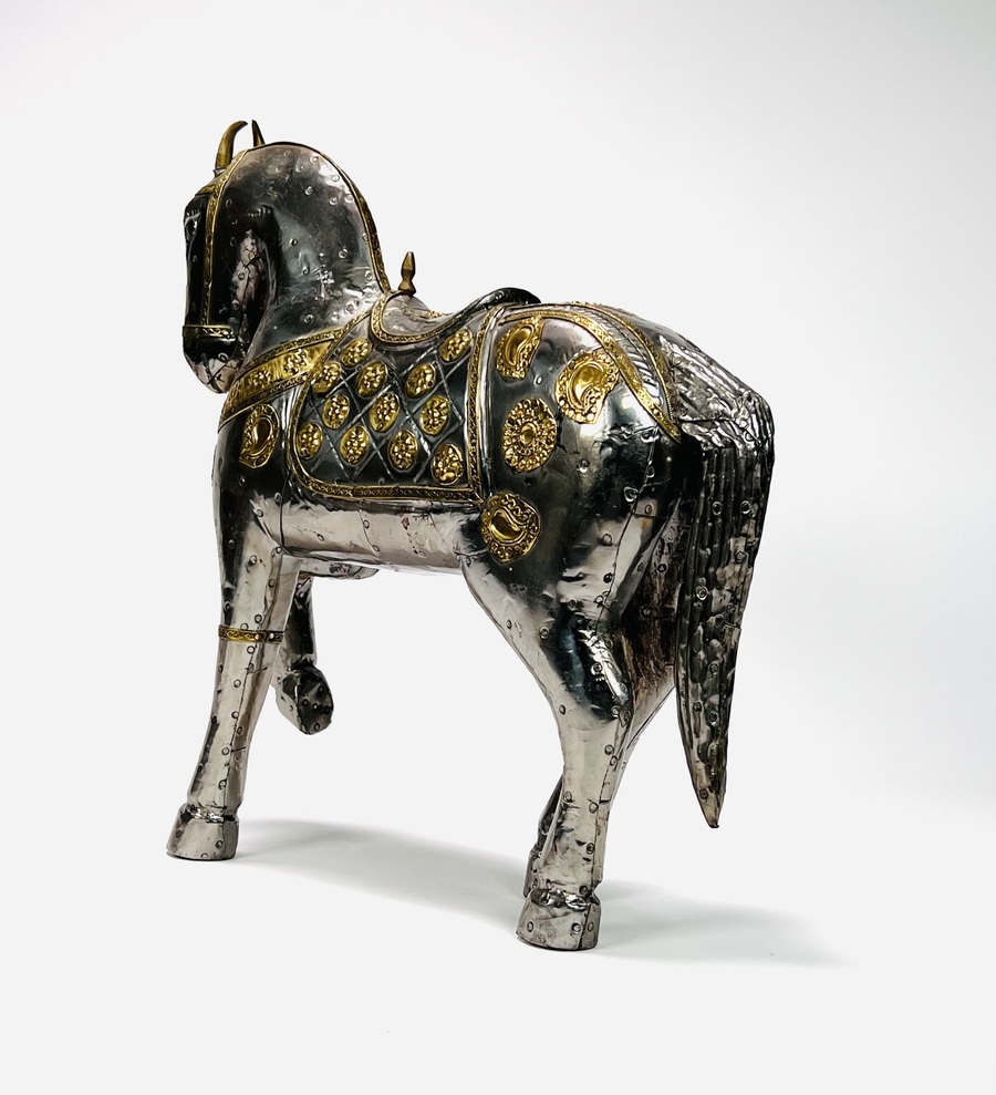 Houten paard beslagen met blik- en messing ornamenten. India, eind 20e eeuw. |