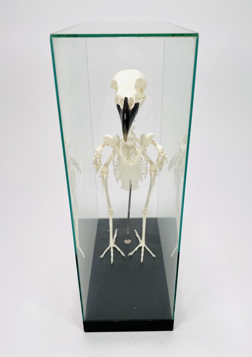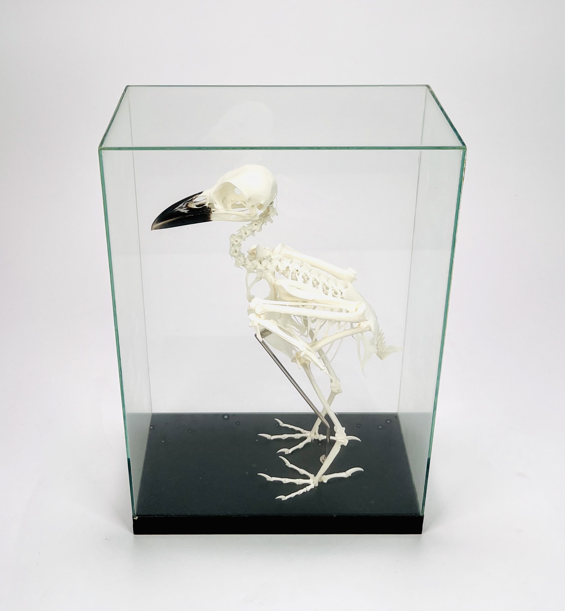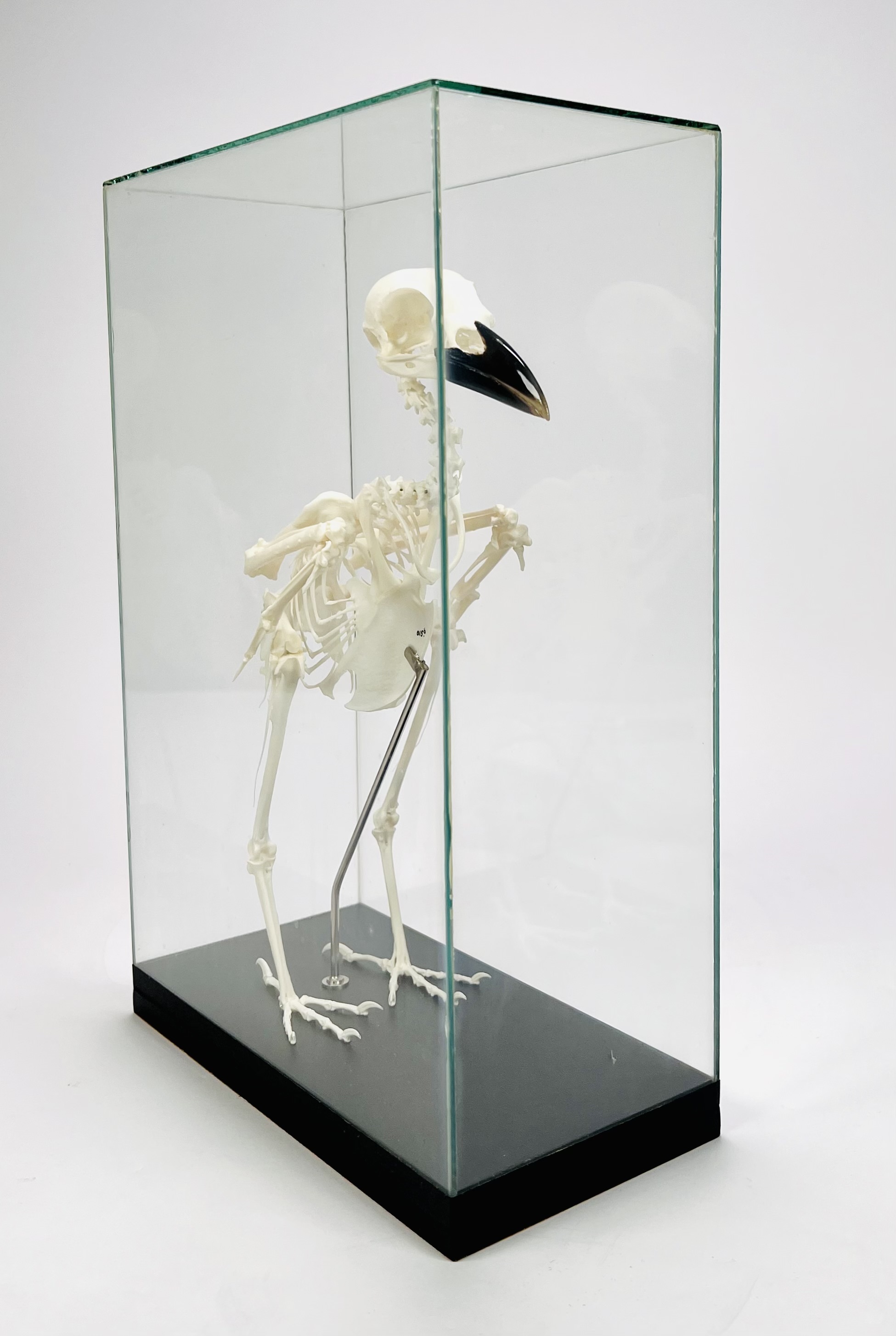 Skelet van een kraai (Corvus corone) in glazen behuizing, eind 20e eeuw. |
