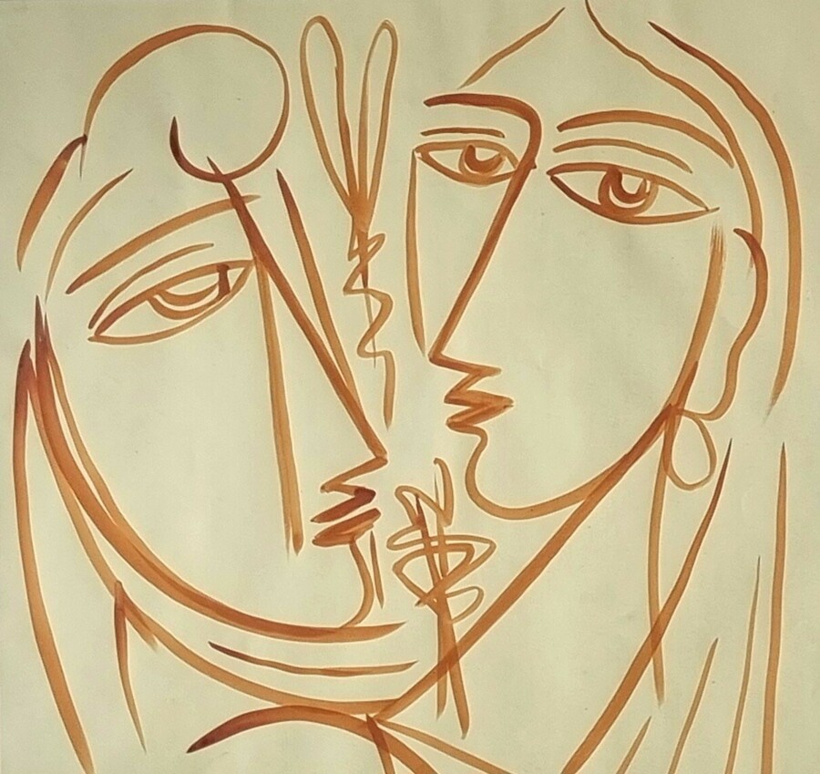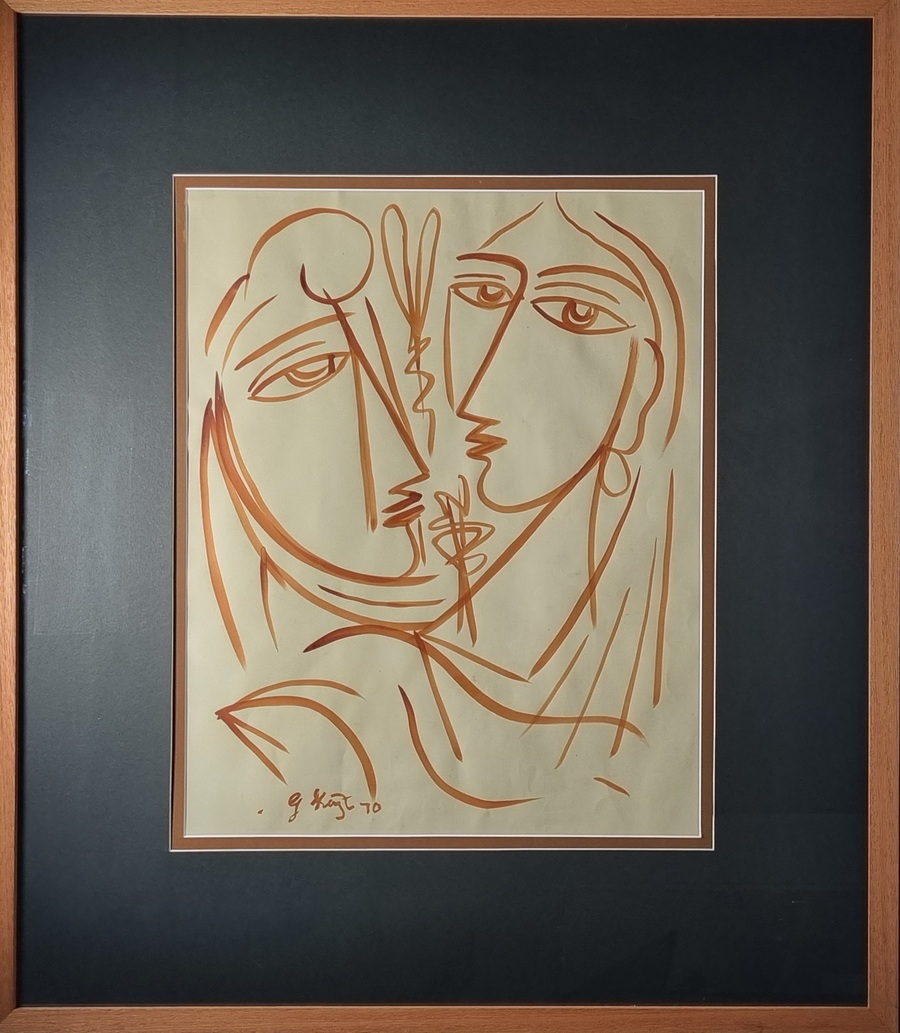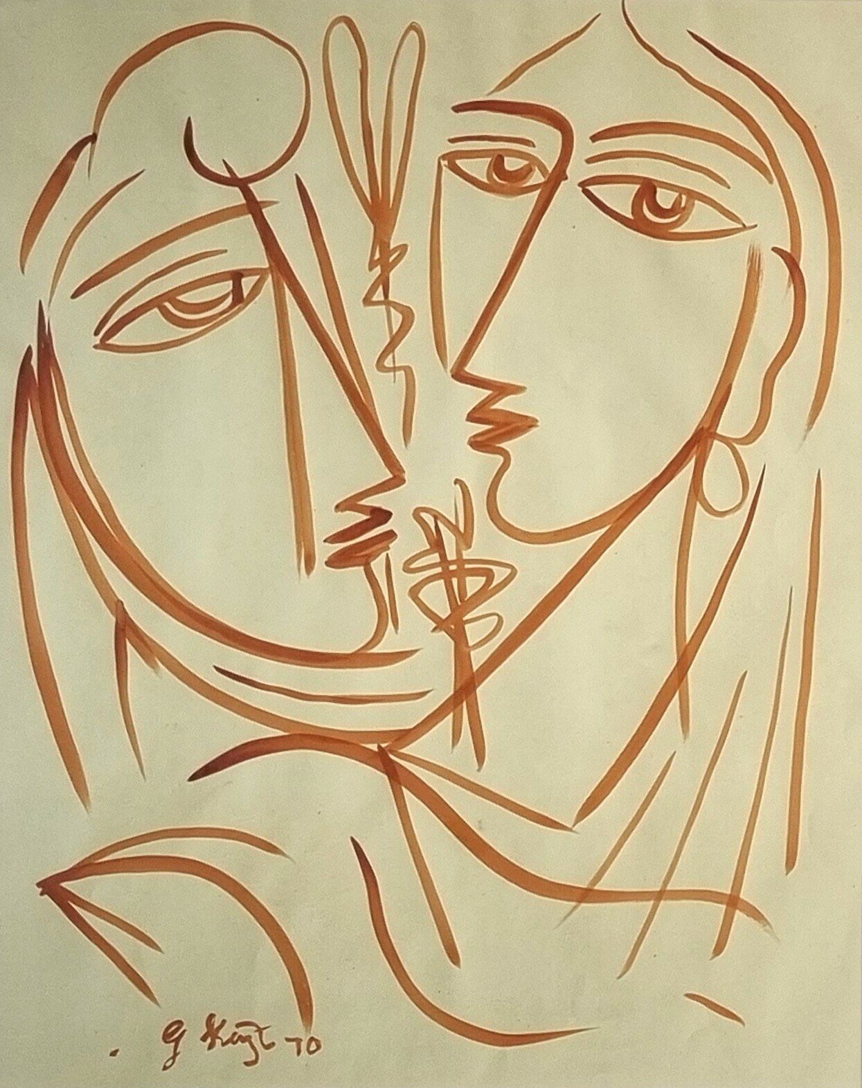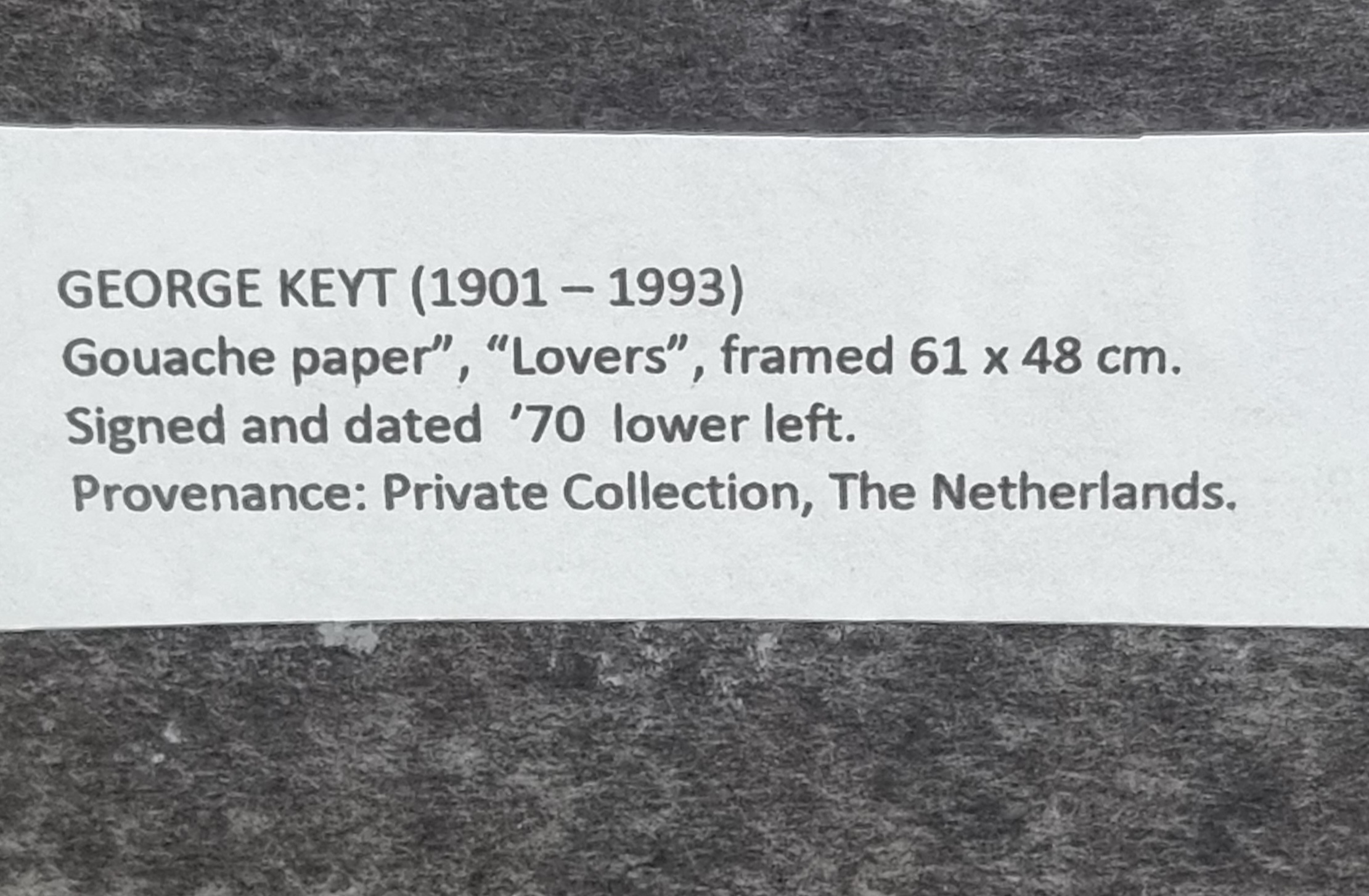 Gouache "Lovers", door George Keyt (Ceylon 1901 – Colombo 1993). Waterverf op papier, linksonder gesigneerd en gedateerd G Keyt '70.