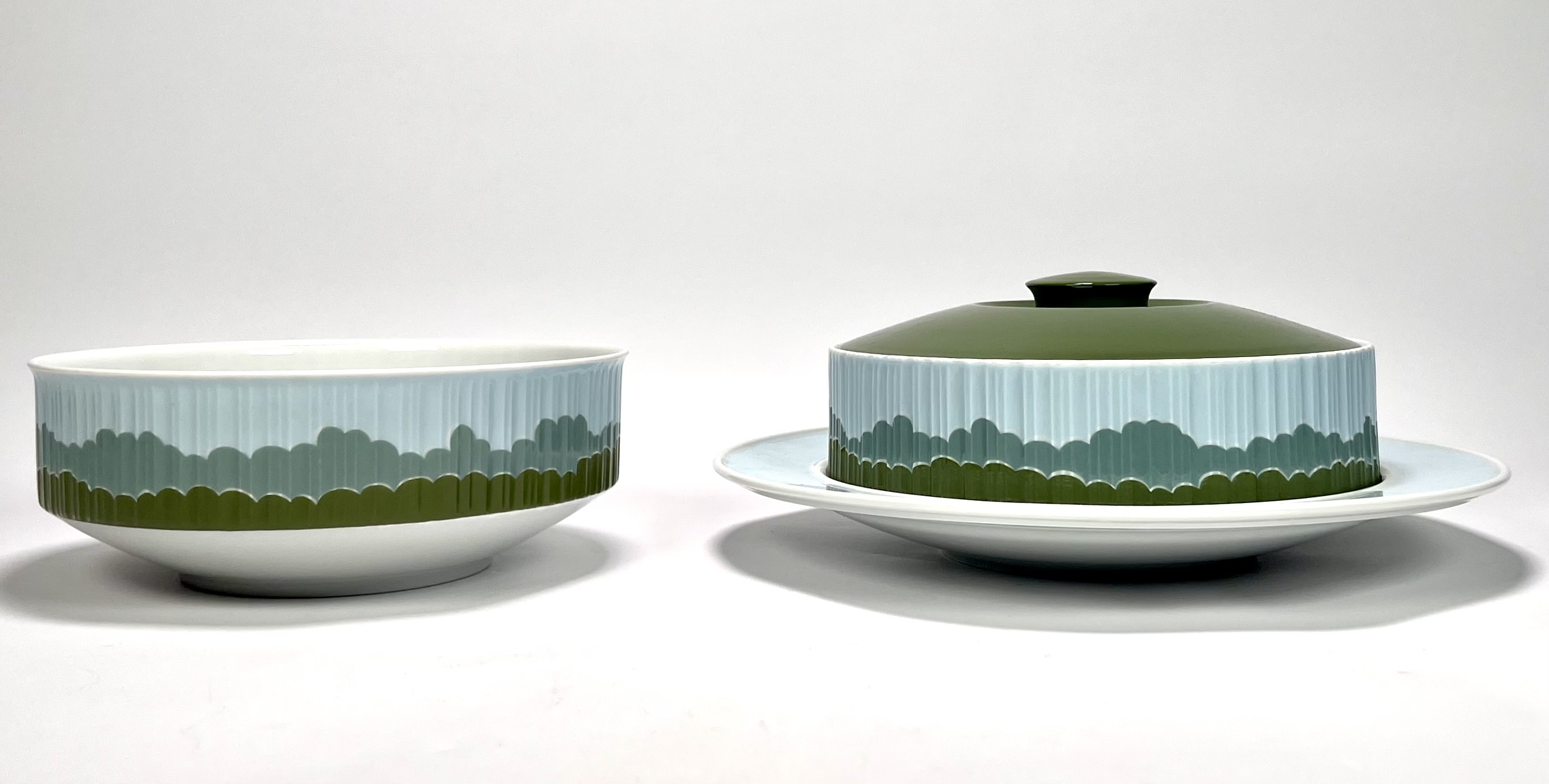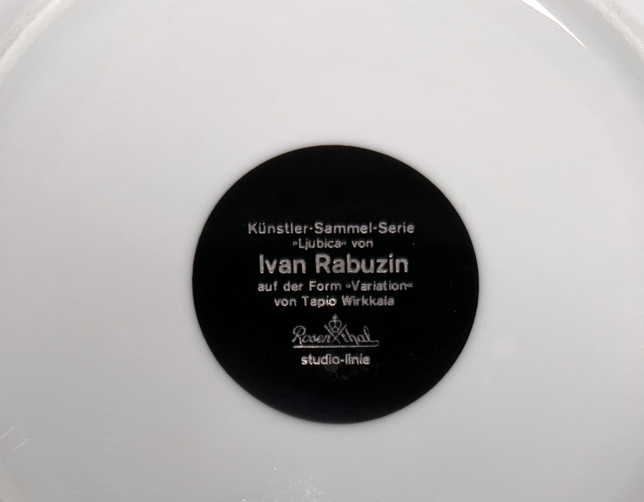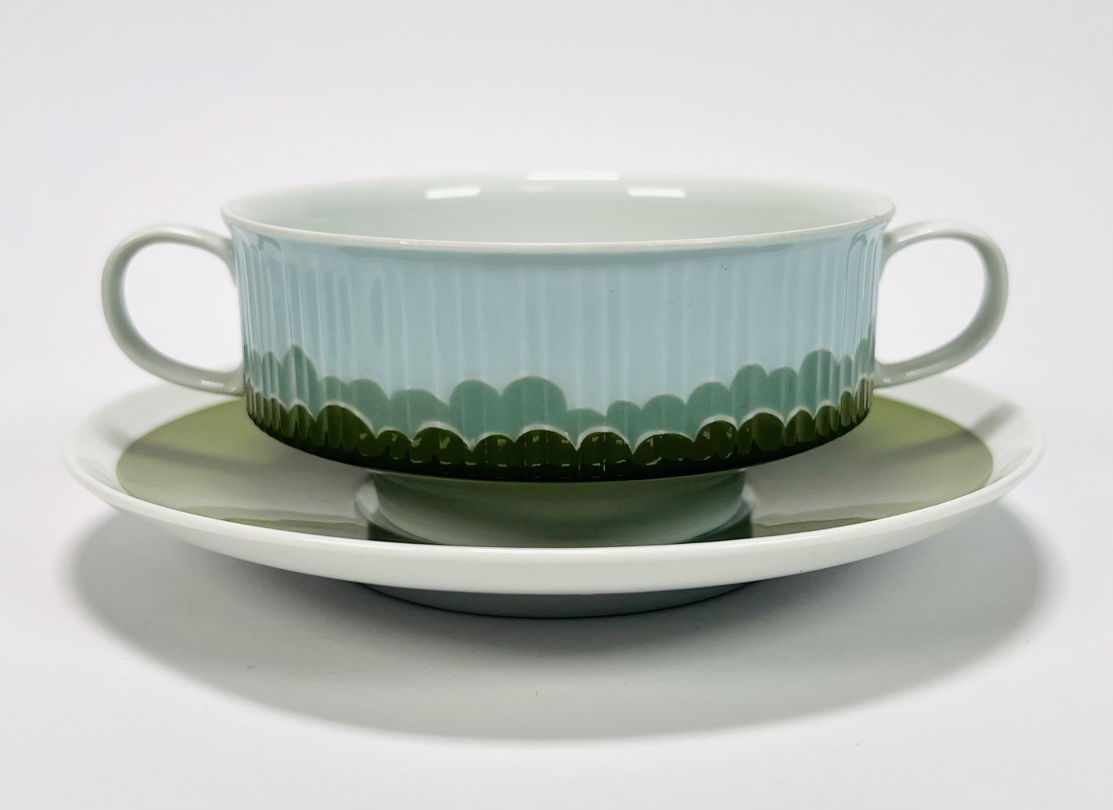 Porseleinen Rosenthal servies met gewolkt patroon uit de Kunstler Sammlung Serie, modelnaam Ljubica en ontworpen door Ivan Rabuzin. Uitgevoerd in de servies vorm Variation, ontworpen door Tapio Wirkkala. Duitsland, eind jaren 70. |