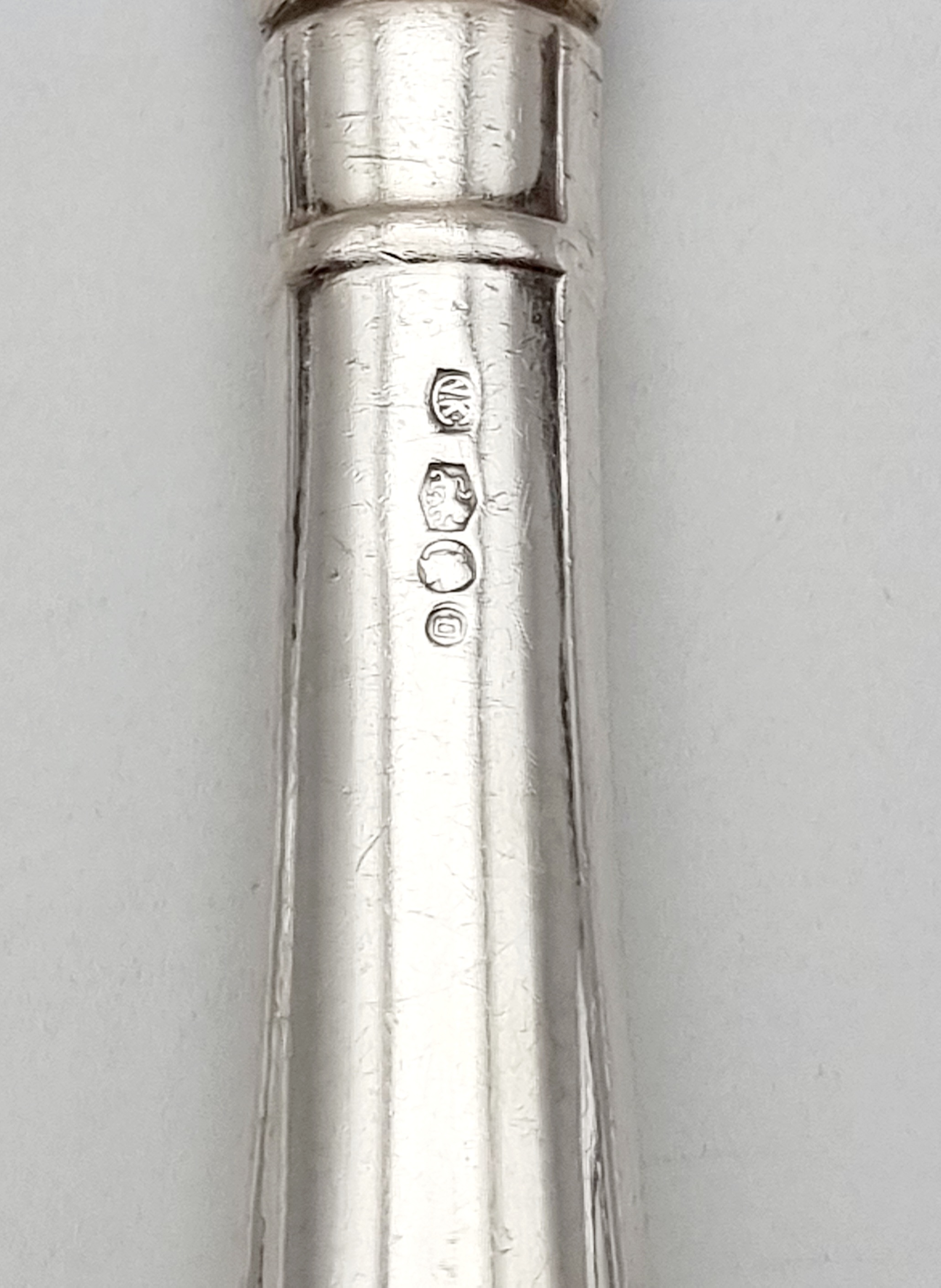 | Afmetingen | Mes lengte 24,5 cm en zilver gewicht (minus messen) 812 gram. | |